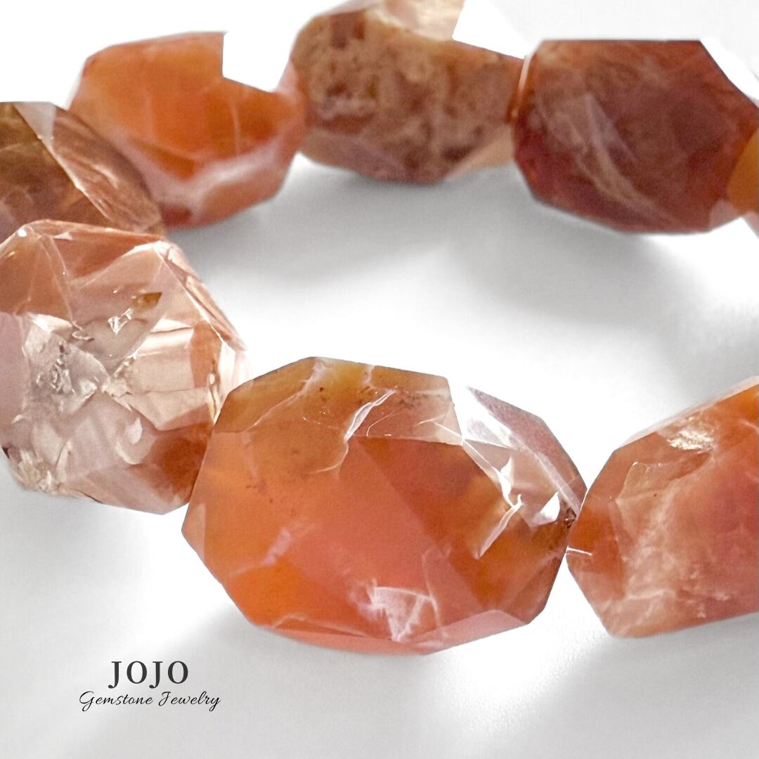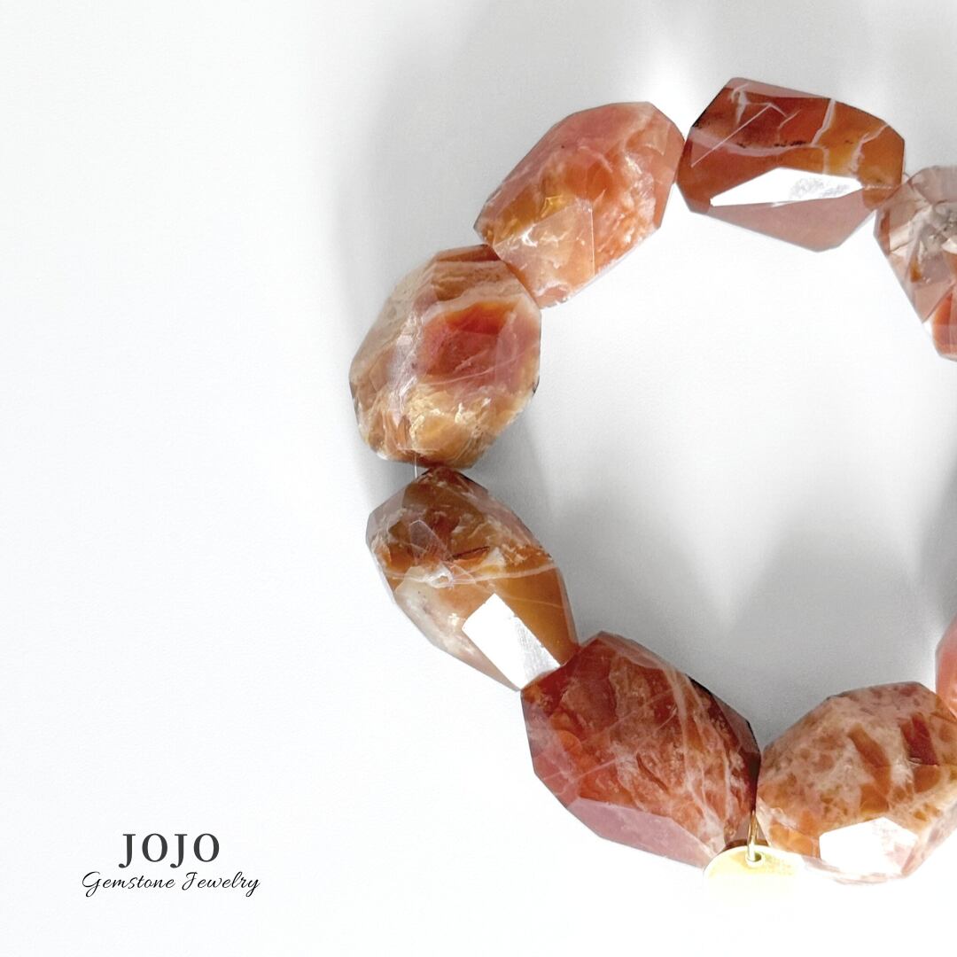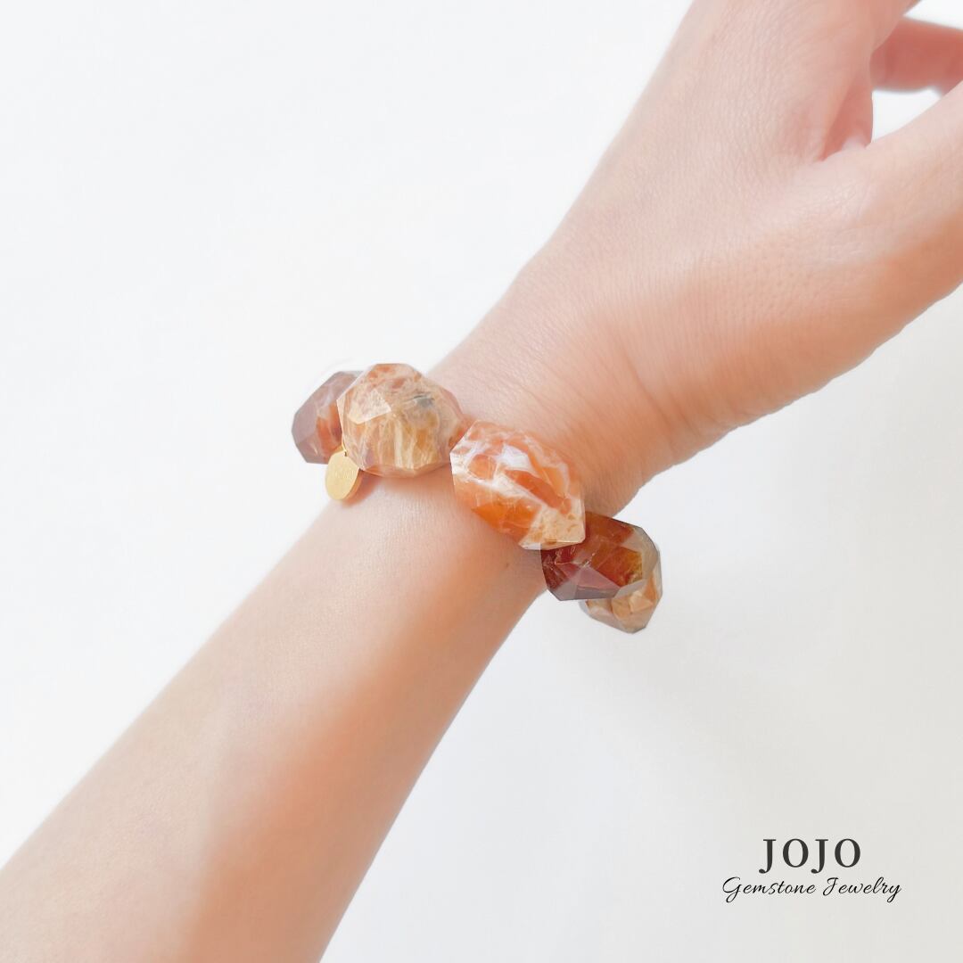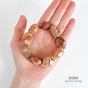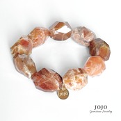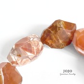 そのブランデーオパールの大粒ラフカットタンブルのみでお仕立てした贅沢なブレスレットは、周囲の視線を集めること間違いなし。