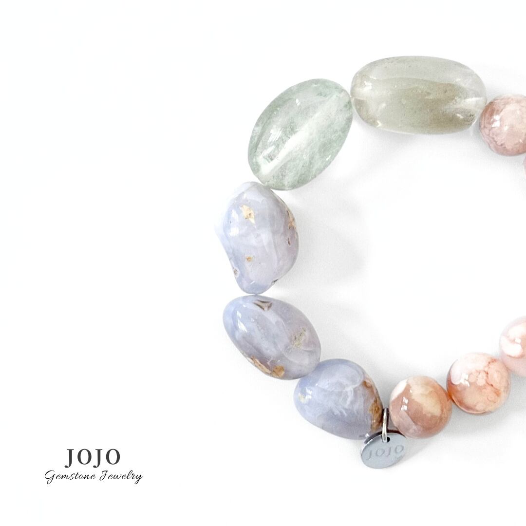 multicolor bracelet «チェリーブロッサムアゲート × ブルーカルセドニー × ガーデンファントムクォーツ»