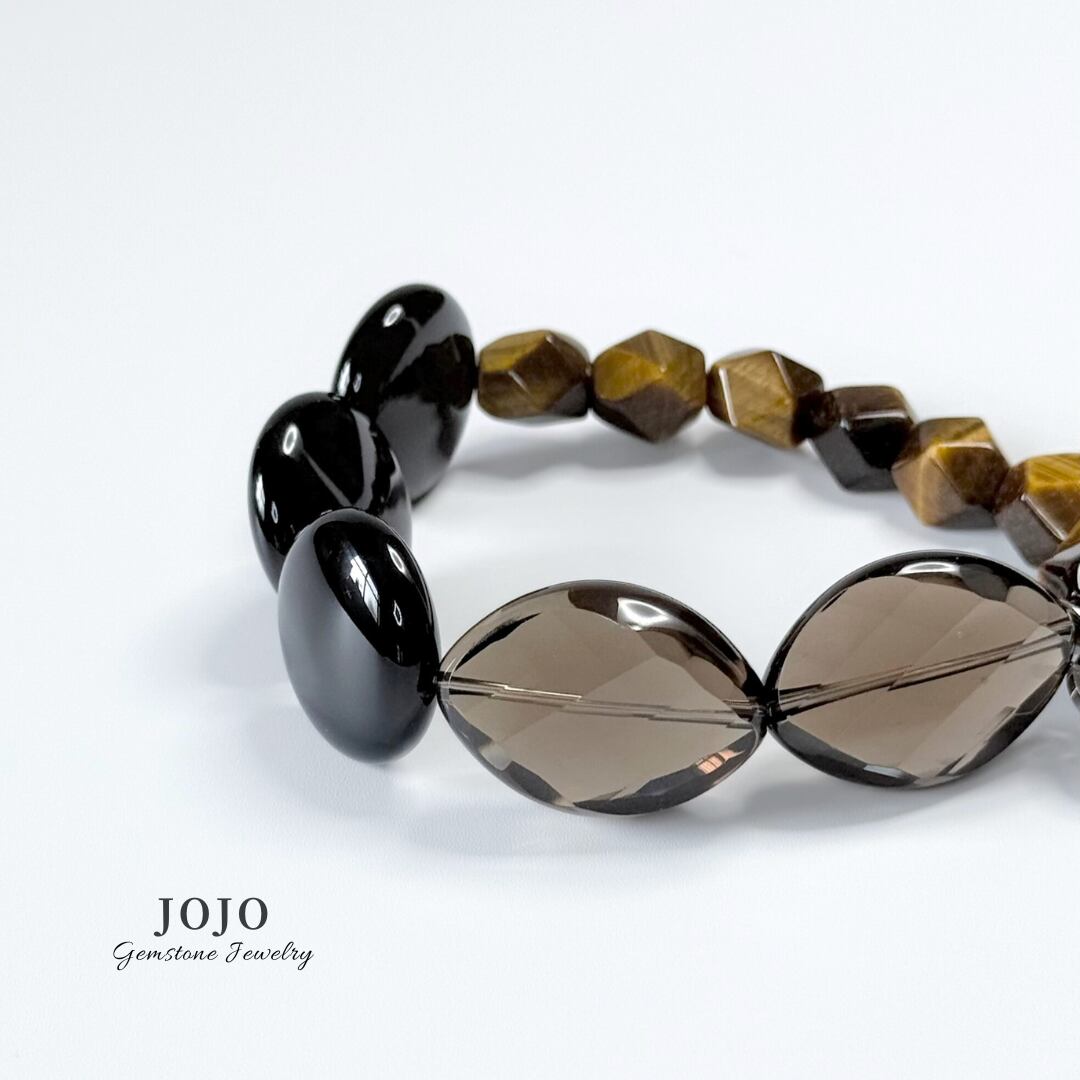multicolor bracelet «タイガーアイ × オニキス × スモーキークォーツ»