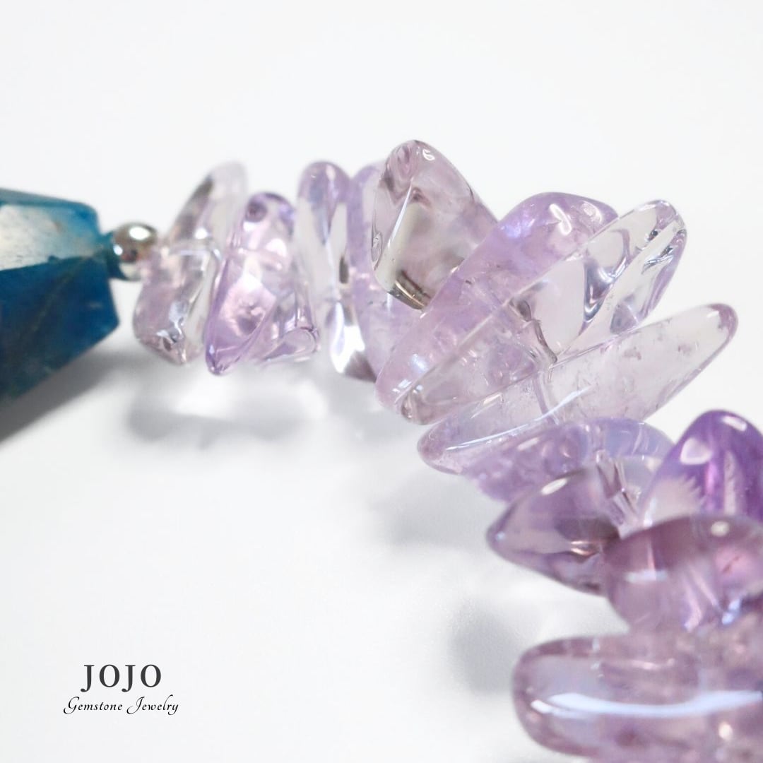 光を受けるたびに柔らかく輝き、アパタイトのクールなブルーに、やさしい甘さを添えます。