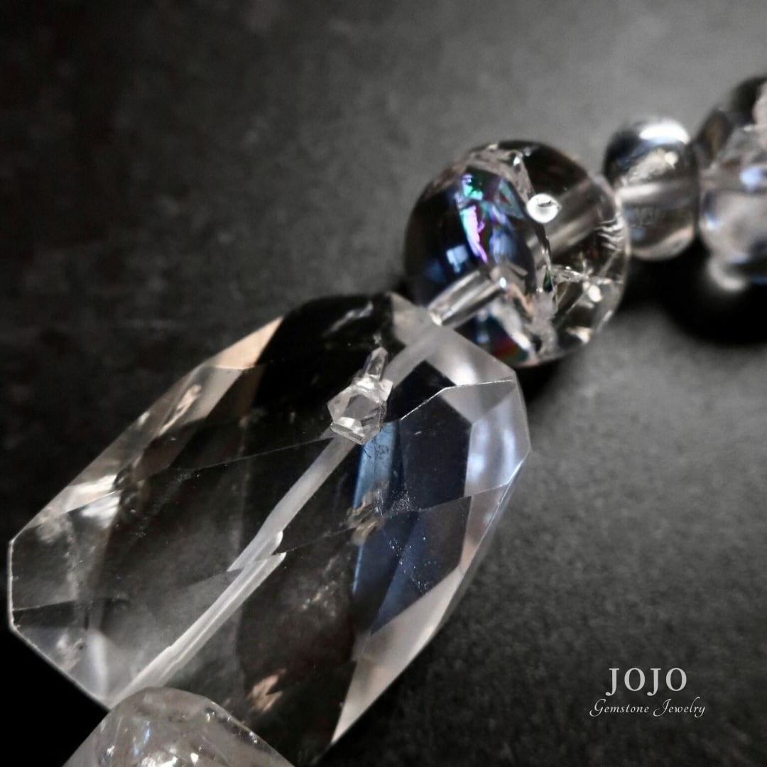 そのうち一粒には、希少なクォーツインクォーツ(貫入水晶)を使用しています。