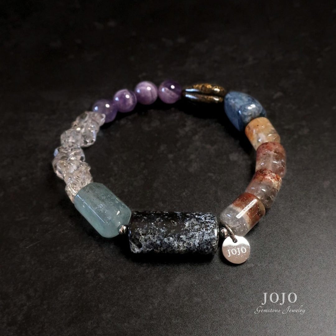 multistone bracelet «マダガスカルアゲート × アクアマリン × ピーターサイト × ブロンザイト × ガーデンクォーツetc.»