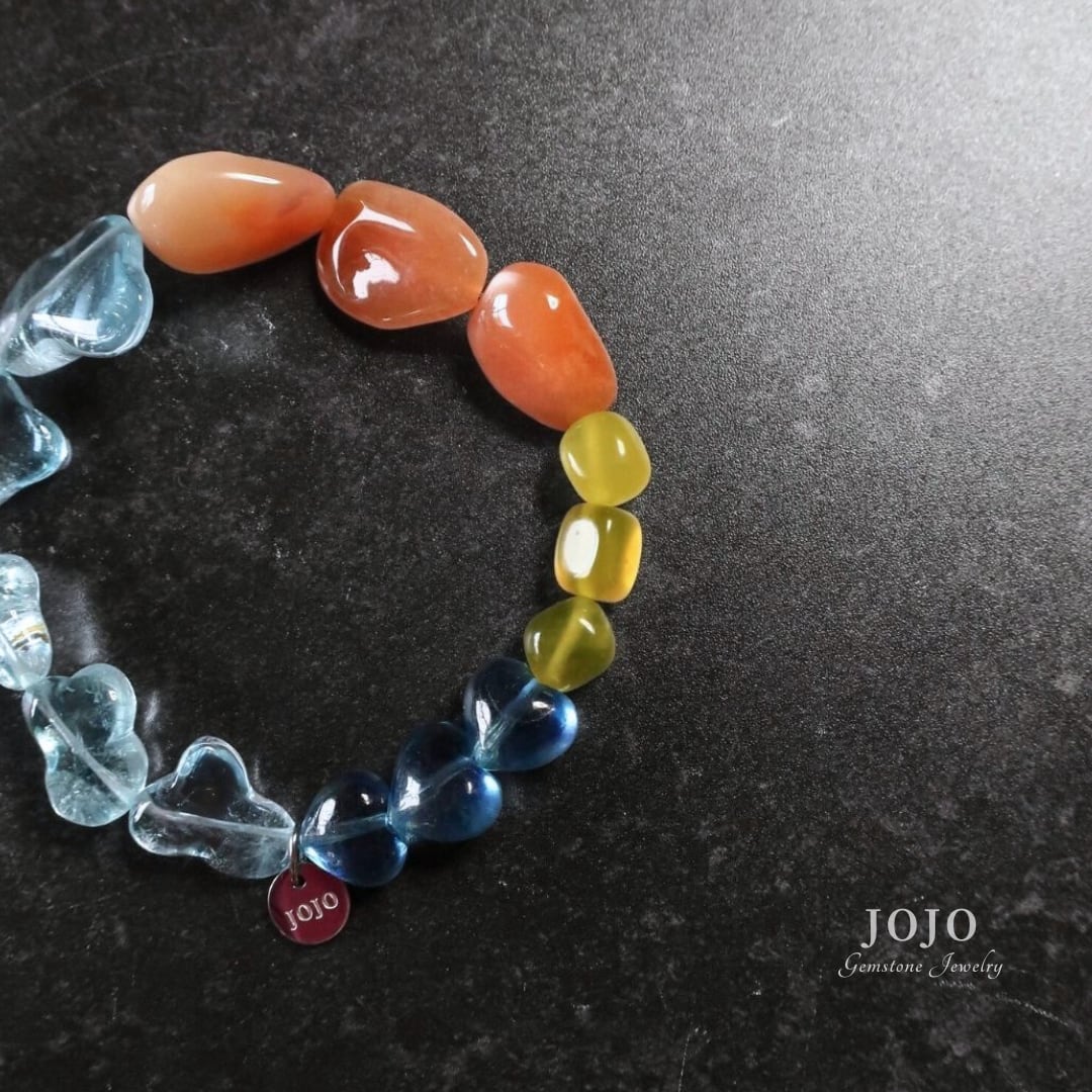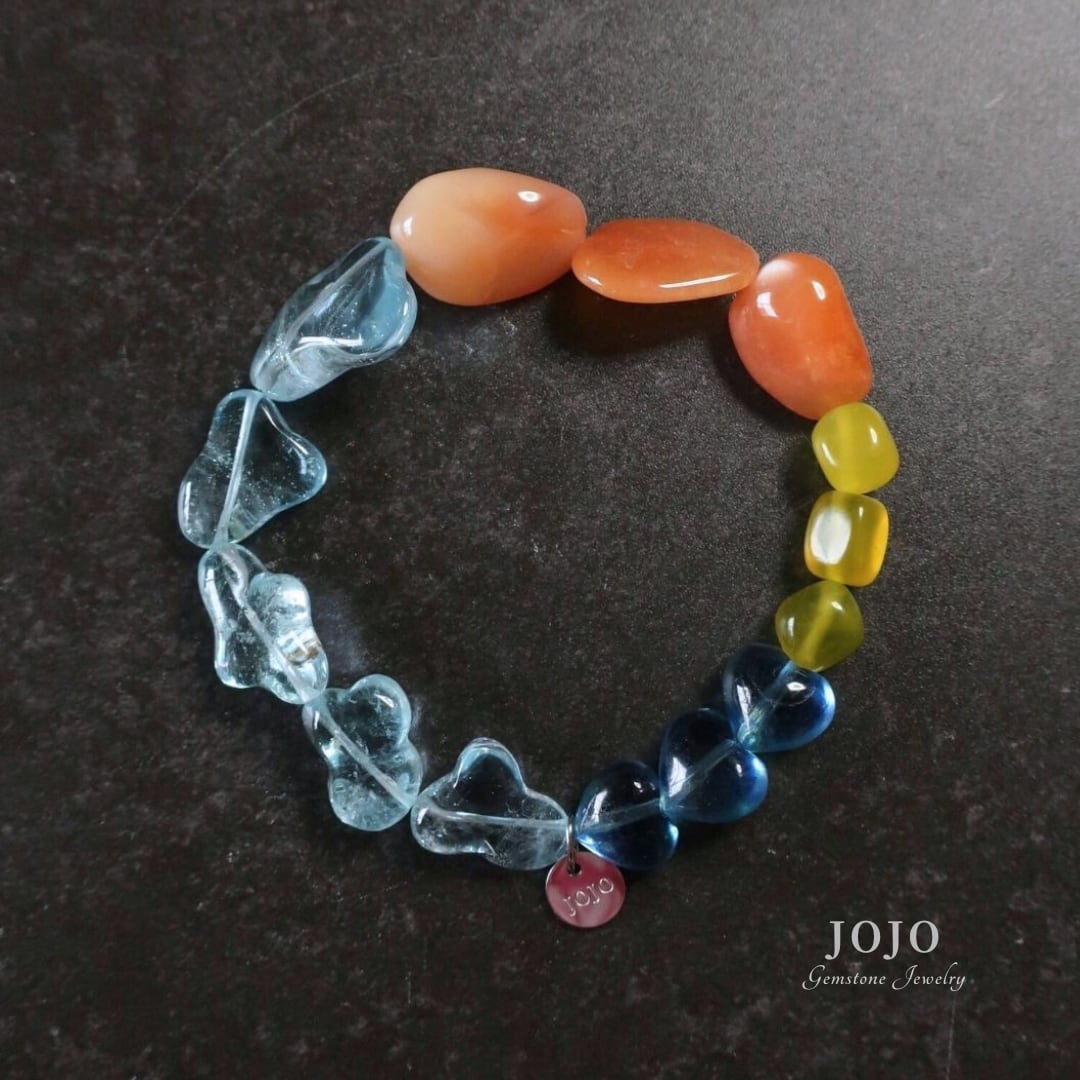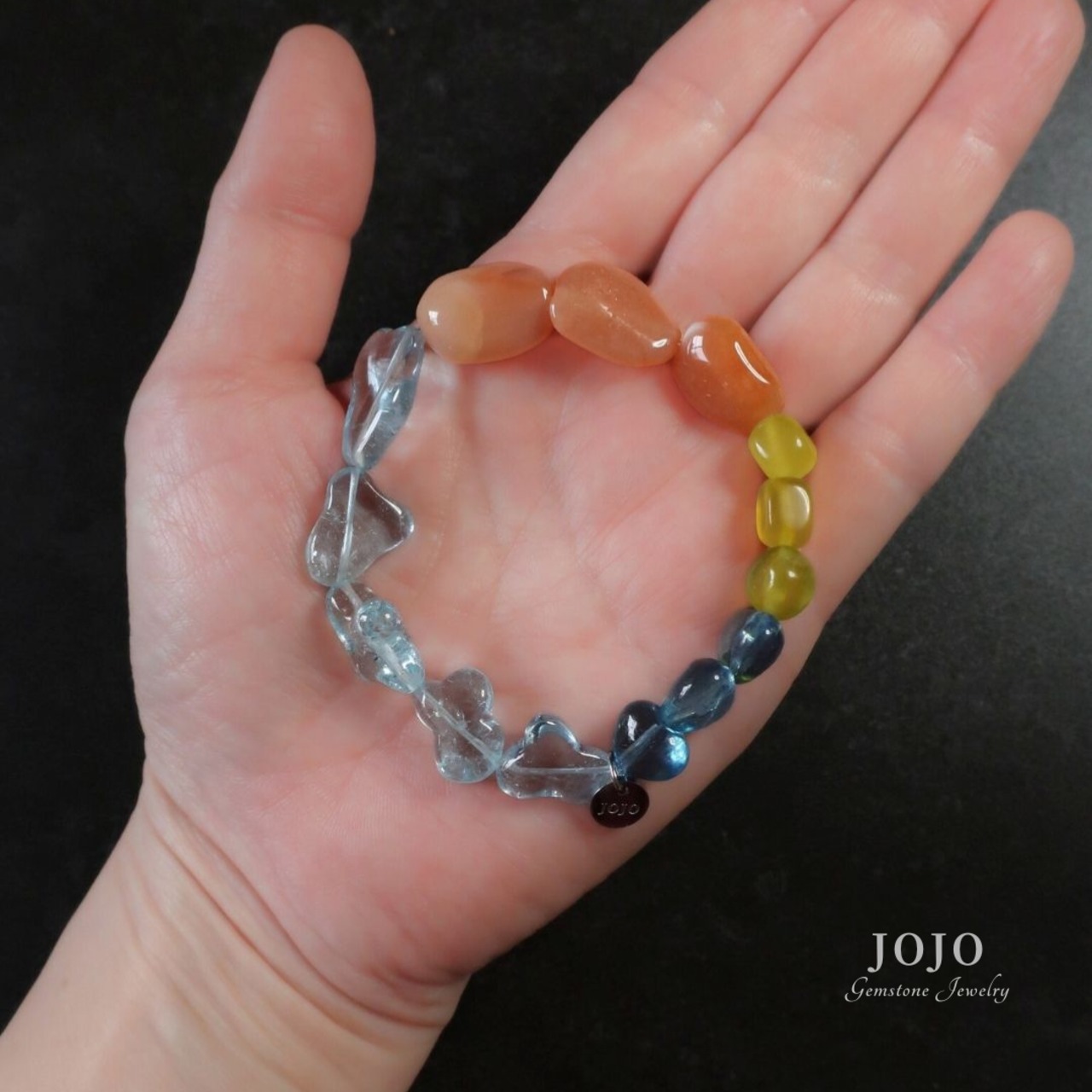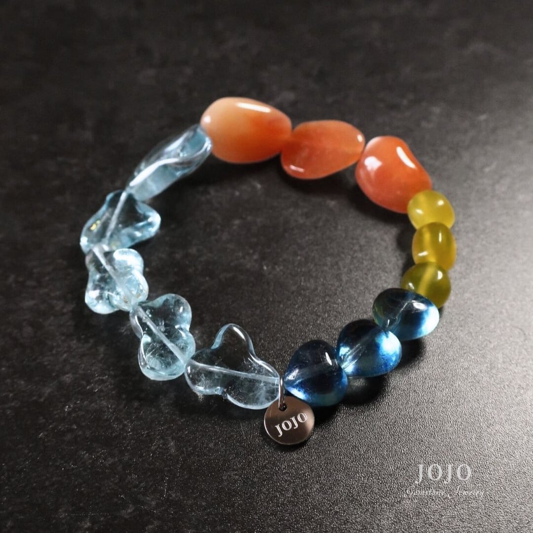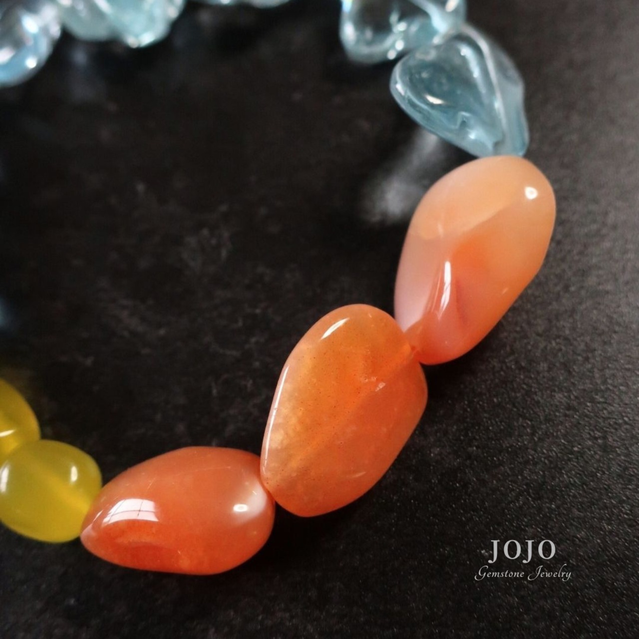 multicolor bracelet «スカイブルートパーズ × アクアマリン × オレンジアゲート × サーペンティン»