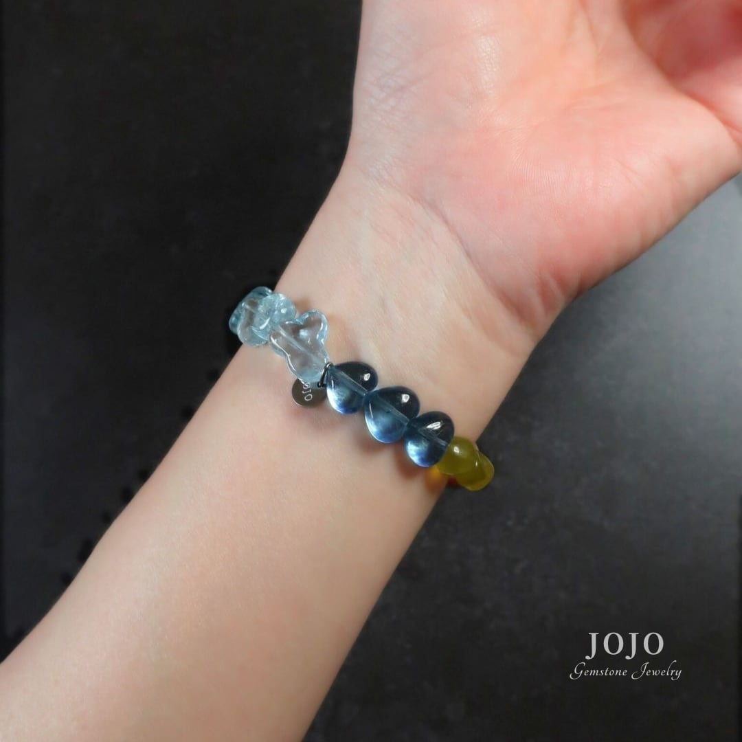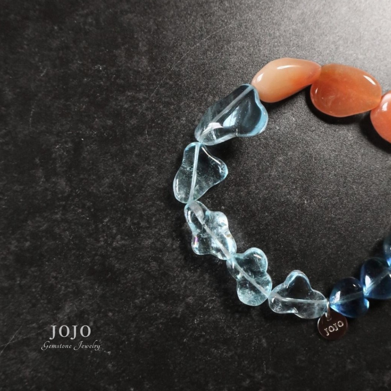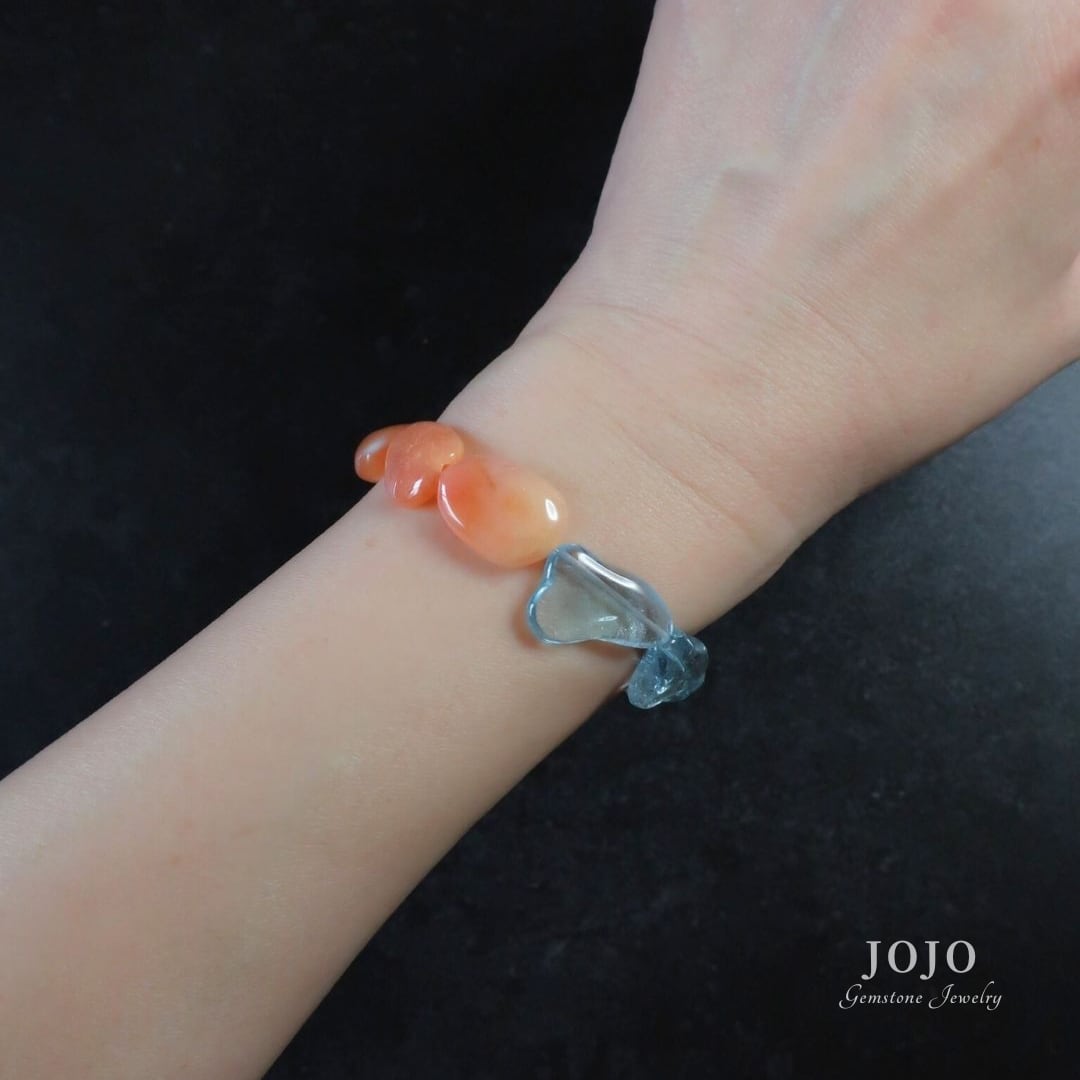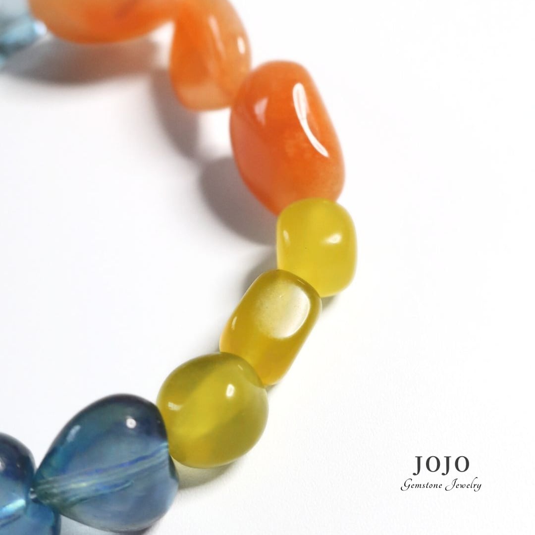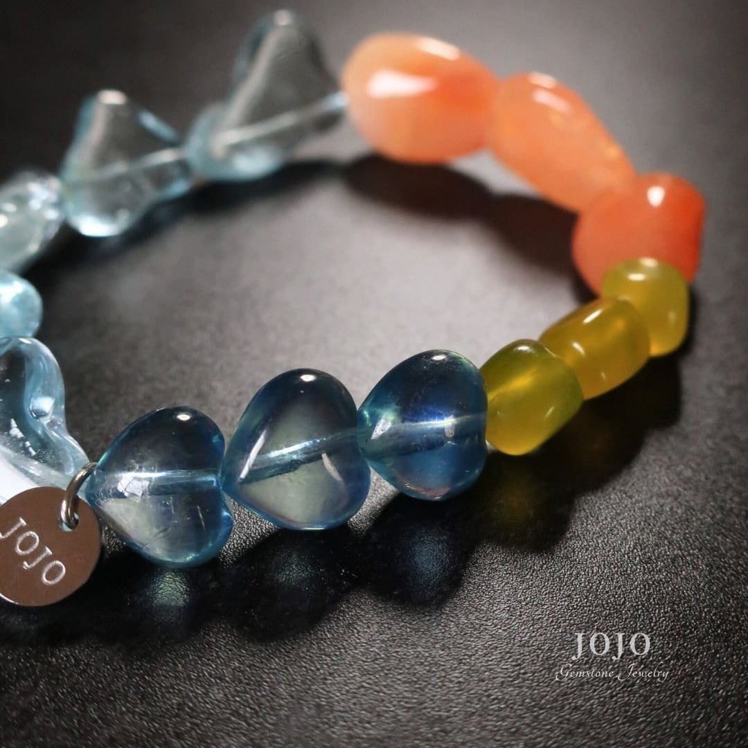 multicolor bracelet «スカイブルートパーズ × アクアマリン × オレンジアゲート × サーペンティン»