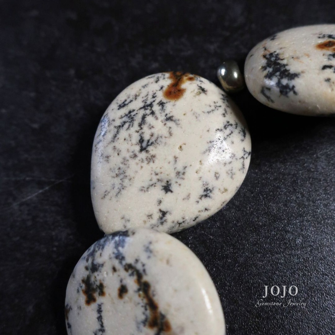 アイボリーの地に広がる黒の樹枝状模様は、まるで水墨画のようで、ひと粒ずつまったく異なる景色を描いています。
