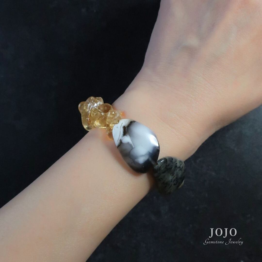 multicolor bracelet «デンドリティックオパール × グリーンクォーツ × シトリン»