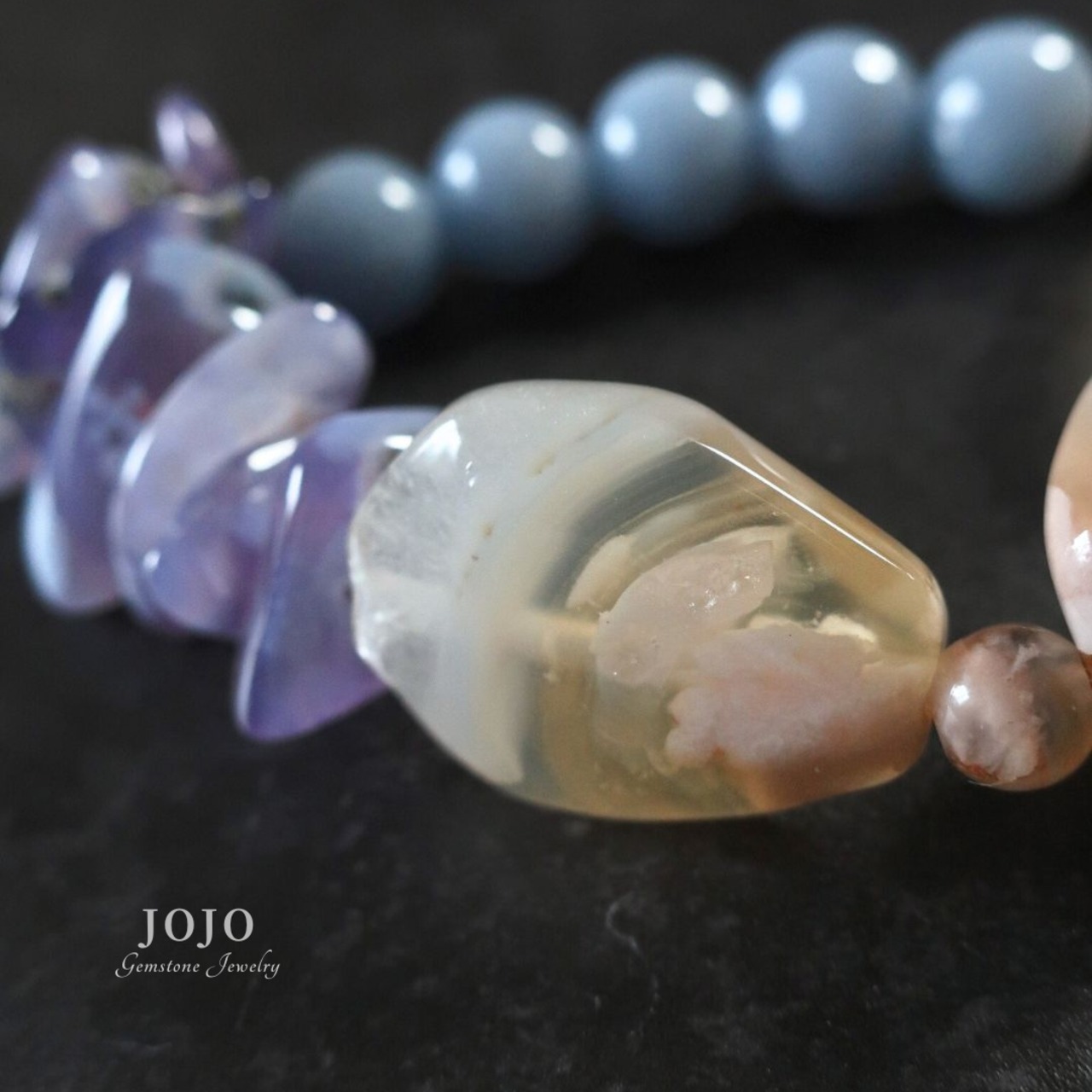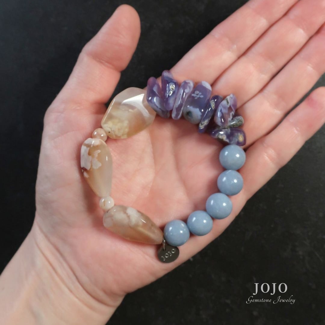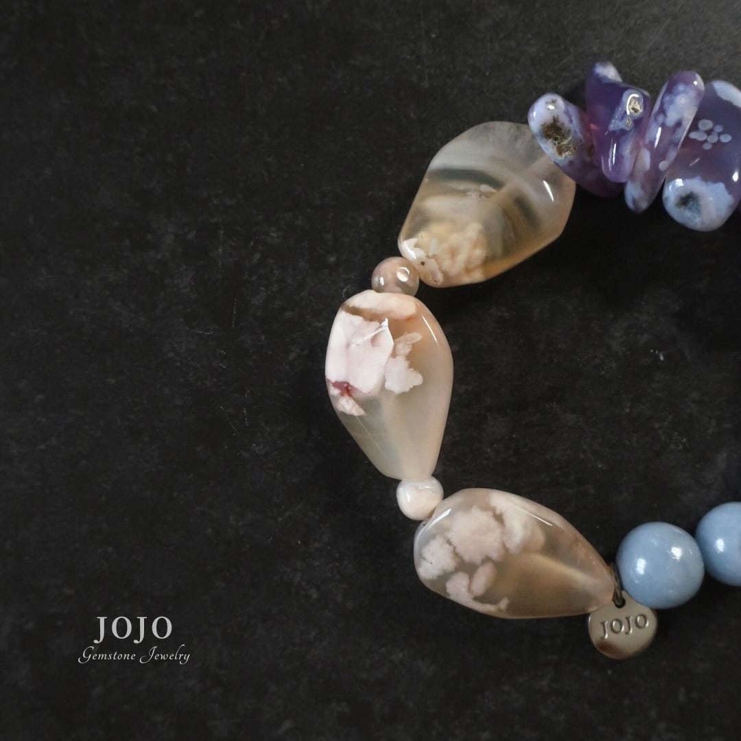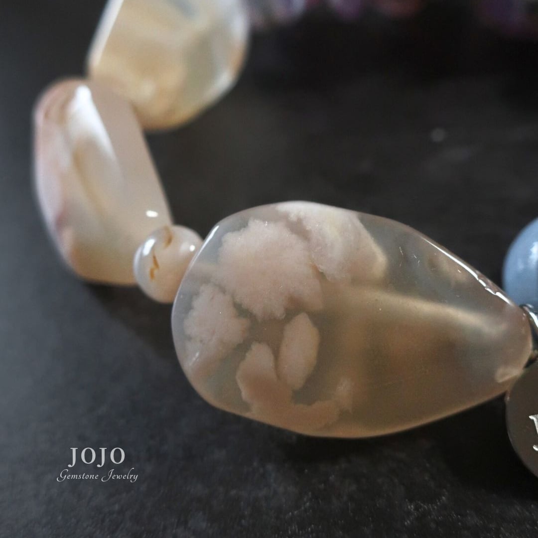 multicolor bracelet «チェリーブロッサムアゲート × パープルカルセドニー × エンジェライト»