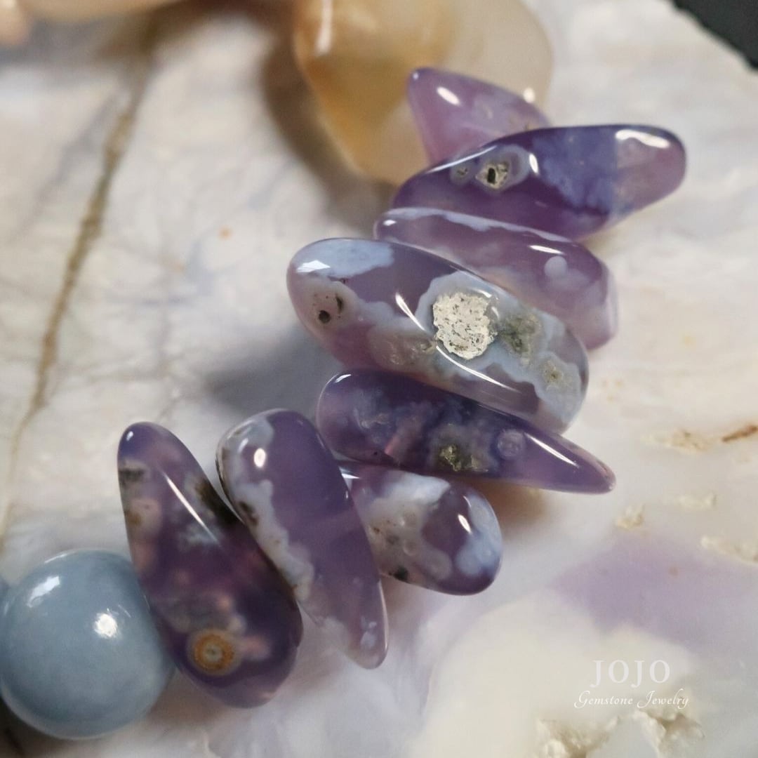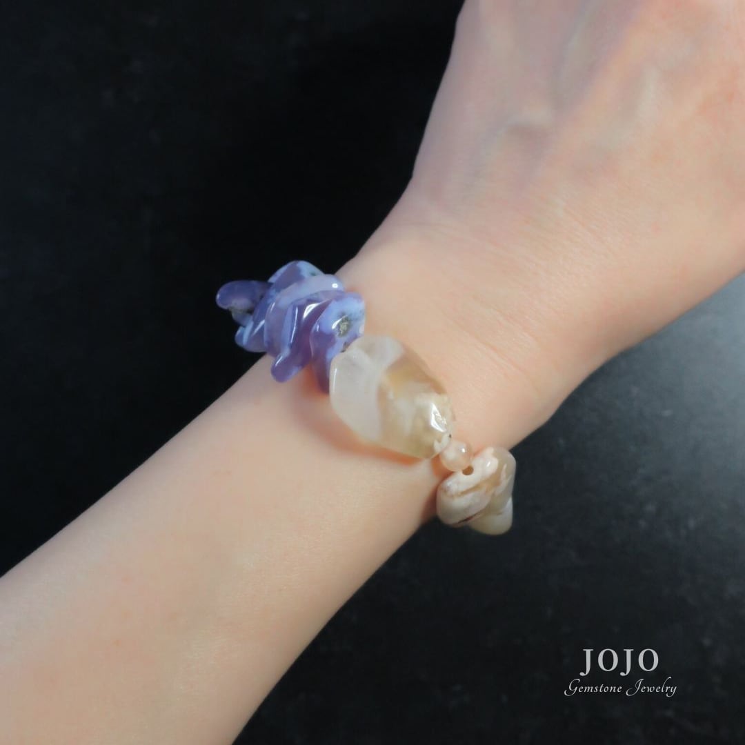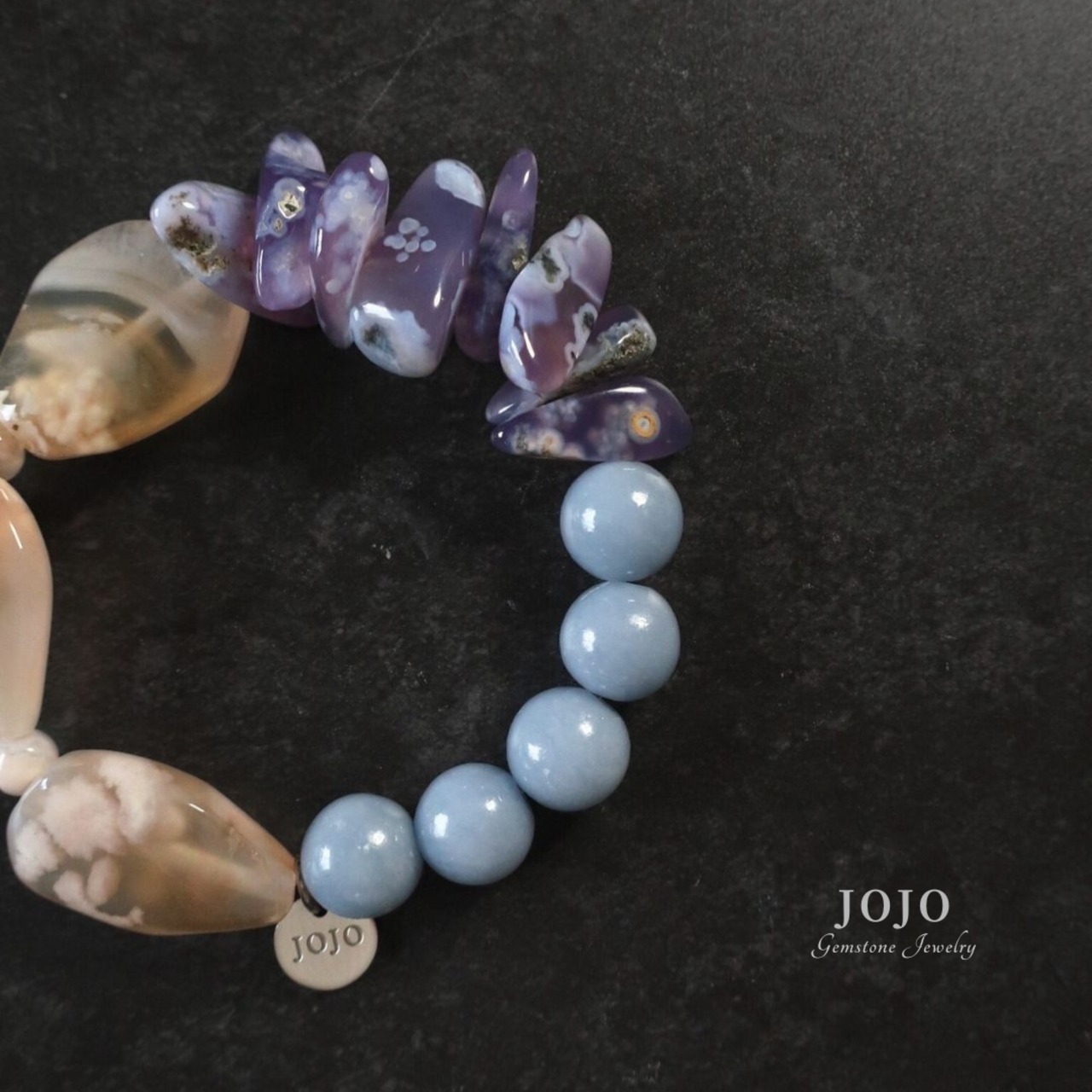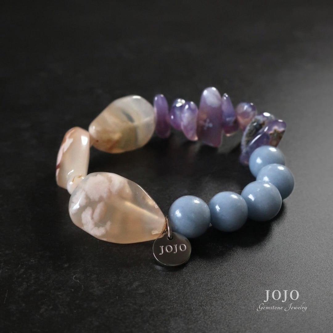 multicolor bracelet «チェリーブロッサムアゲート × パープルカルセドニー × エンジェライト»