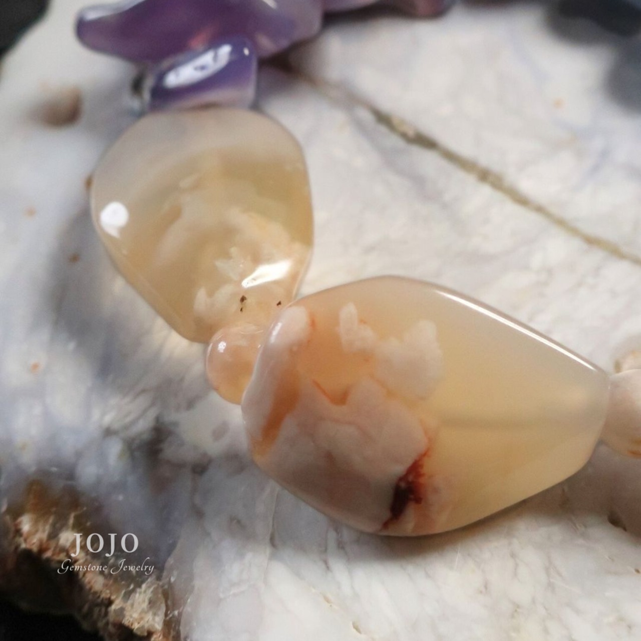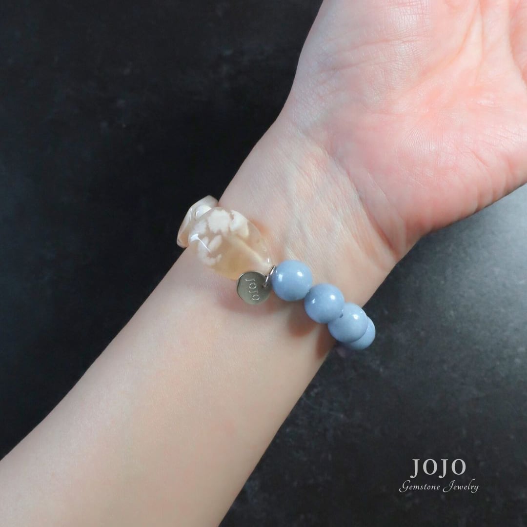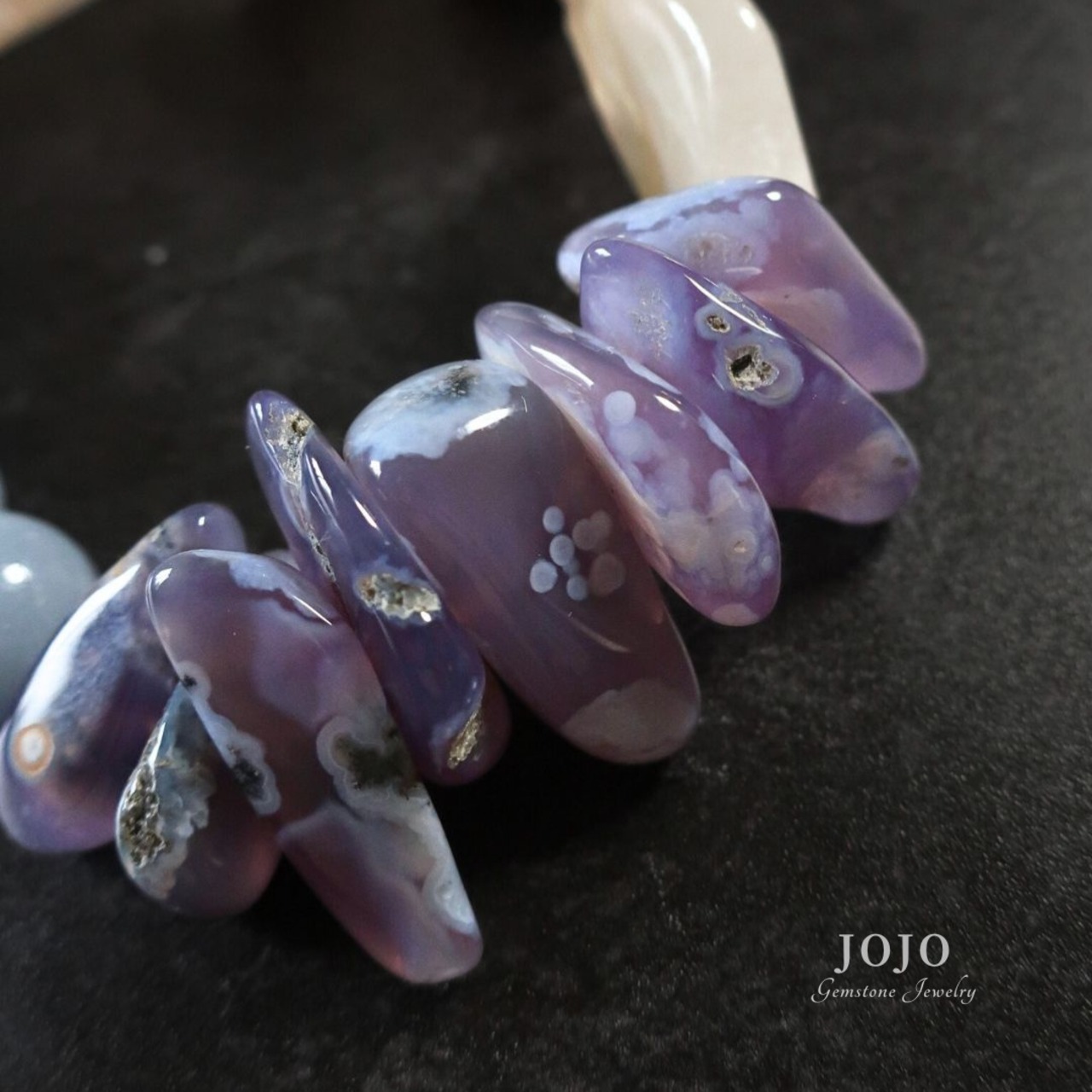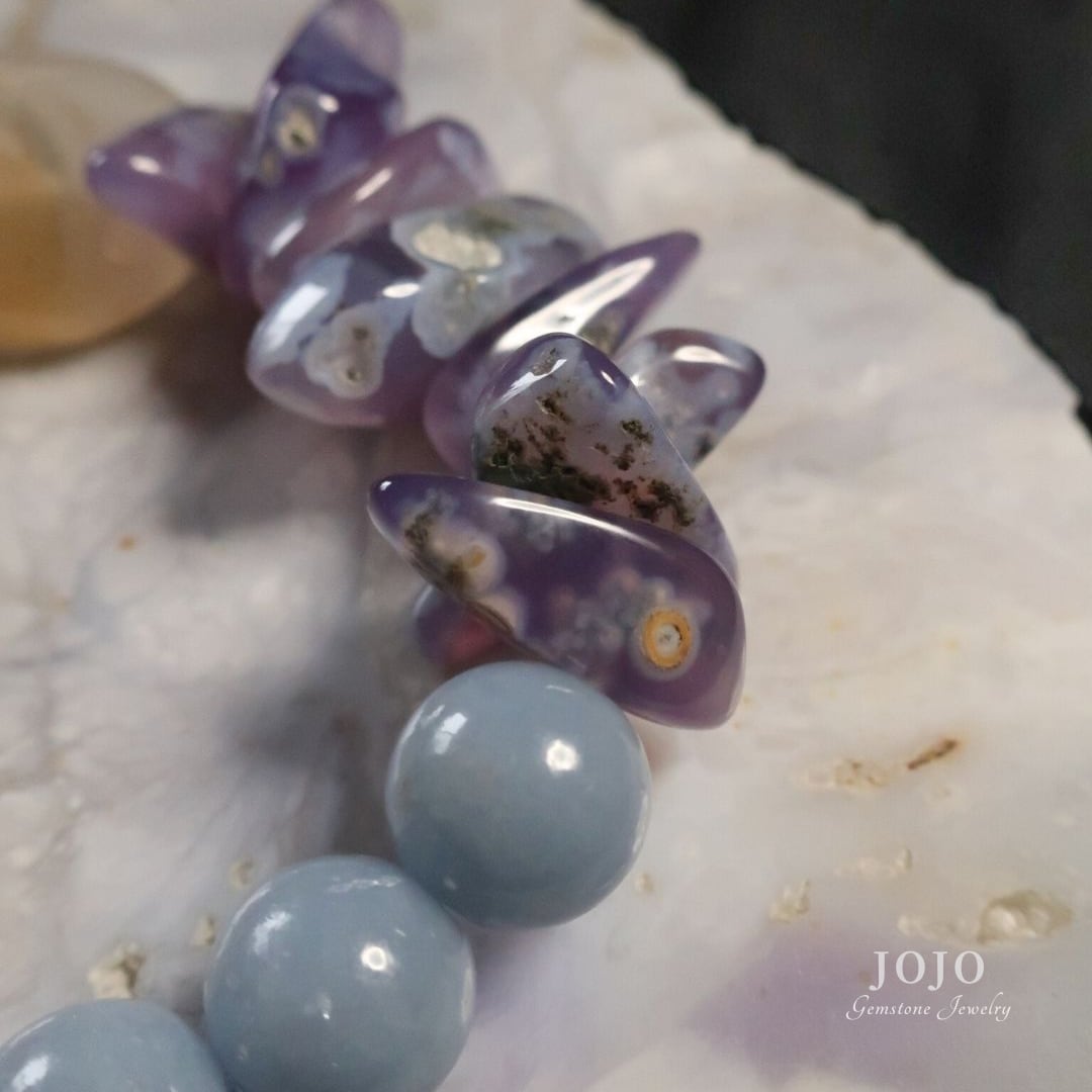 multicolor bracelet «チェリーブロッサムアゲート × パープルカルセドニー × エンジェライト»