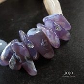 ミルキーなラベンダーカラーに、母岩由来の黒や白の斑点模様が混ざり合い、一粒ごとに異なる表情を見せてくれます。