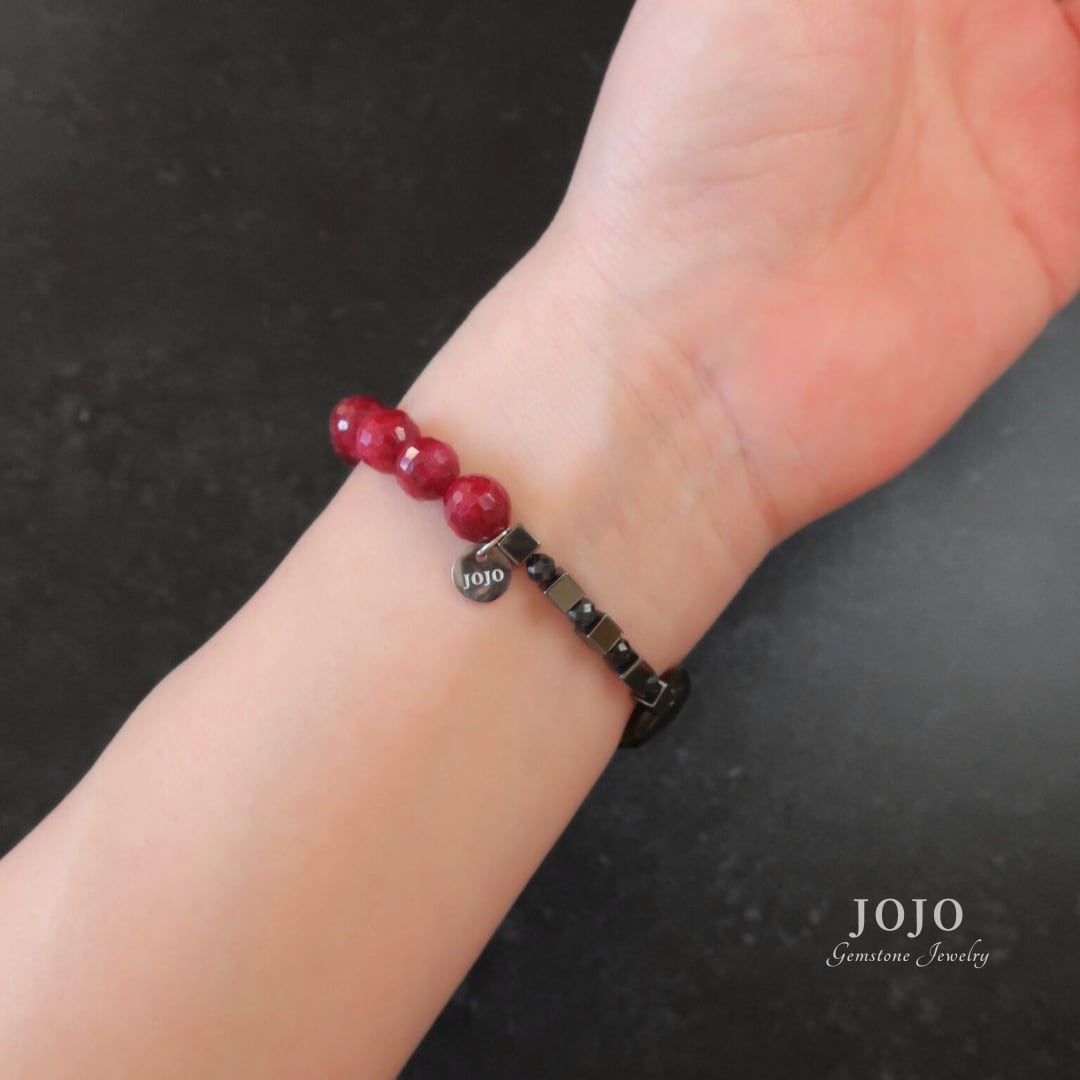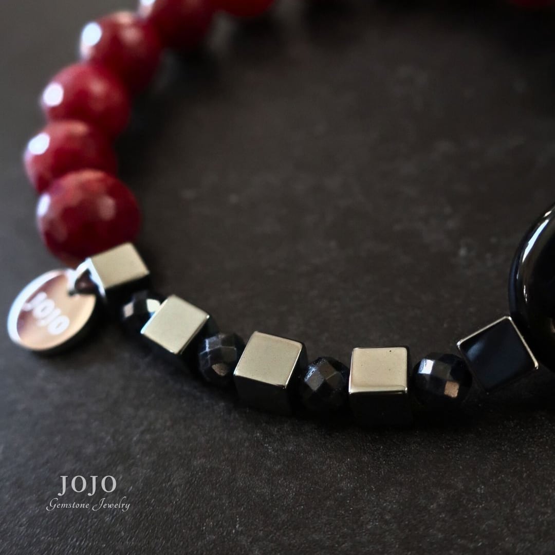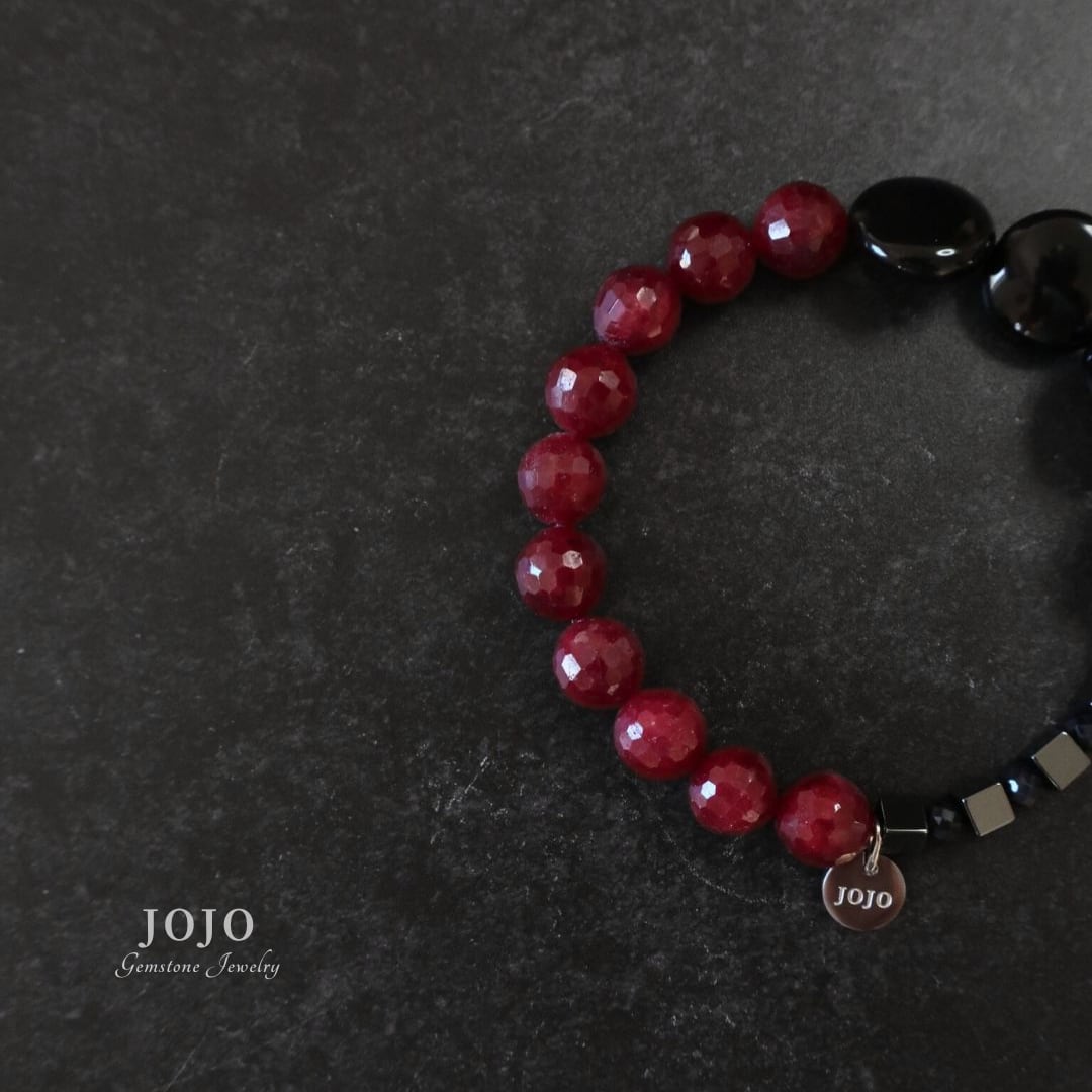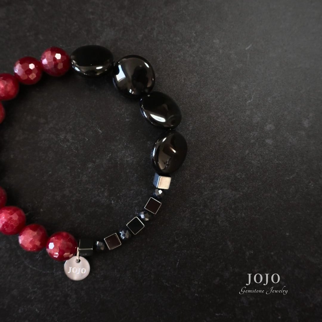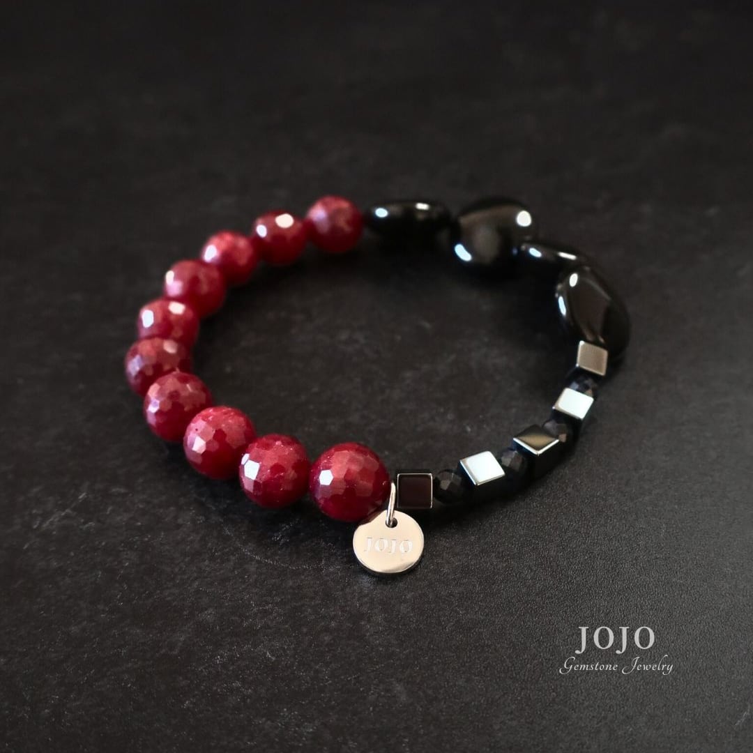 bicolor bracelet «ブラッディルビー × ミッドナイトレースオブシディアン × サファイア × ヘマタイト»