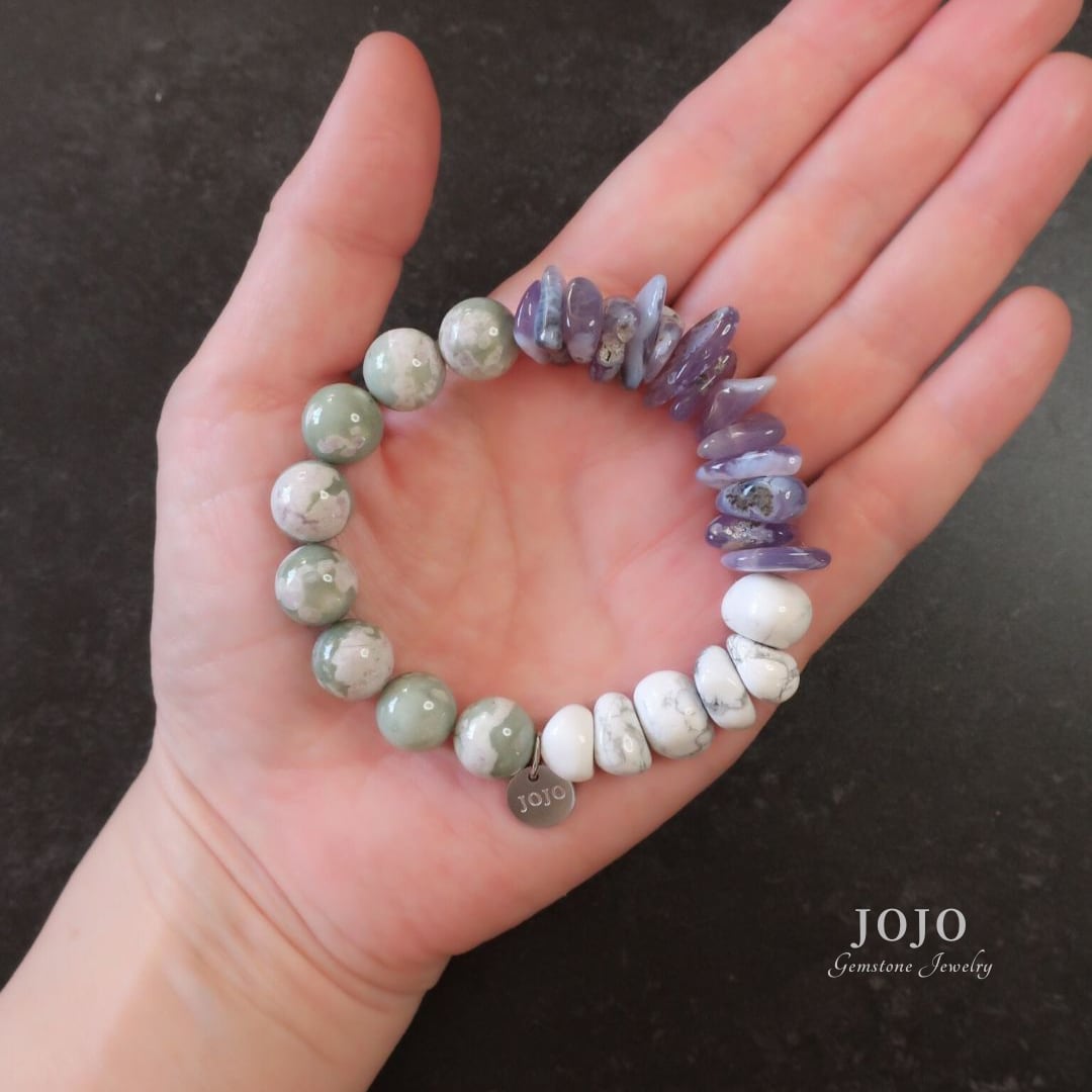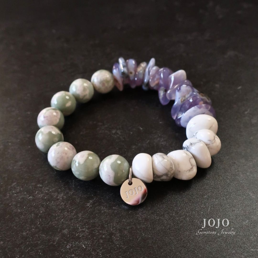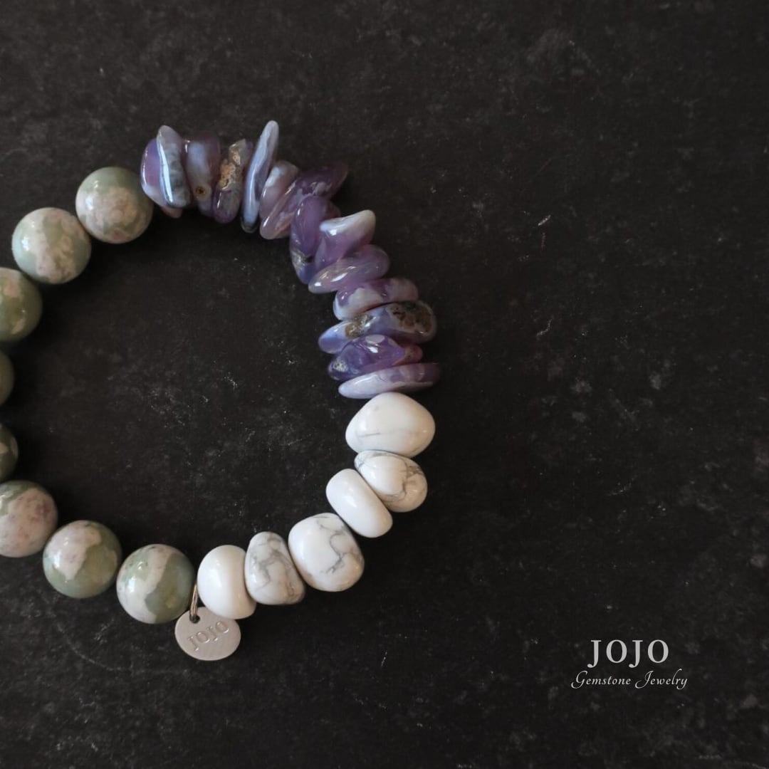 multicolor bracelet «ダイオプサイトイントレモライト × パープルカルセドニー × ハウライト»