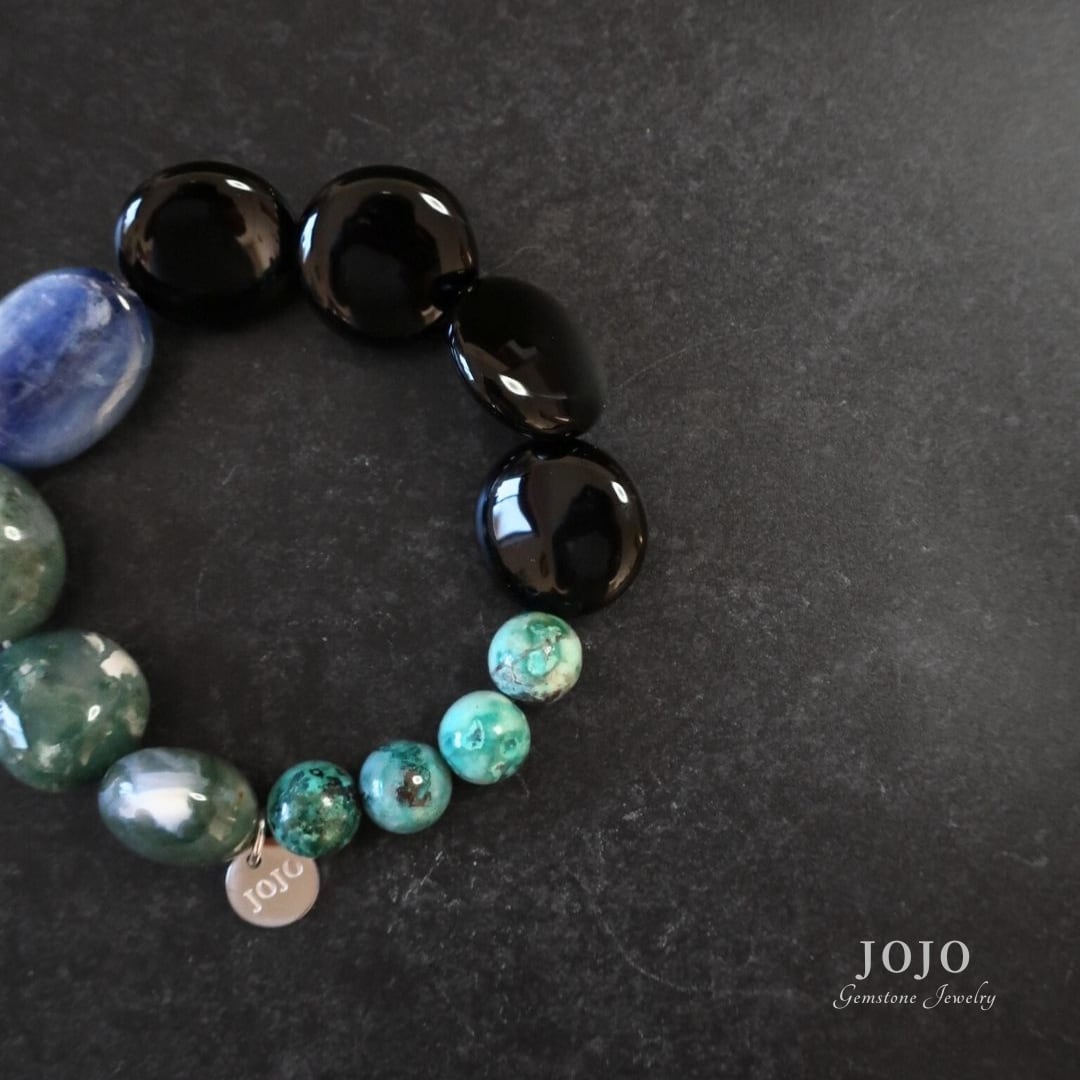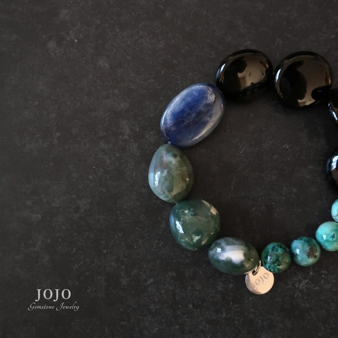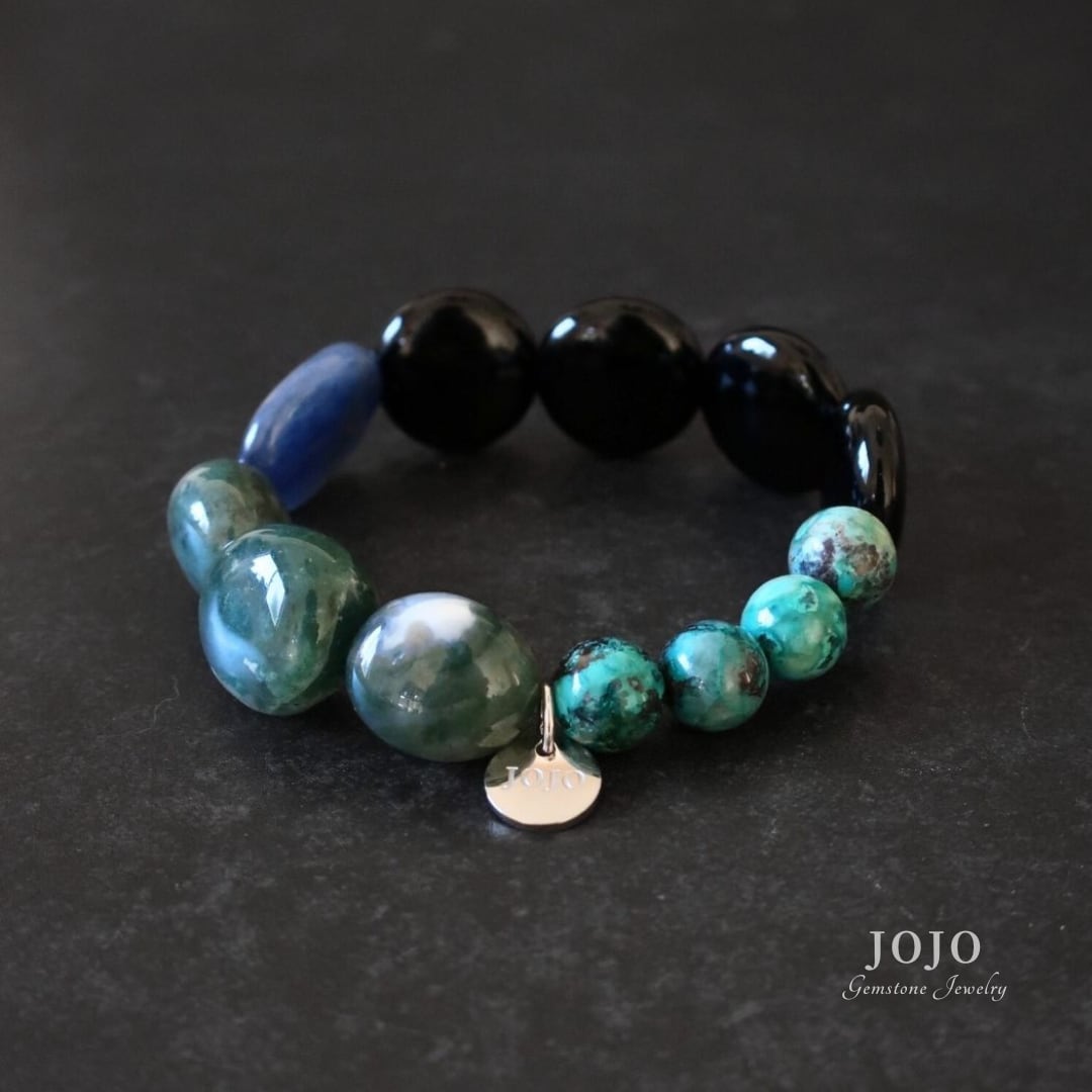 multicolor bracelet «モスアゲート × オニキス × クリソコラ × カイヤナイト»