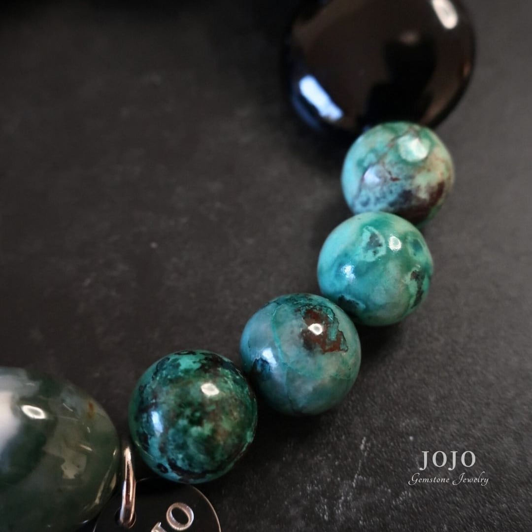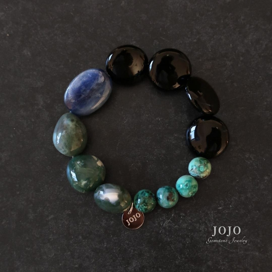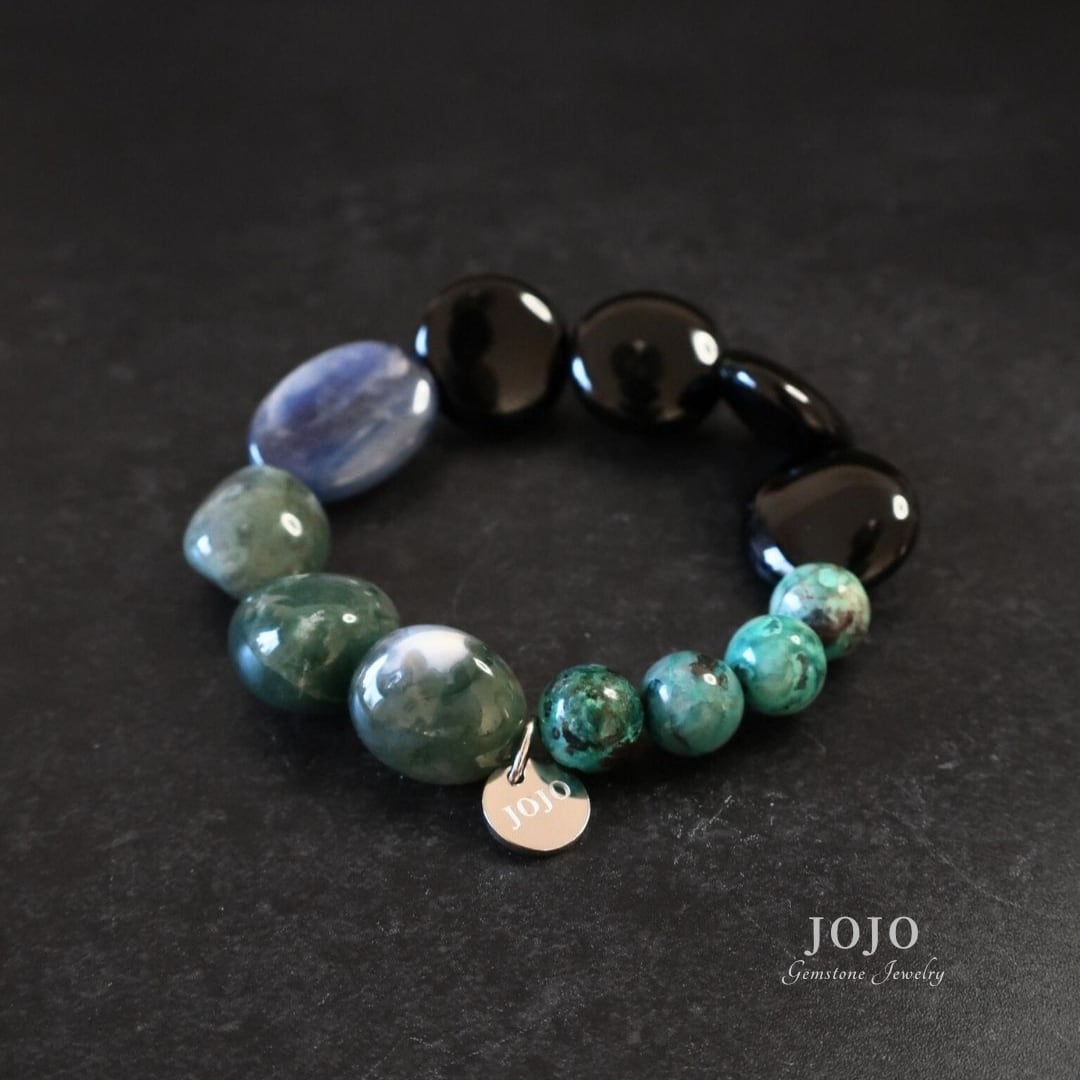 multicolor bracelet «モスアゲート × オニキス × クリソコラ × カイヤナイト»