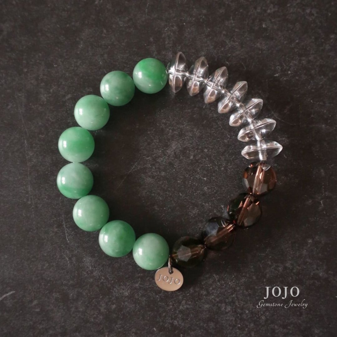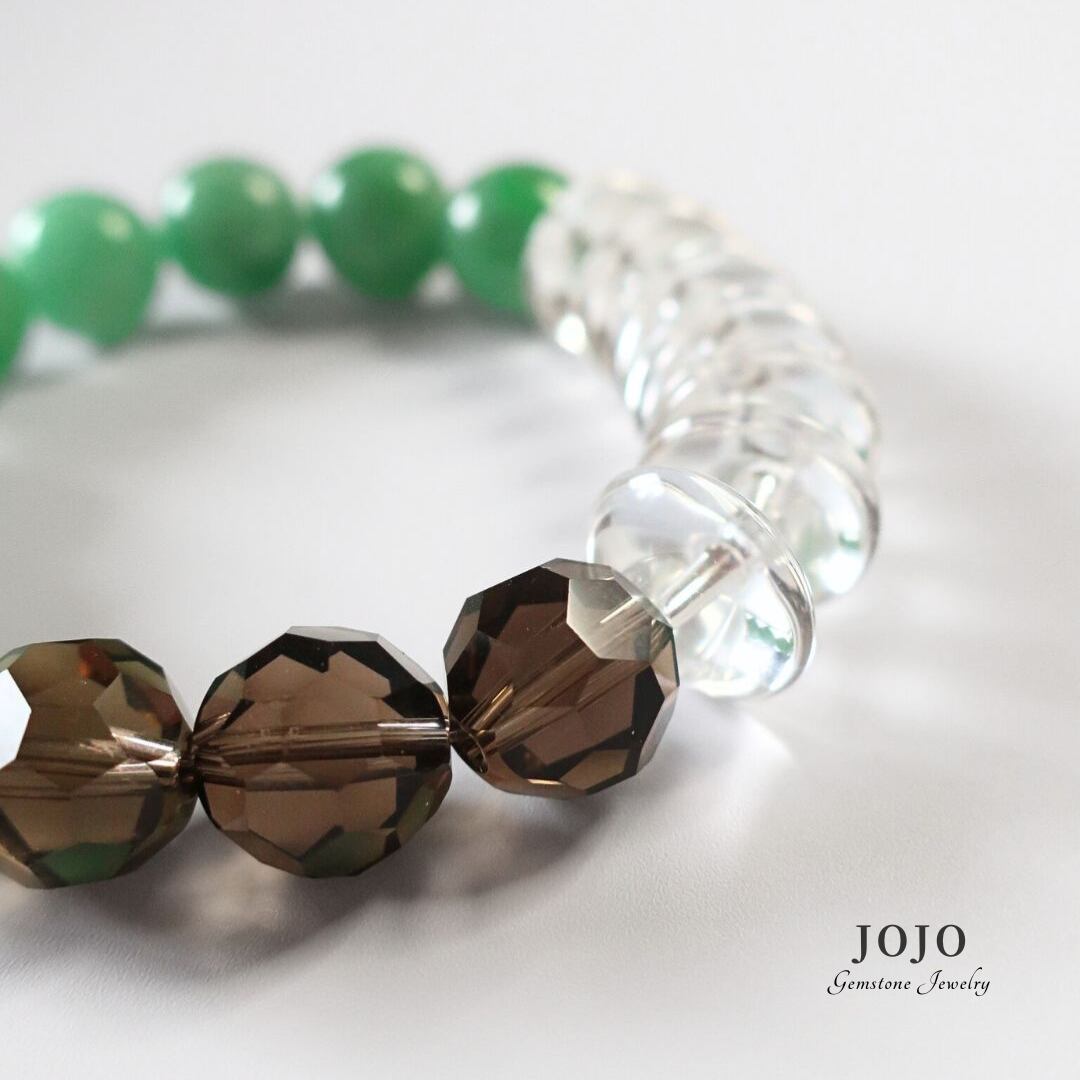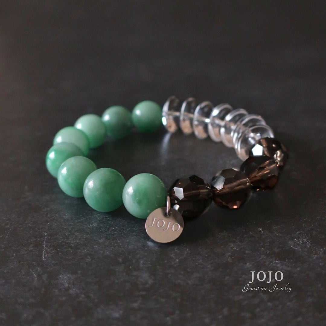 multicolor bracelet «翡翠 × スモーキークォーツ × クリスタル»