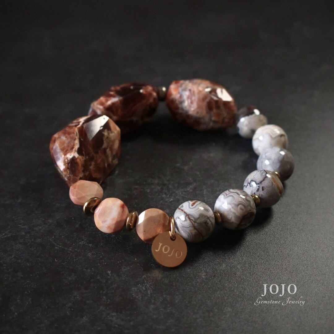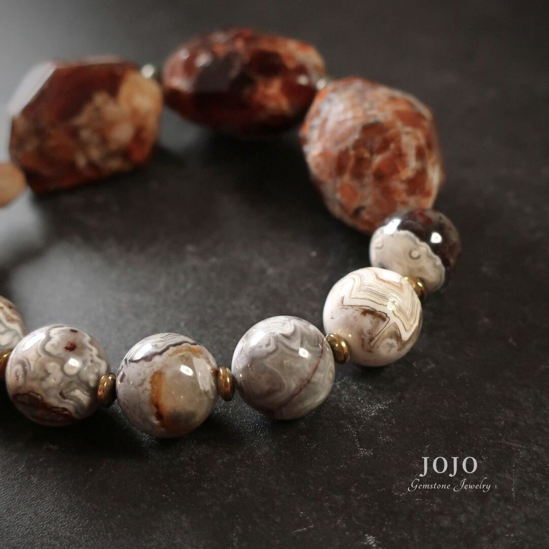 bicolor bracelet«ブランデーオパール × クレイジーレースアゲート × アフリカンアゲート»