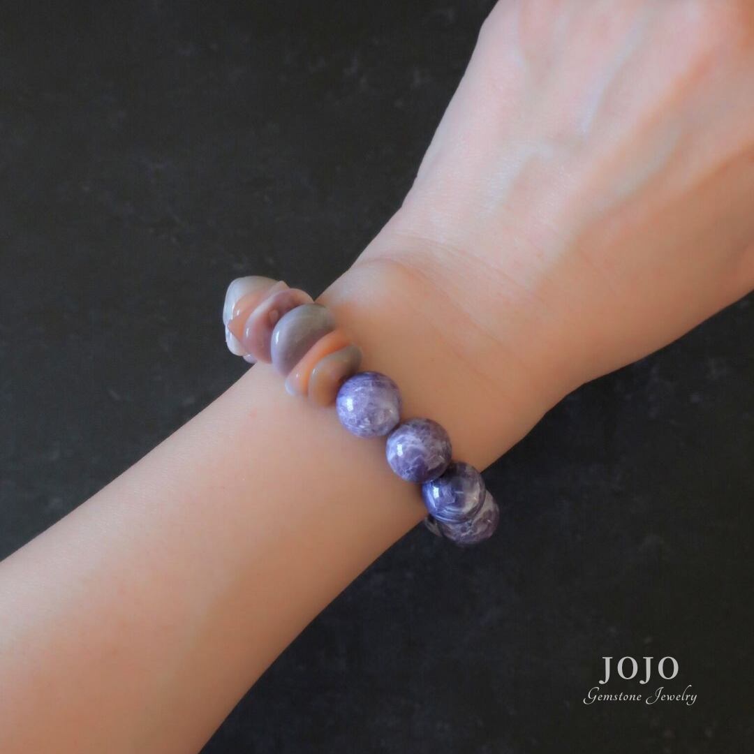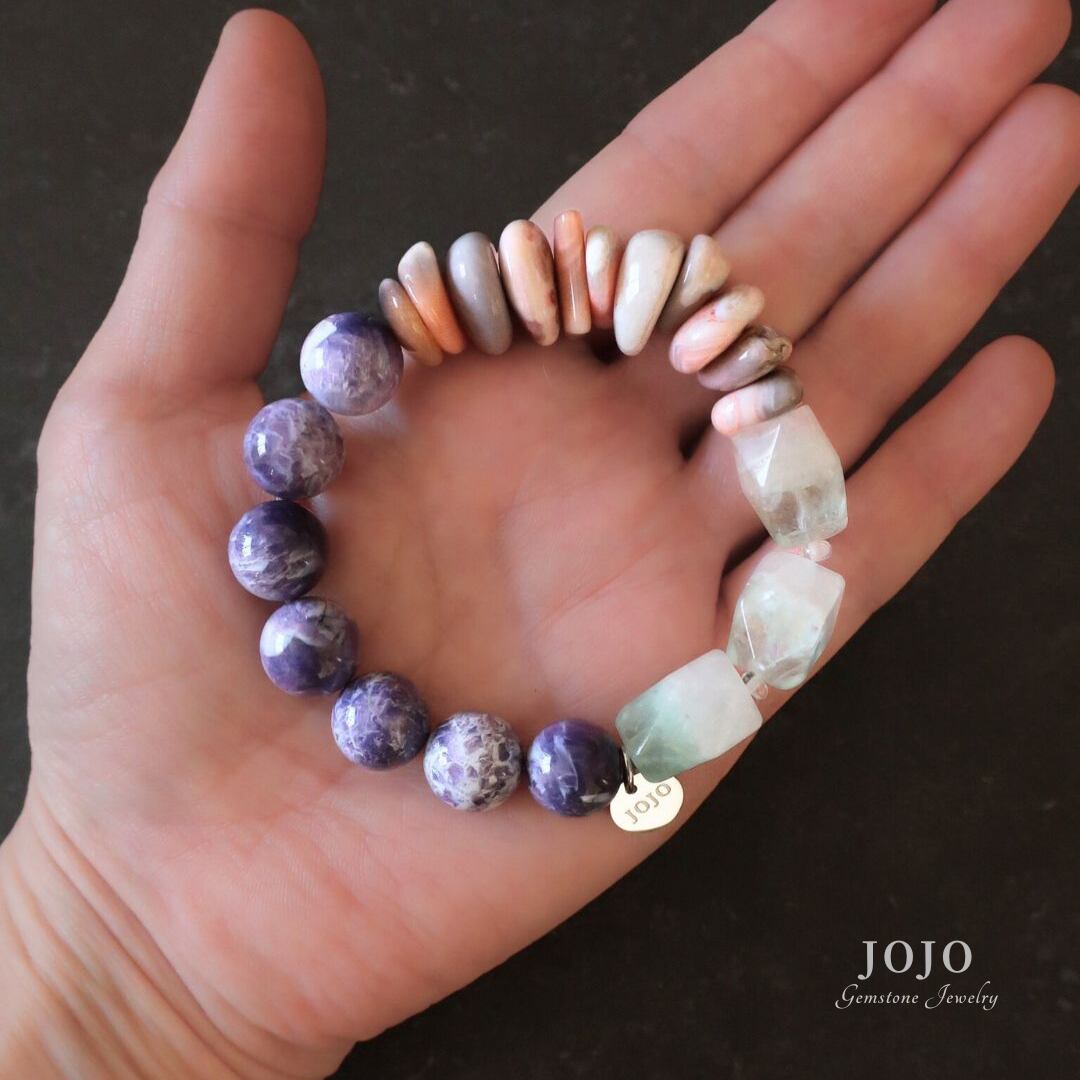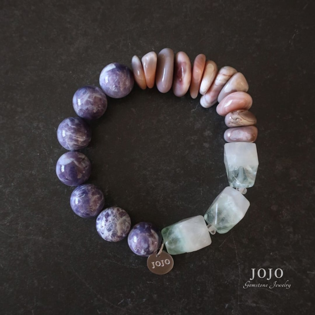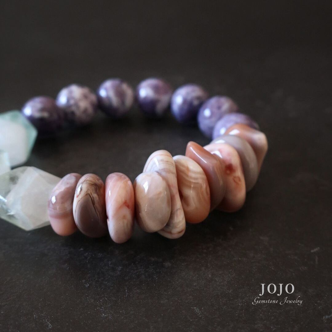 multicolor bracelet «アメシスティンクォーツ × ピンクボツワナアゲート × フローライトクォーツ»