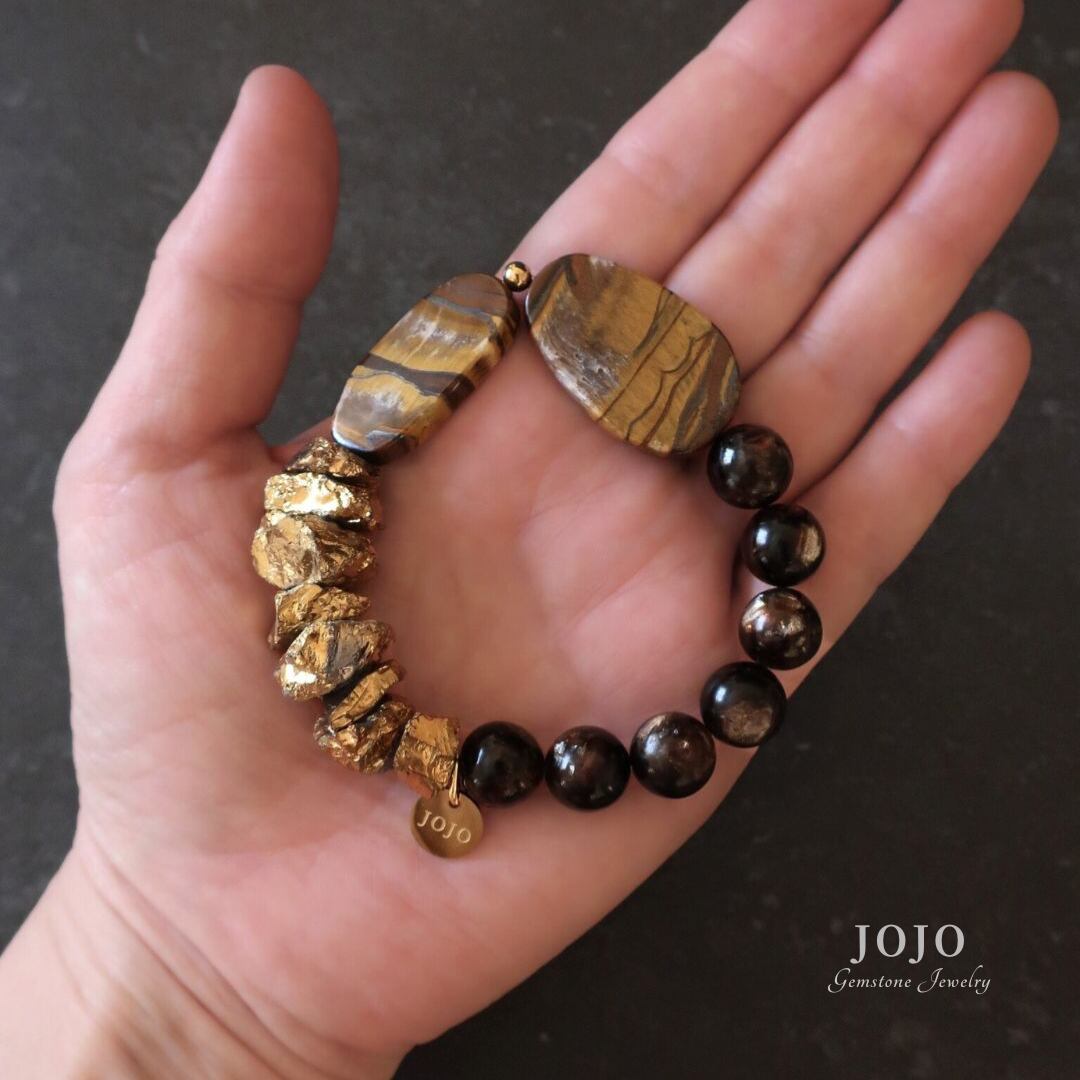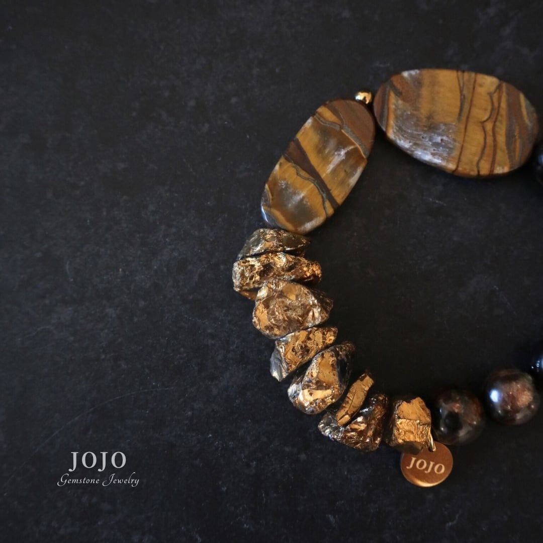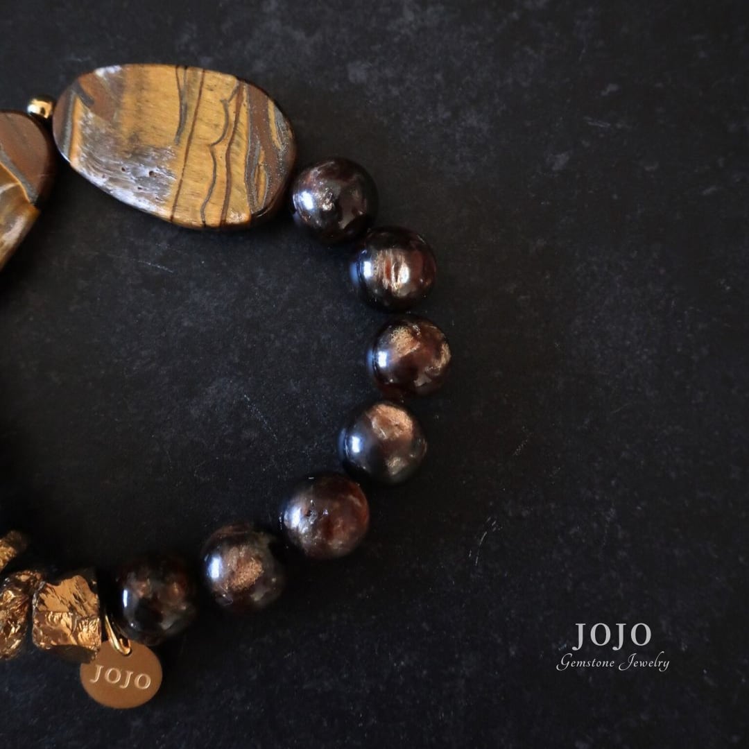bicolor bracelet «ゴールデンブラックマイカ × アイアンタイガーアイ × オーラクリスタル»