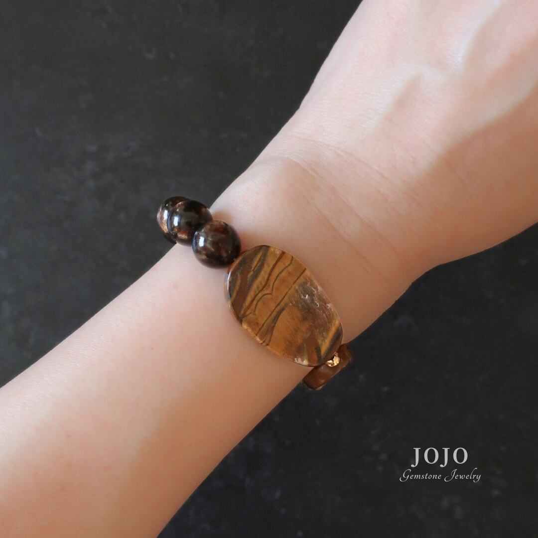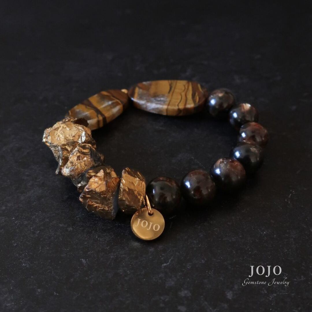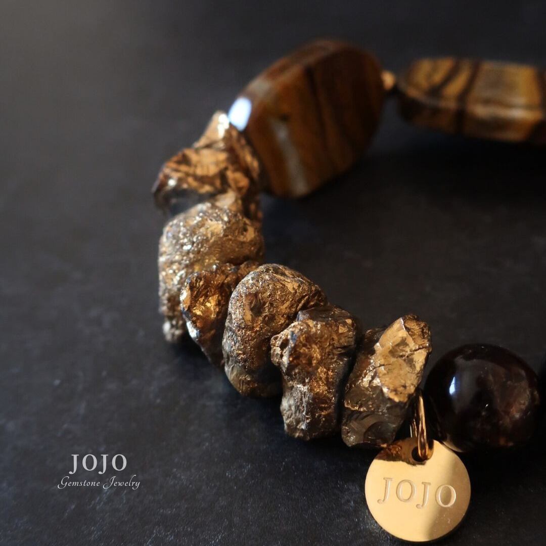 bicolor bracelet «ゴールデンブラックマイカ × アイアンタイガーアイ × オーラクリスタル»
