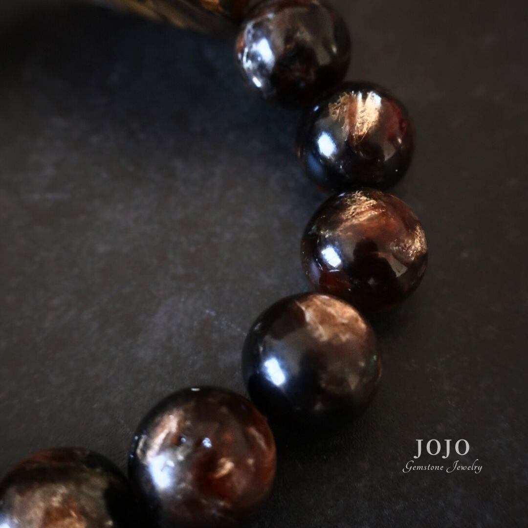 黒に近いダークブラウンの中から、マイカ特有の閃光のような輝きが浮かび上がります。