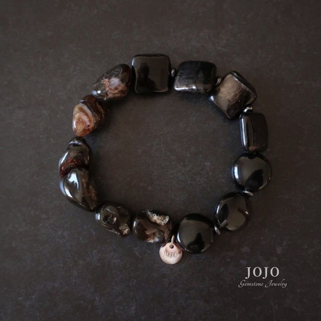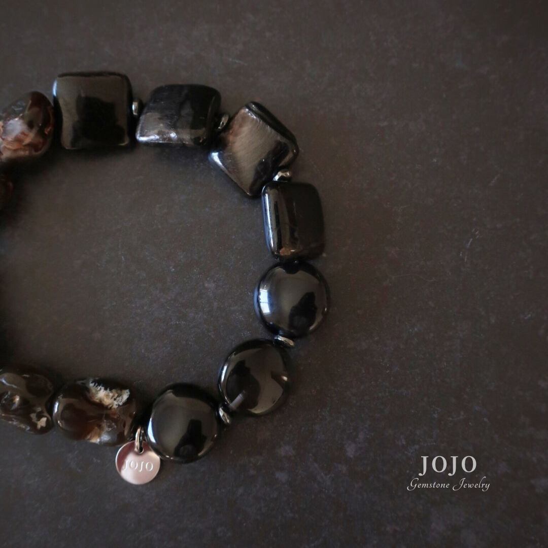 one color bracelet «ファイヤーアゲート × ハイパーシーン × ミッドナイトレースオブシディアン»
