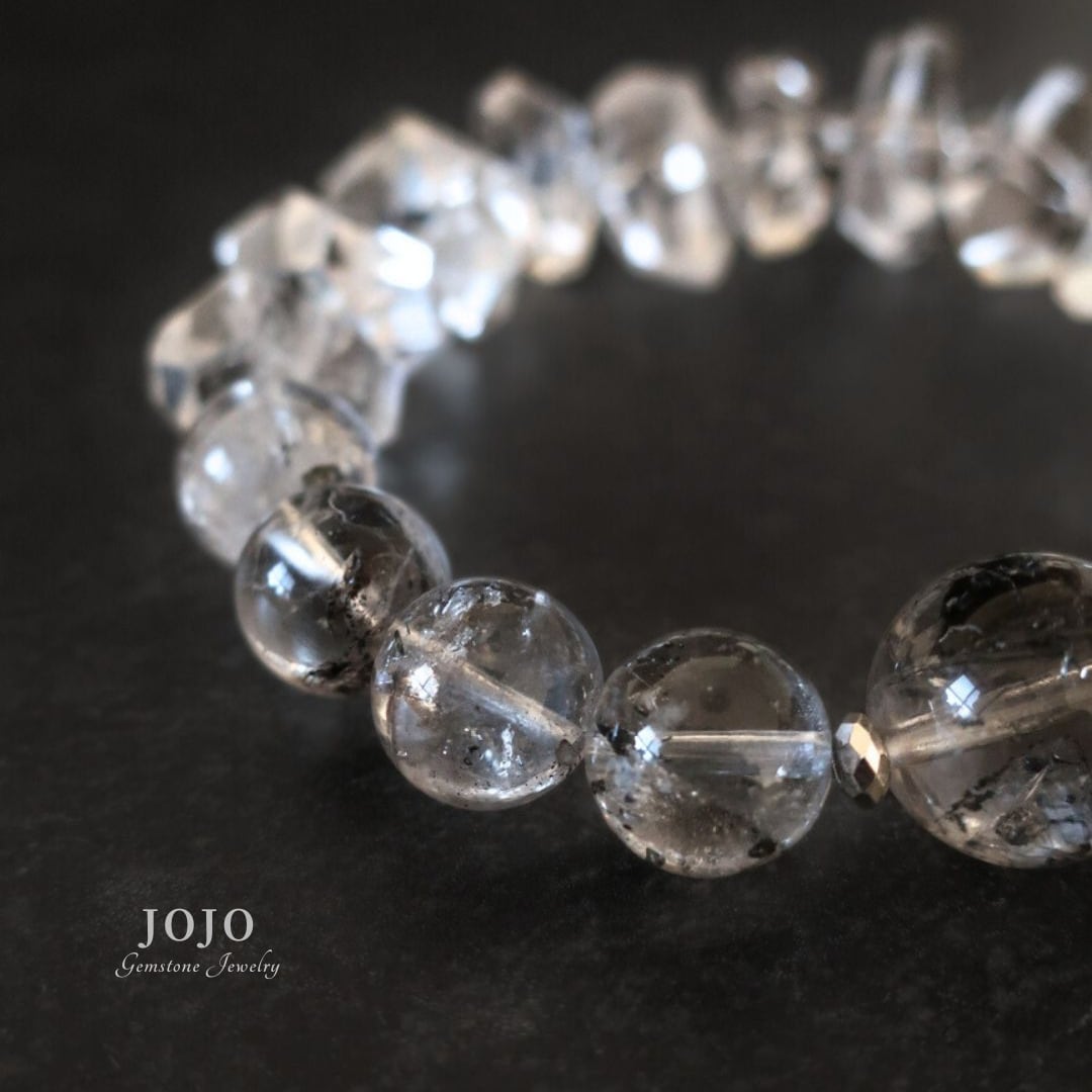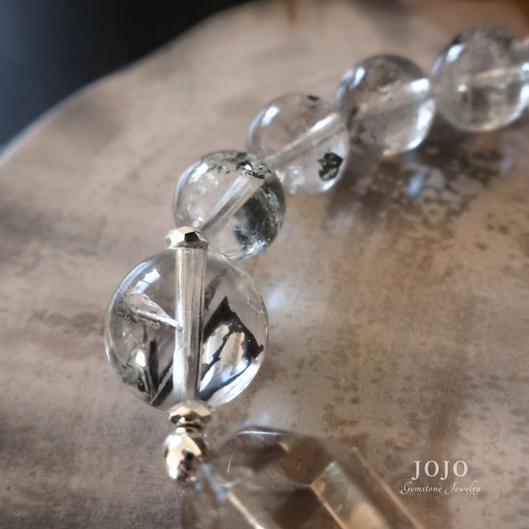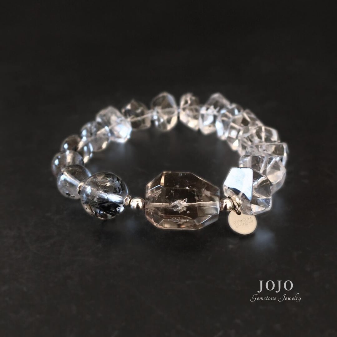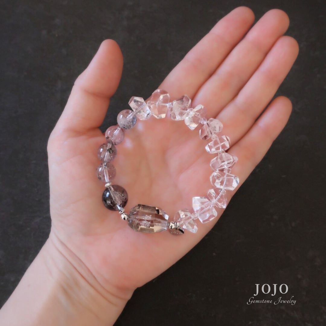 ごく限られた条件下でのみ形成される、エンハイドロクォーツ(水入り水晶)を使用したブレスレットです。