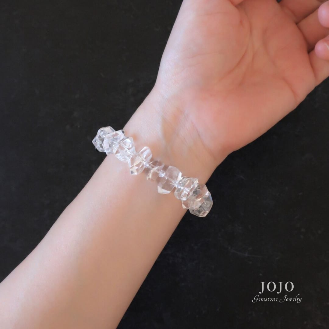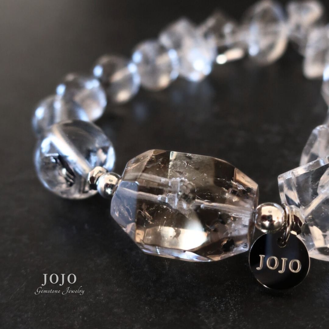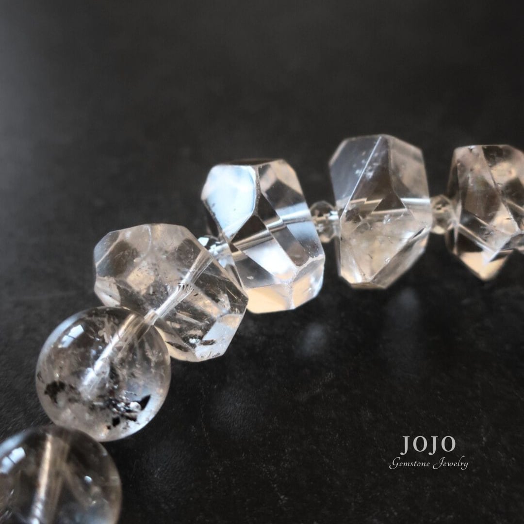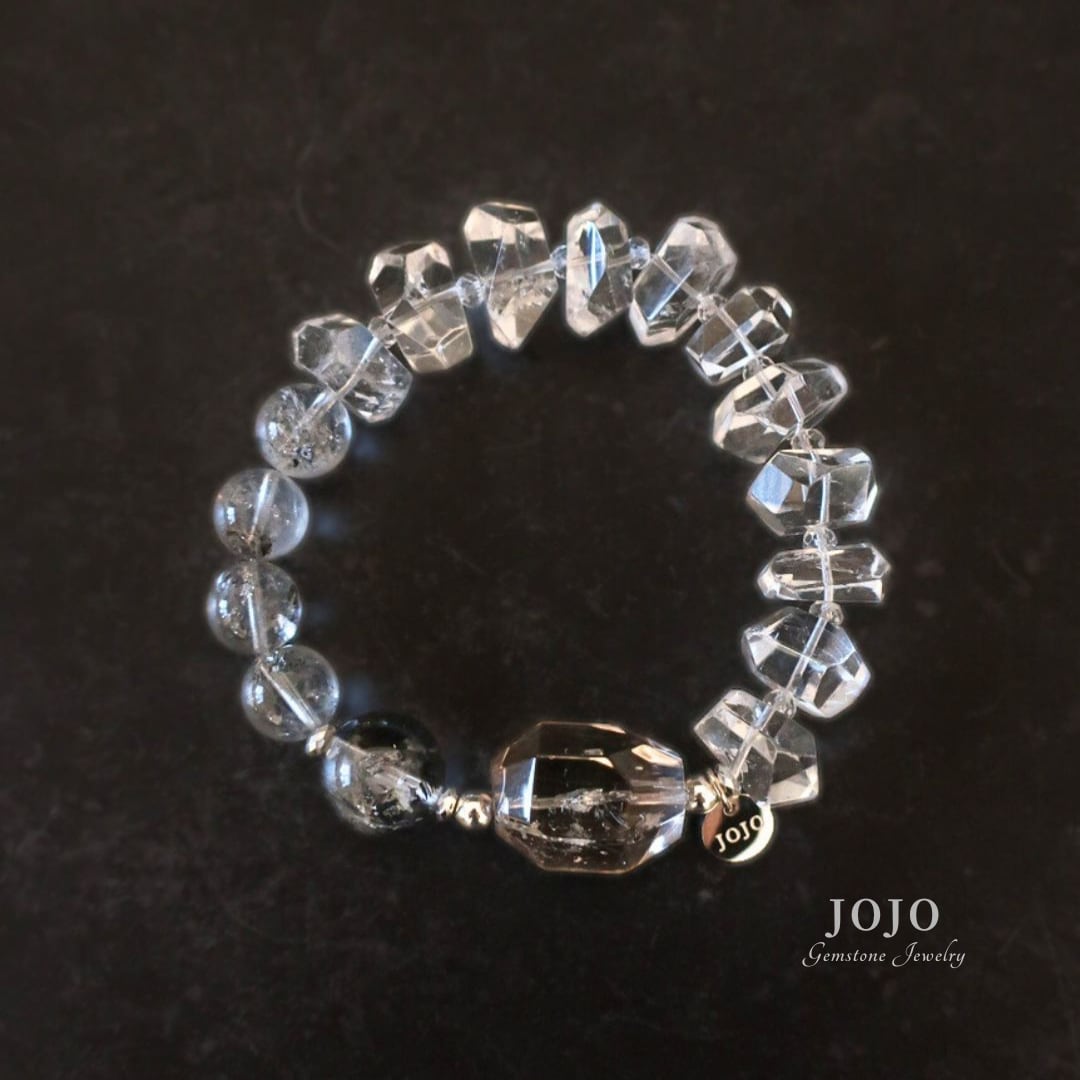 ごく限られた条件下でのみ形成される、エンハイドロクォーツ(水入り水晶)を使用したブレスレットです。