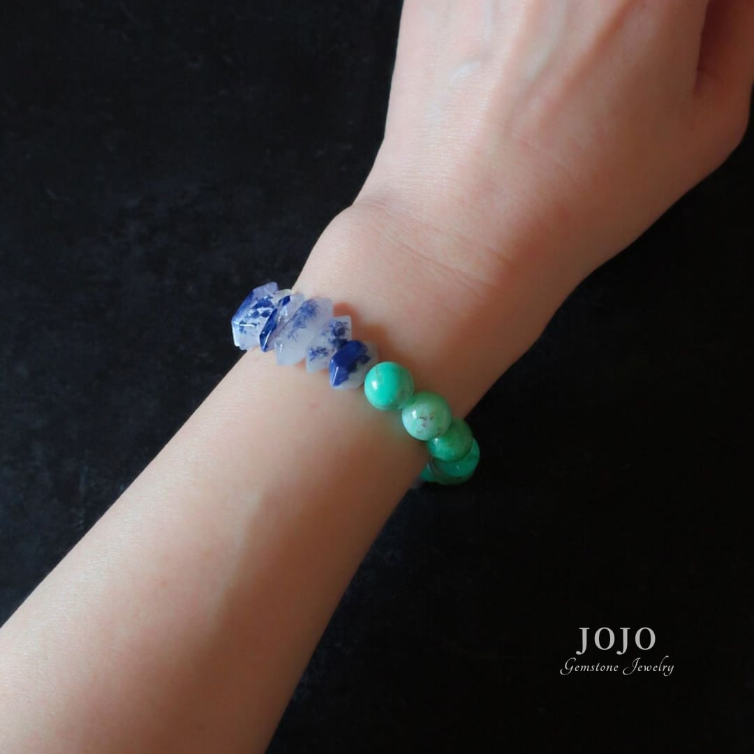 multicolor bracelet «クリソプレーズ × デュモルチェライトインクォーツ × エレスチャルクォーツ»