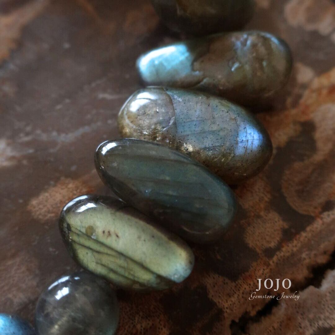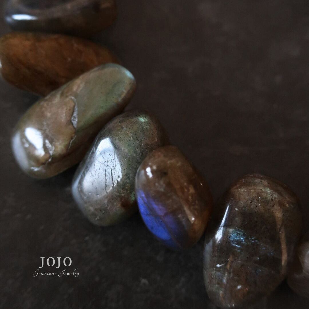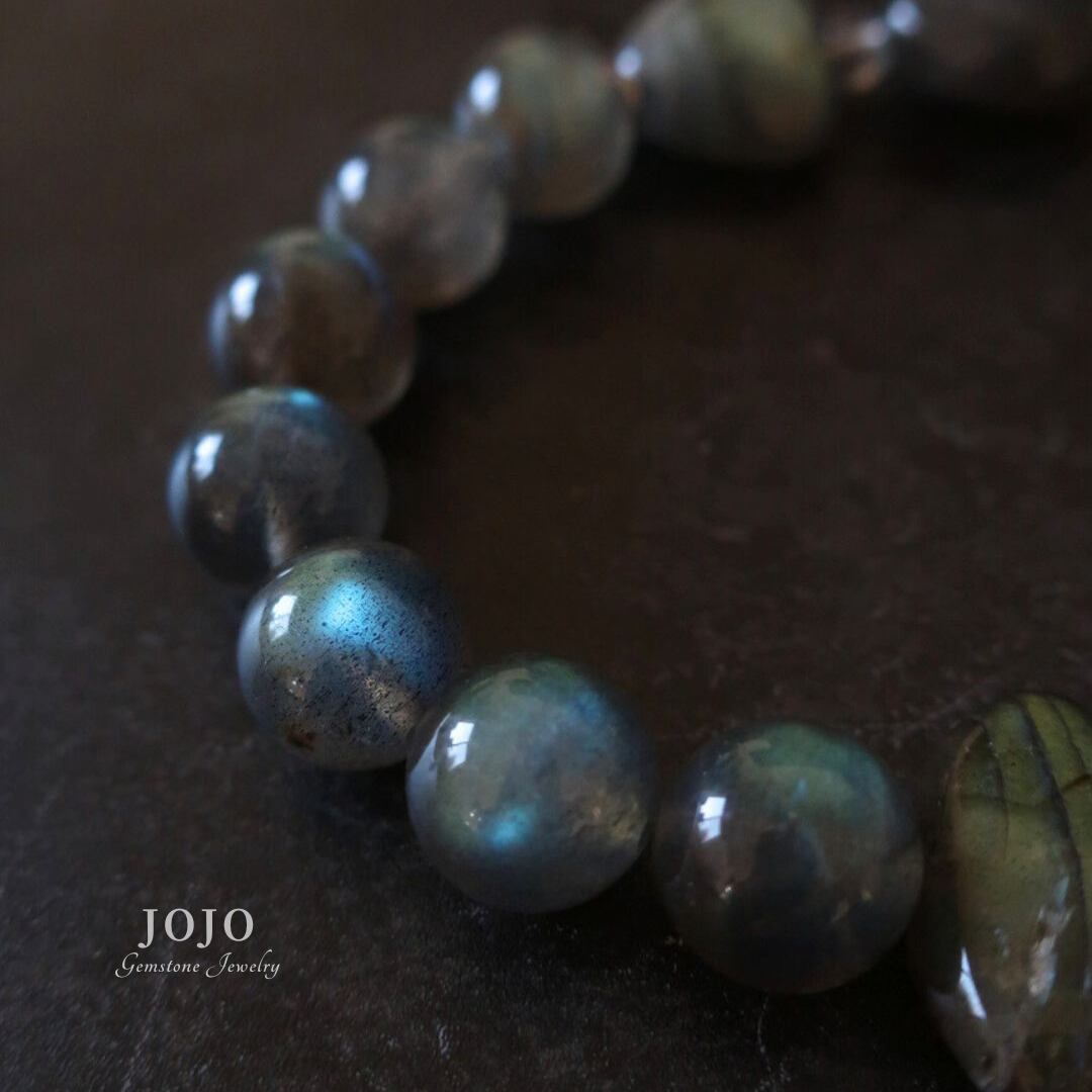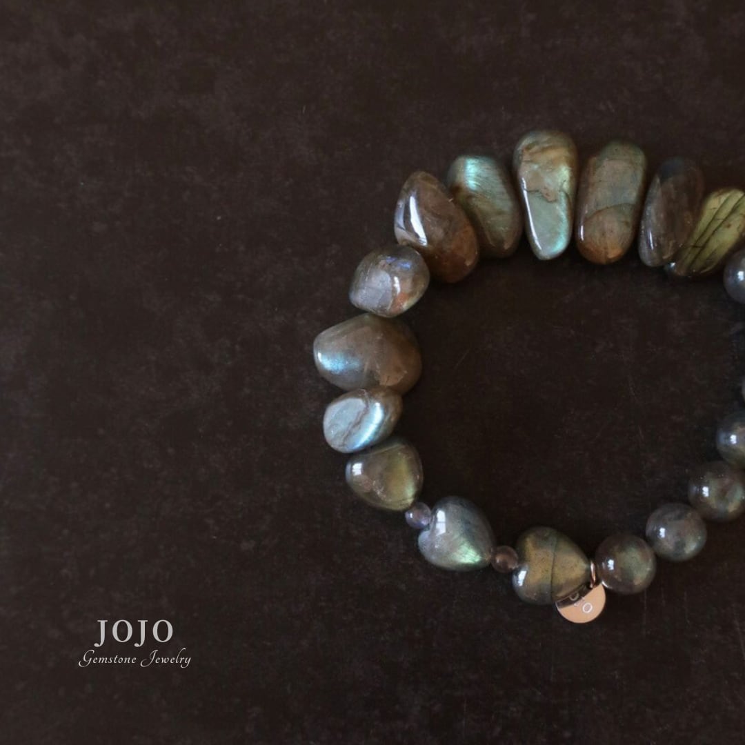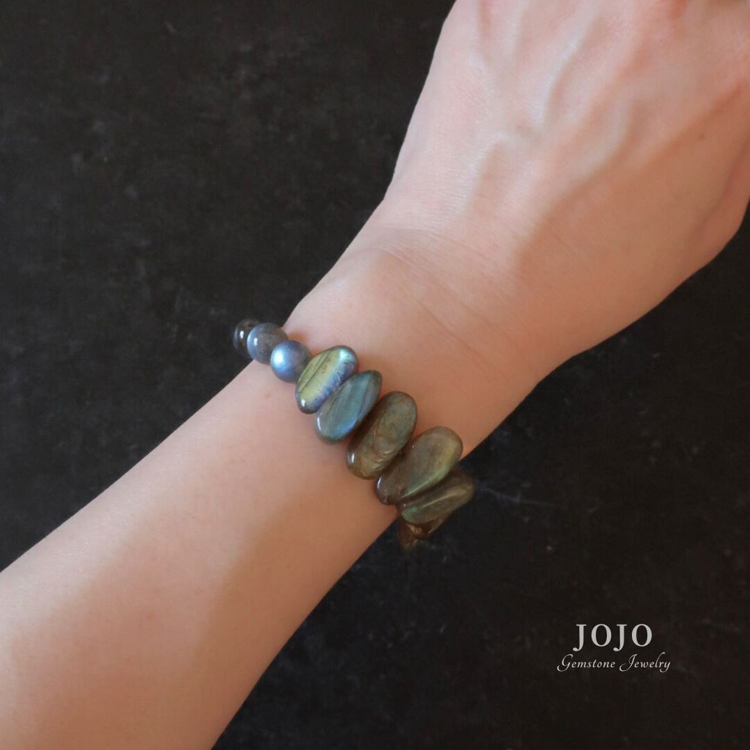 石そのものの存在感を楽しめる、ラブラドライト好きのためのブレスレットです。