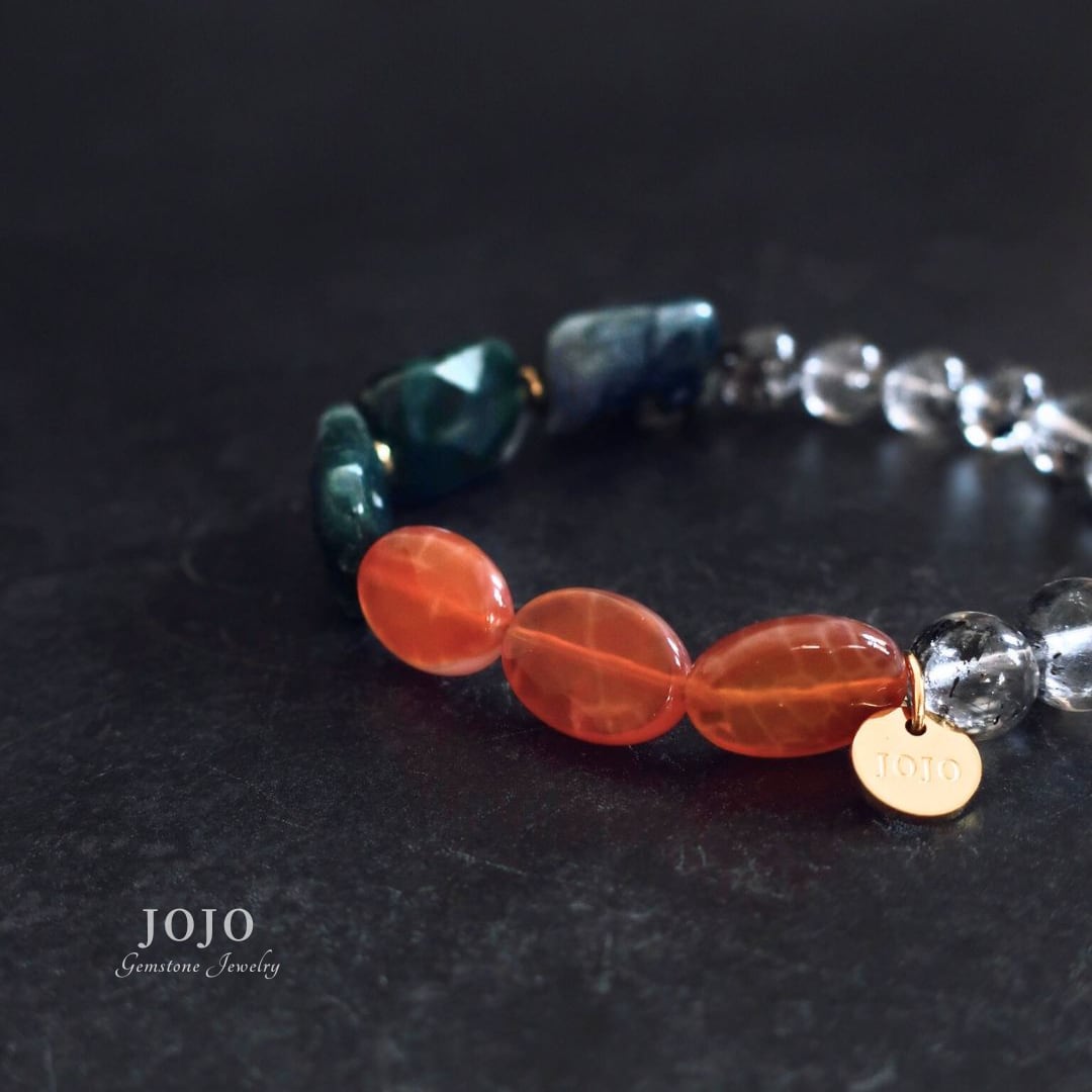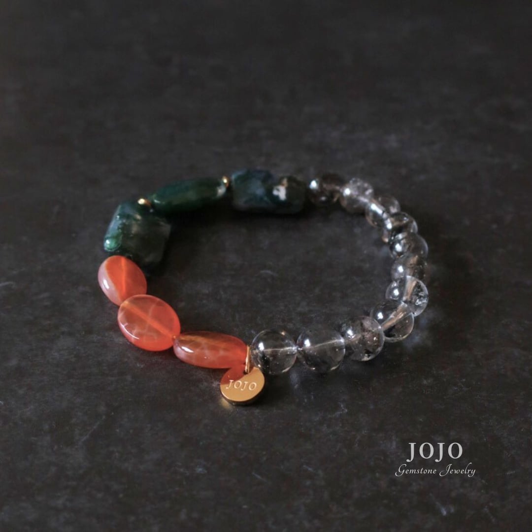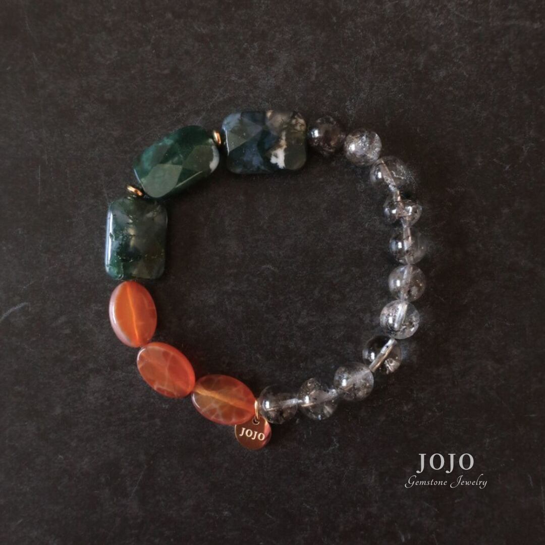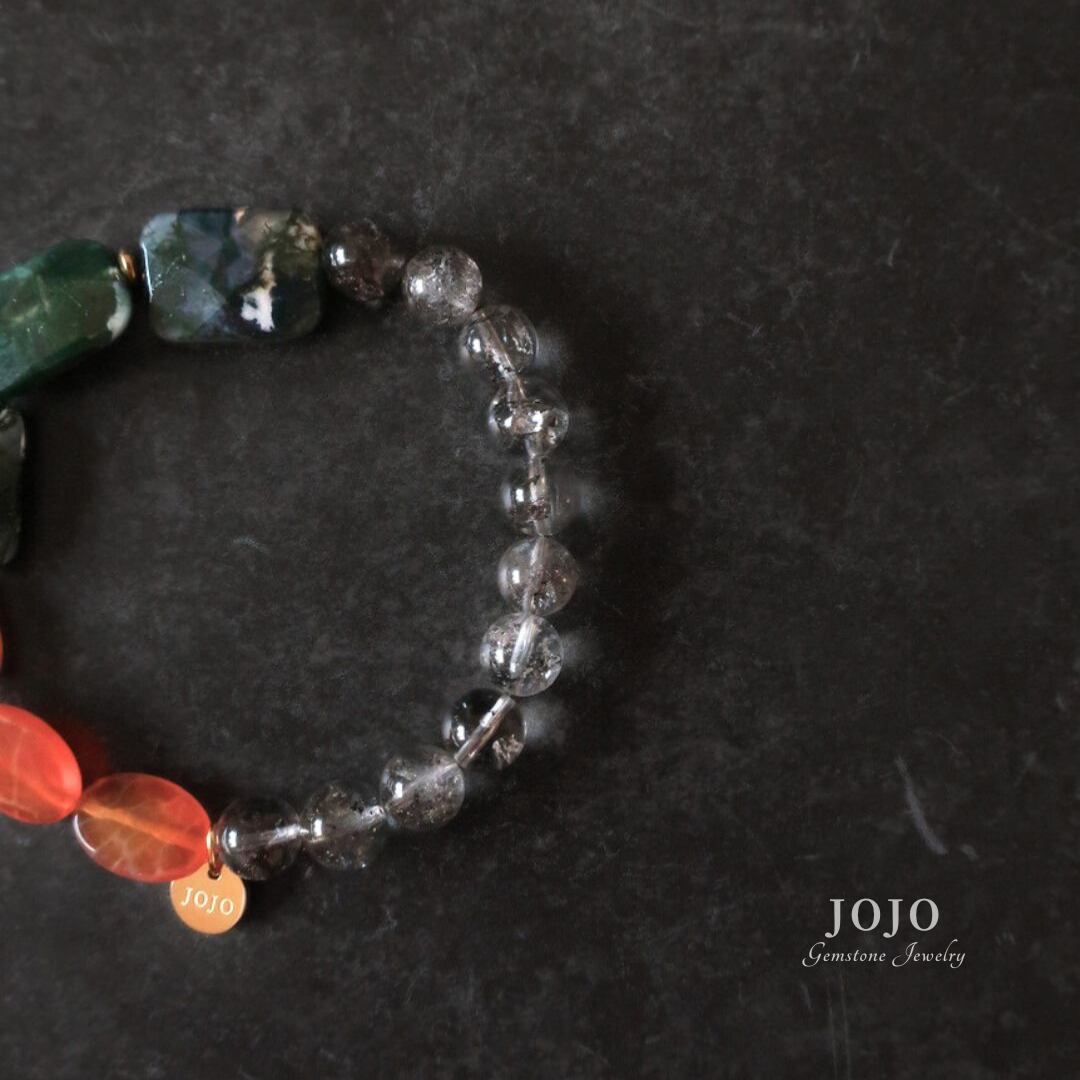 multicolor bracelet «グラファイトインクォーツ × モスアゲート × ファイヤーアゲート»