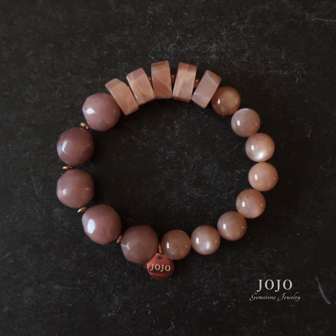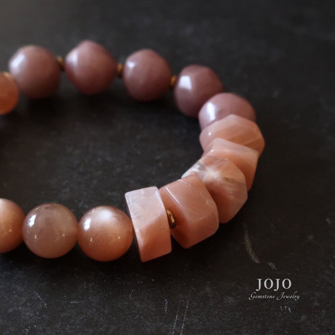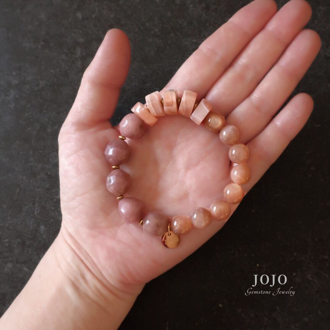 one color bracelet «オレンジサンムーンストーン × ピンクトルマリン × ピーチムーンストーン»