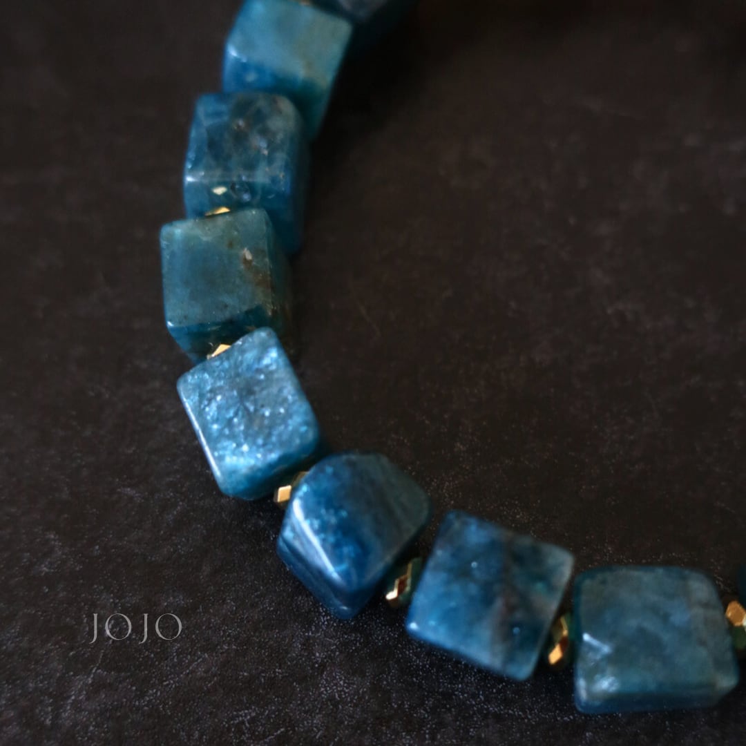 深い湖の底を思わせるブルーは、ただ鮮やかなだけでなく、透け感やシラー、色の濃淡が粒ごとに異なり、静かな奥行きを感じさせます。