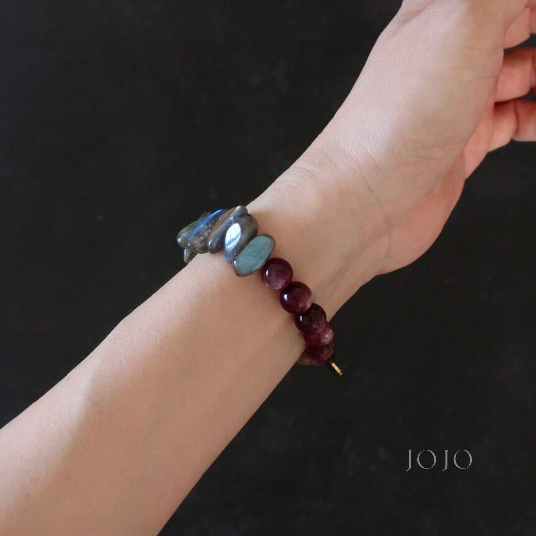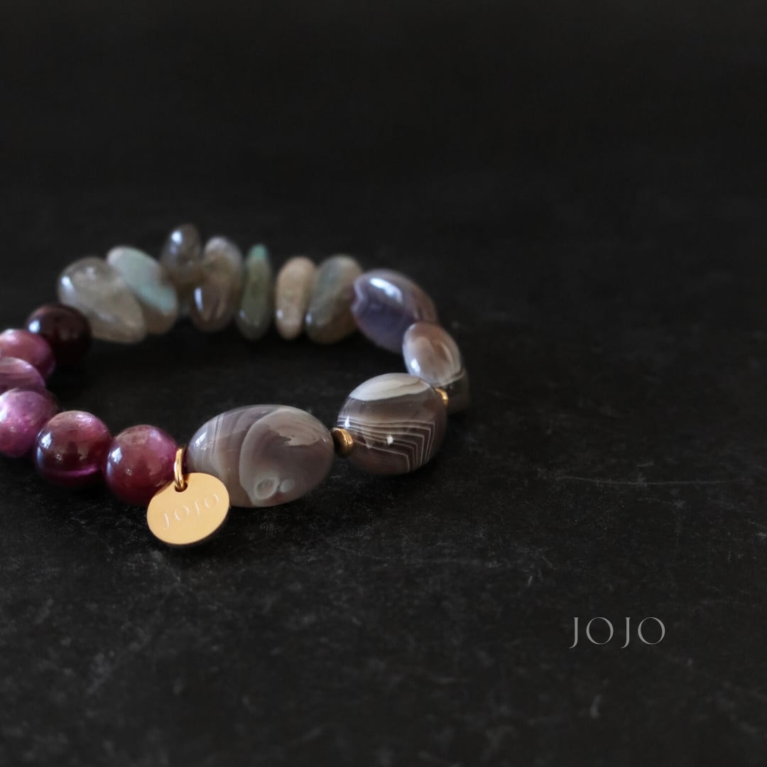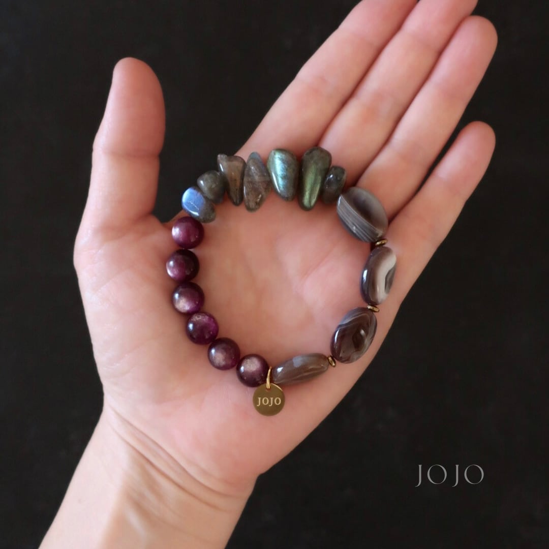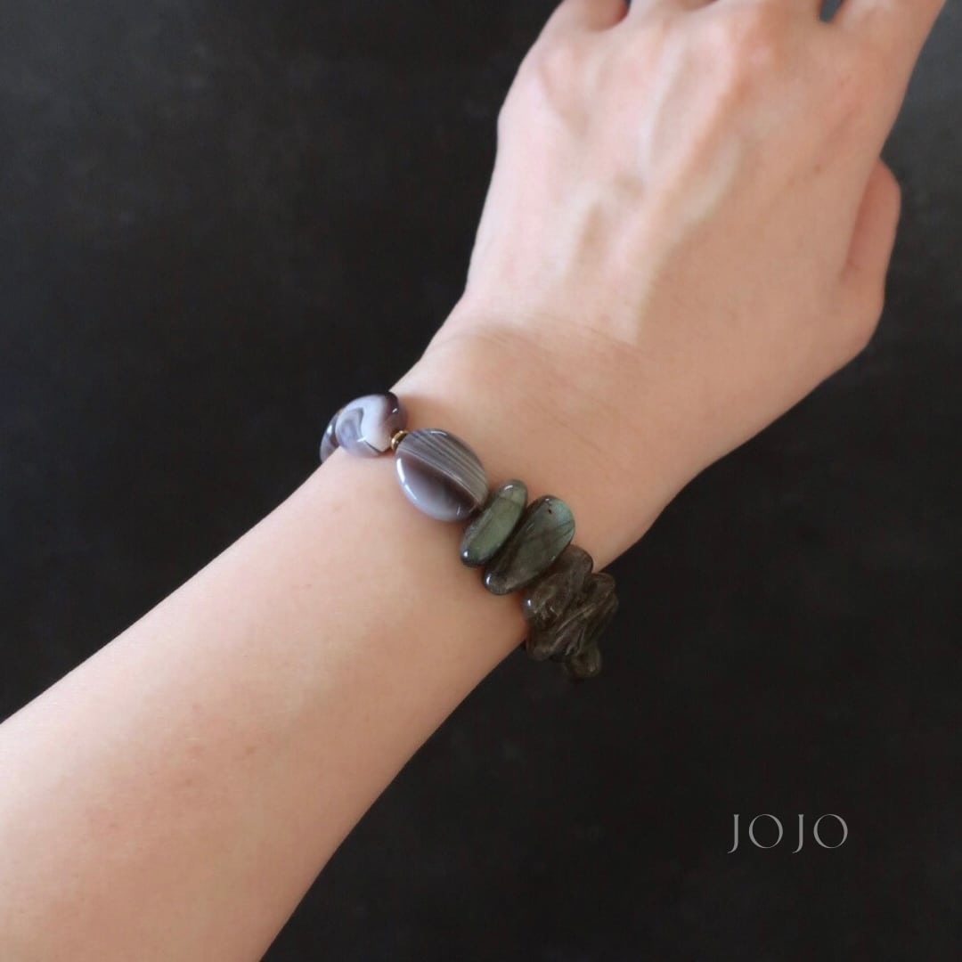 【再販】multicolor bracelet «パープルマイカ × ラブラドライト × ボツワナアゲート»