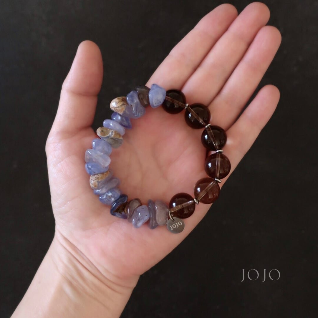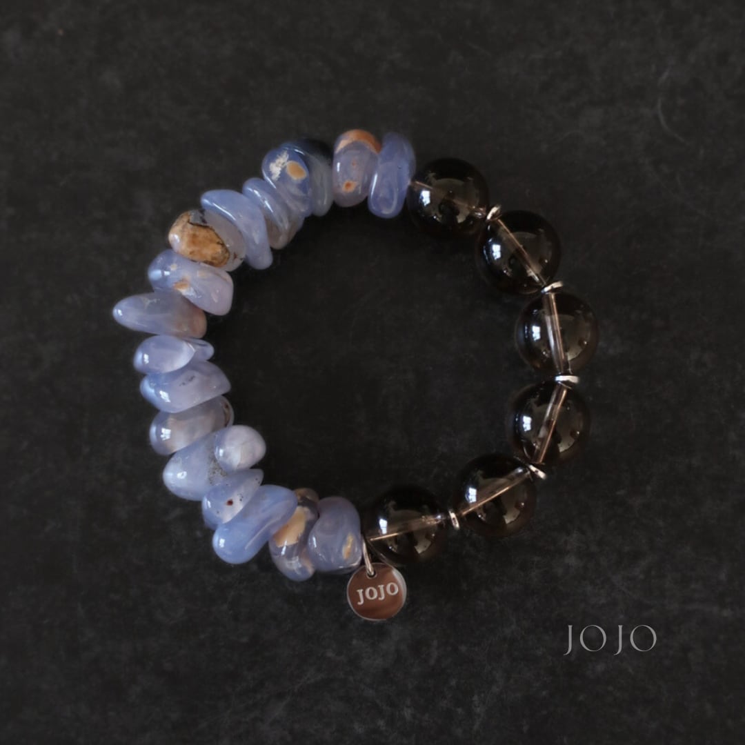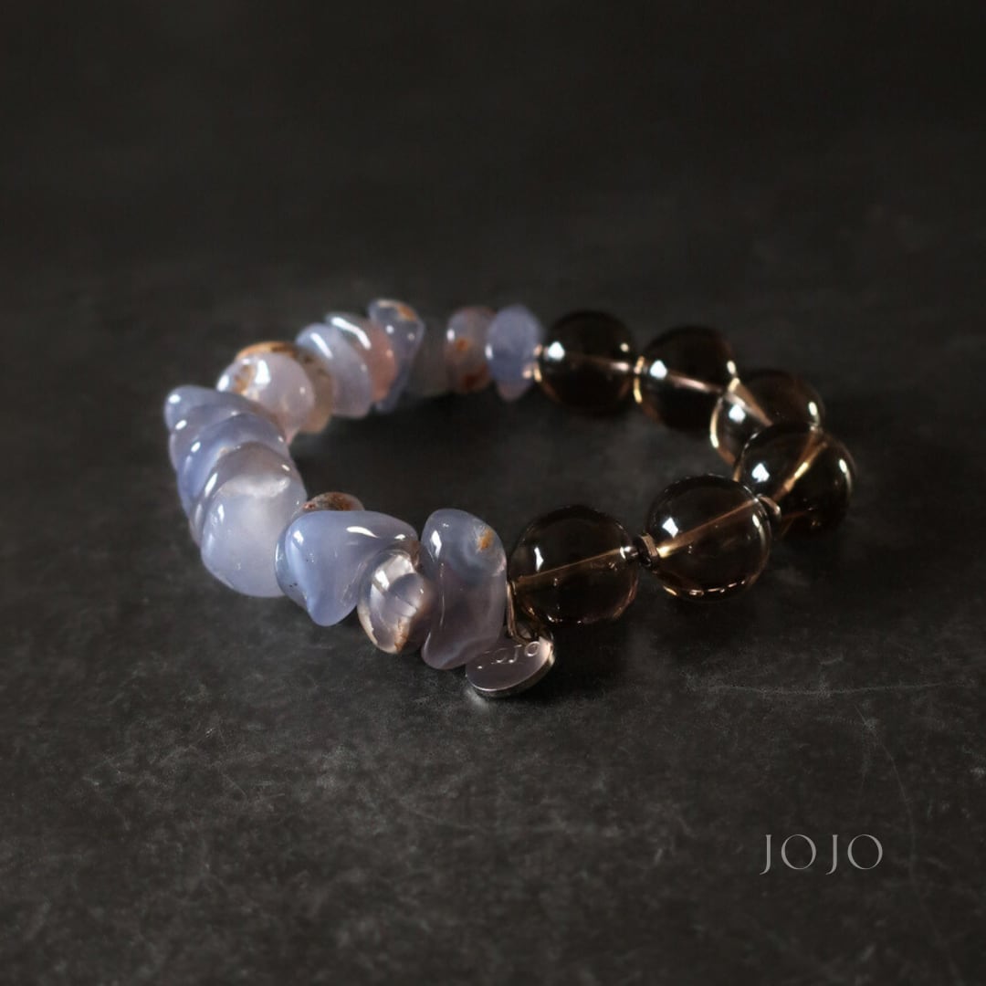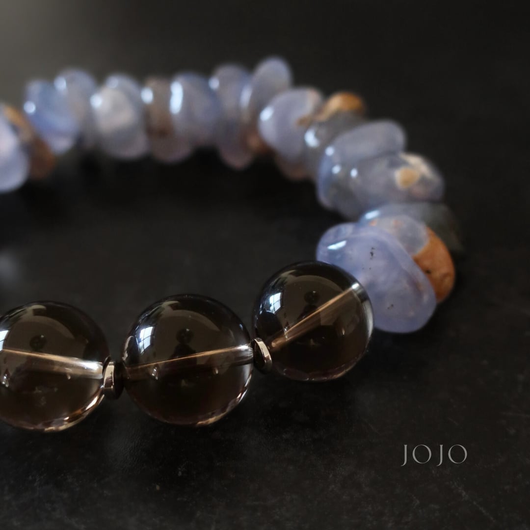 【再販】bicolor bracelet «ブルーカルセドニー × スモーキークォーツ»