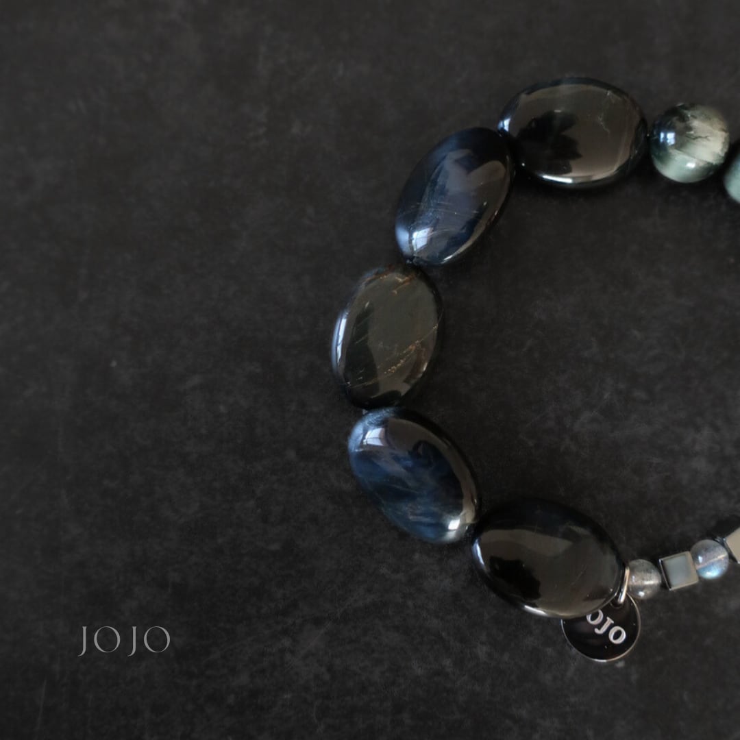 multicolor bracelet «ブルータイガーアイ × キャッツアイクォーツ × ラブラドライト × ヘマタイト»