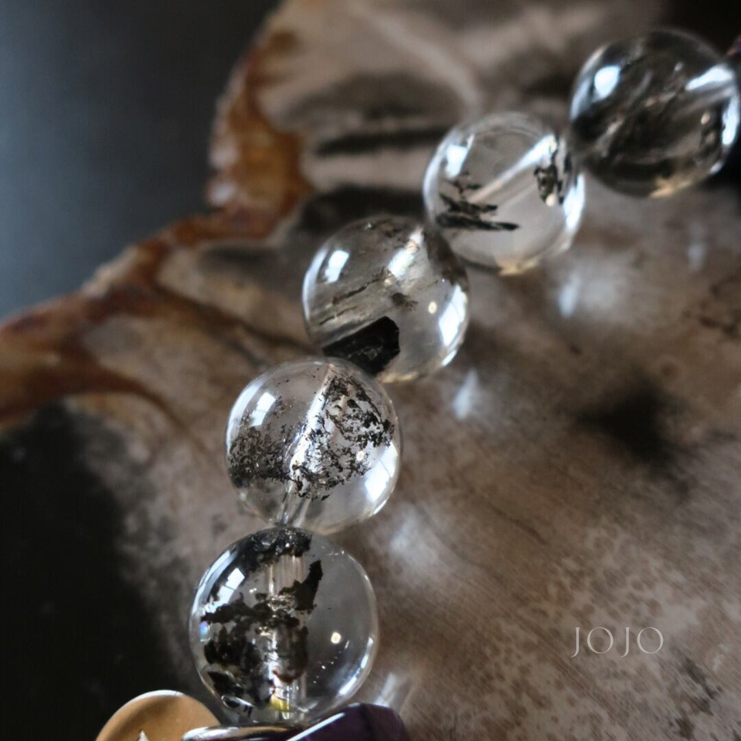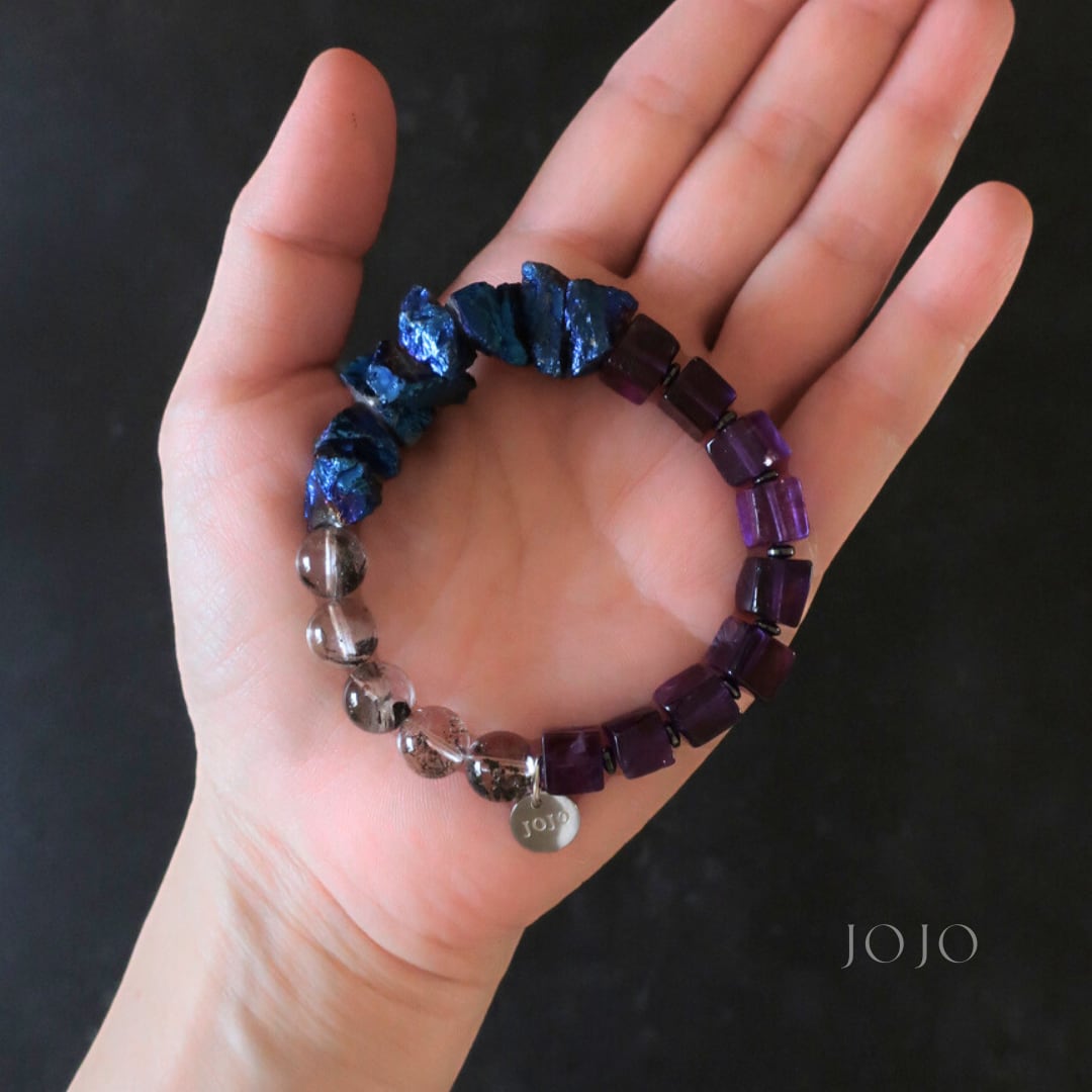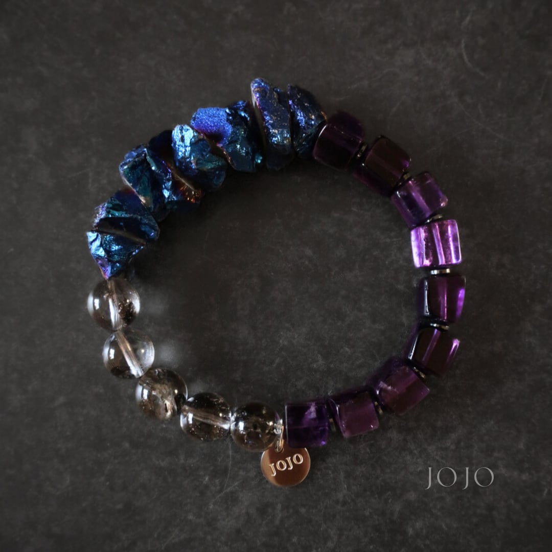 【renewal】multicolor bracelet «アメジスト × エレスチャルクォーツ × オーラクリスタル»