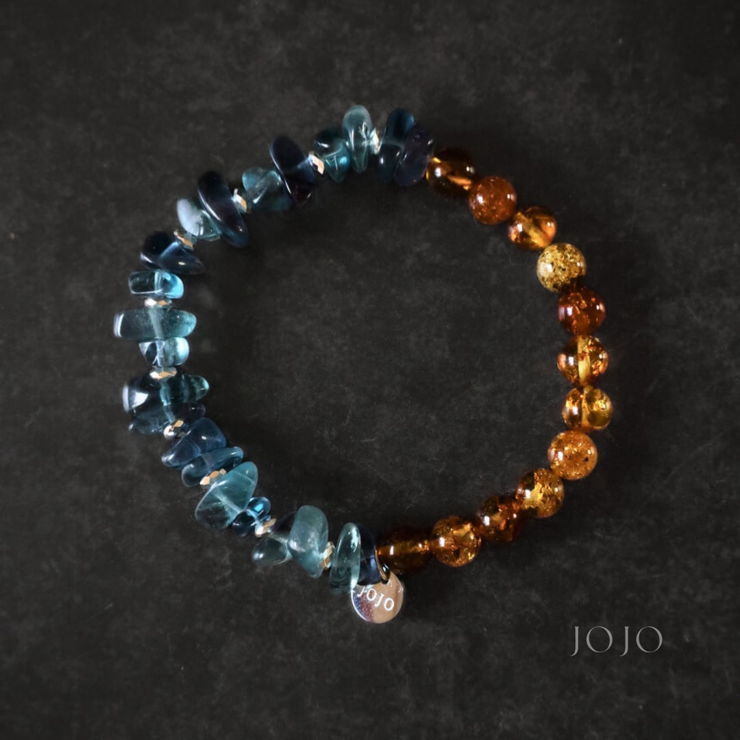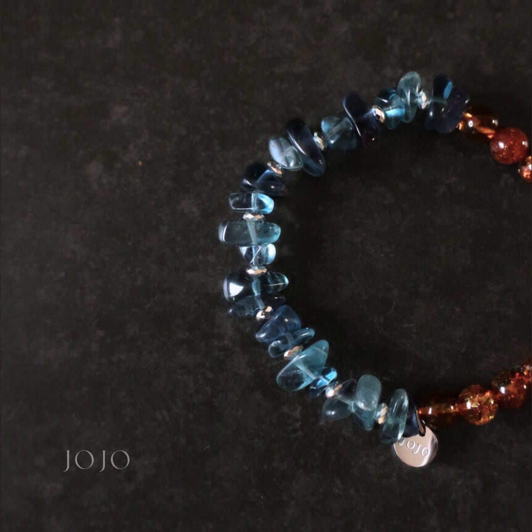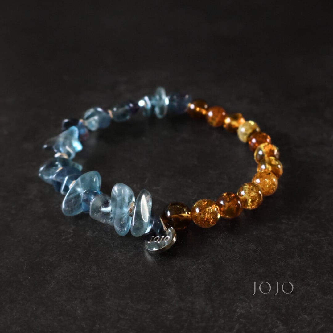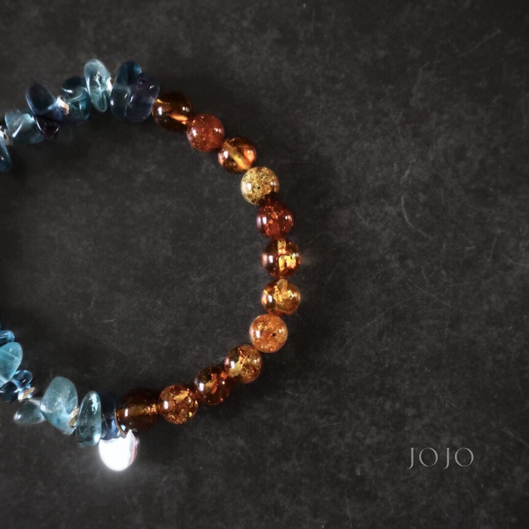 冷たさを帯びたブルーと、あたたかく滲む琥珀色。