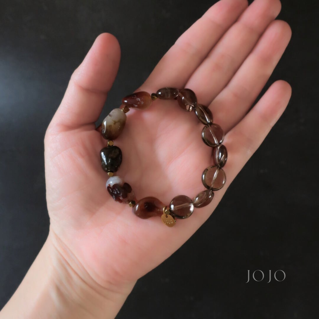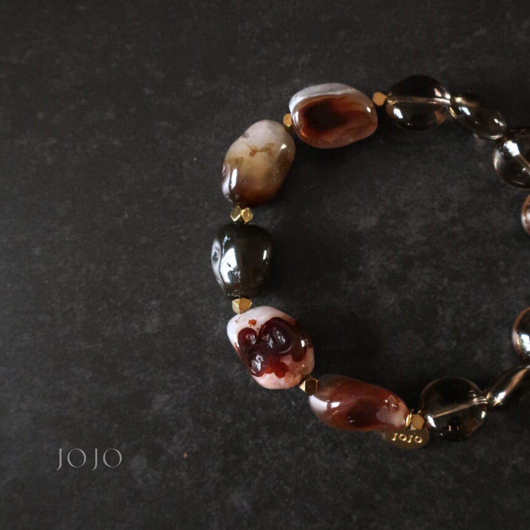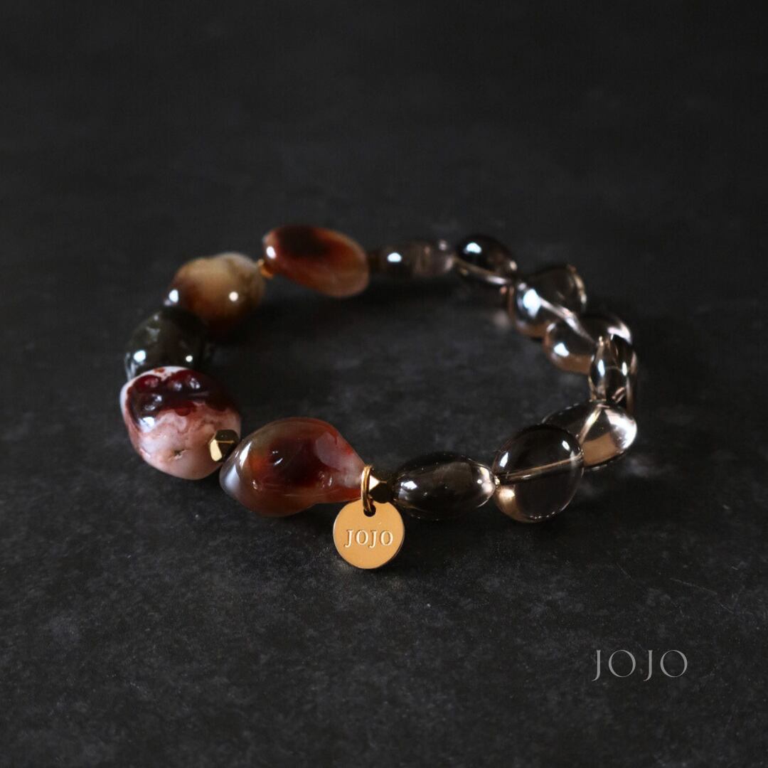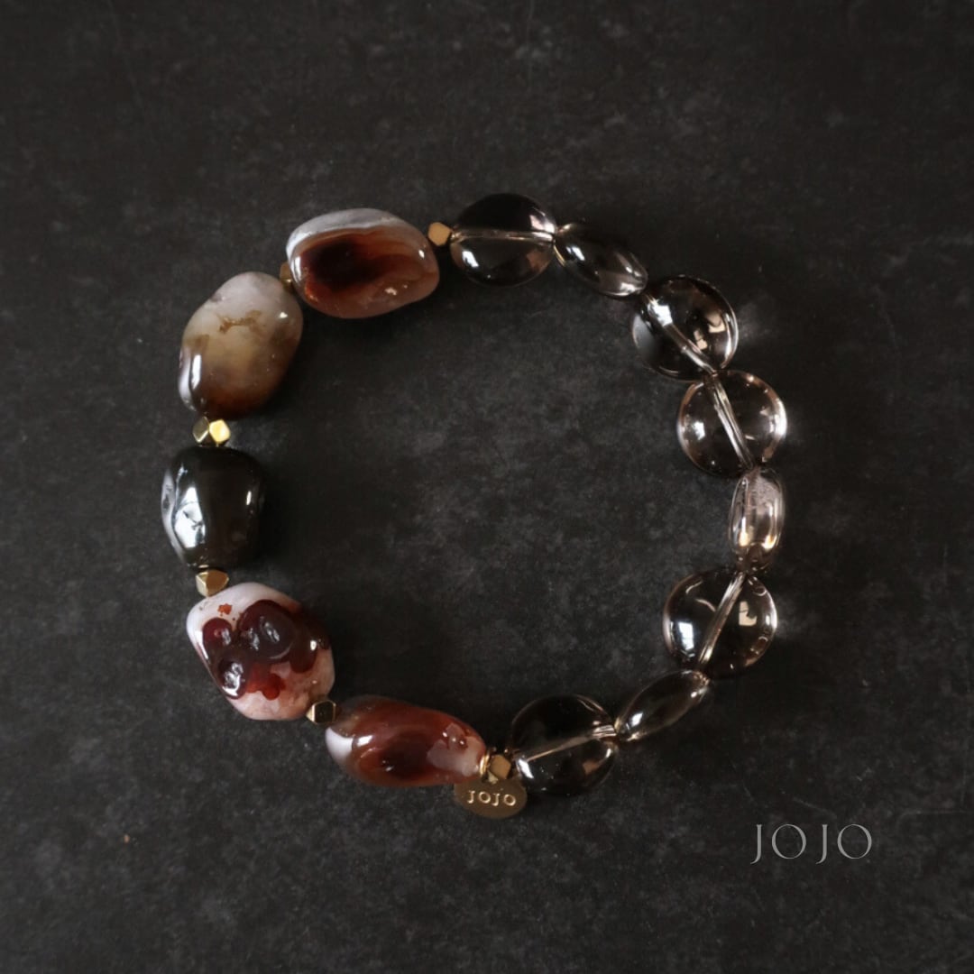 bicolor bracelet «ファイヤーアゲート × スモーキークォーツ»