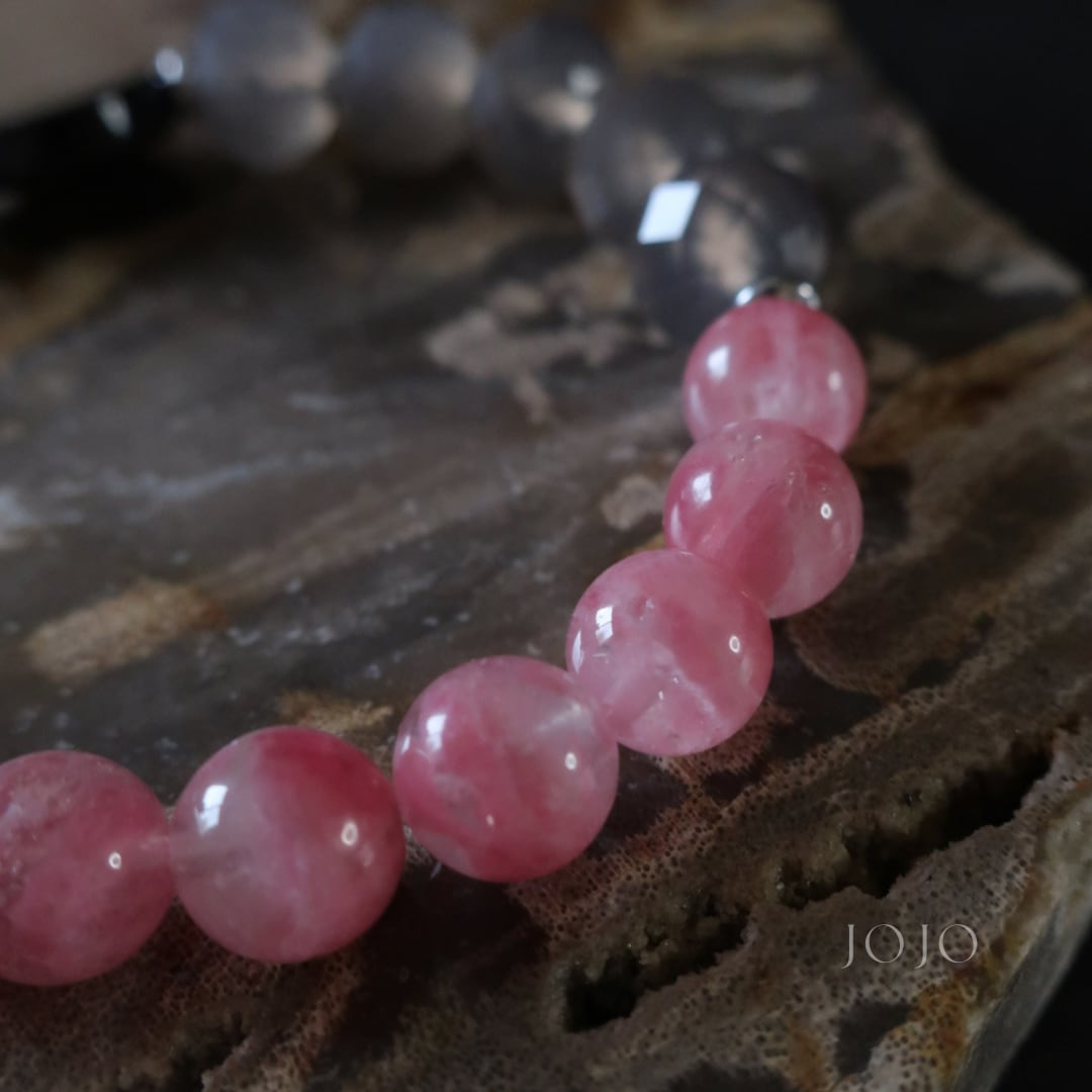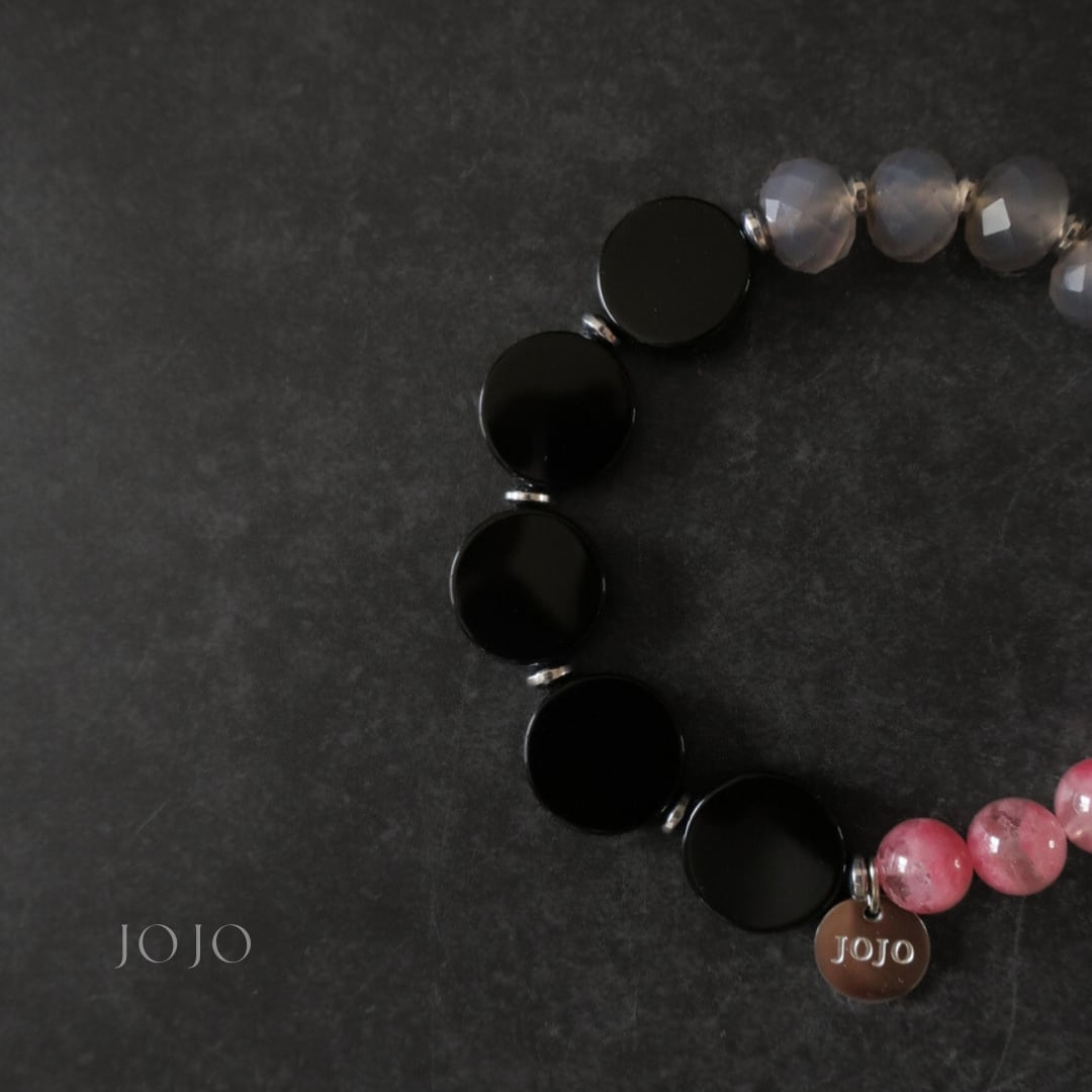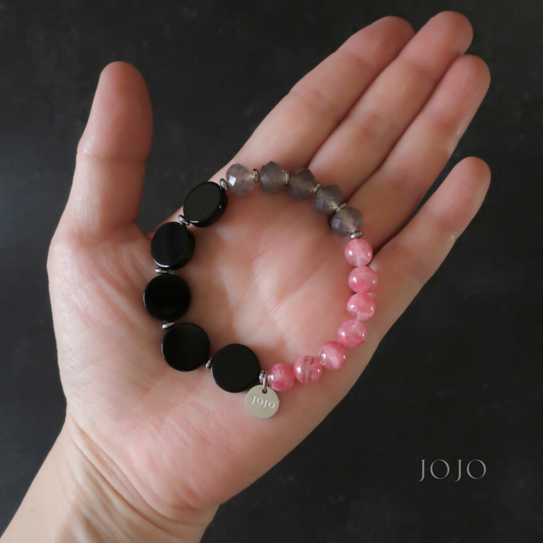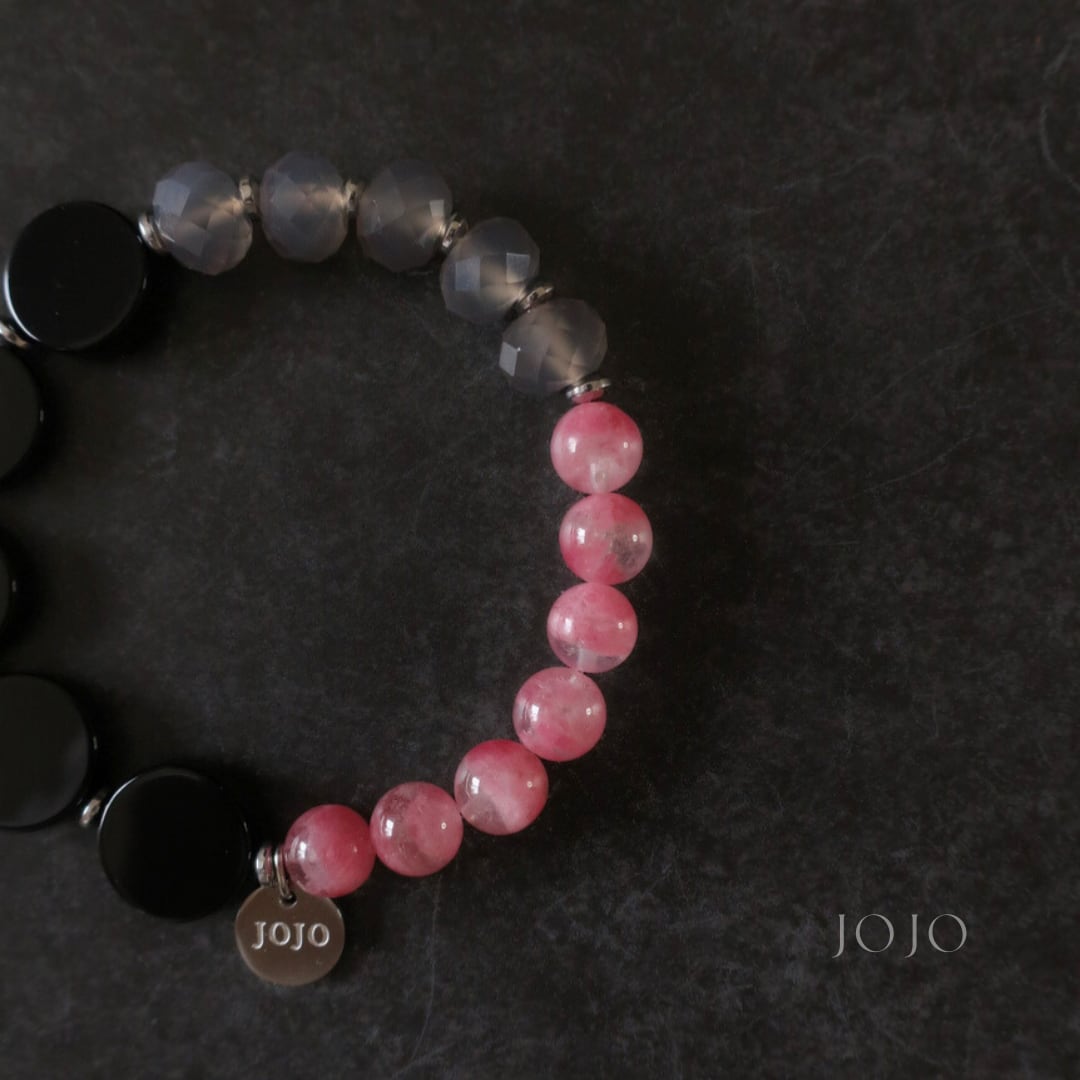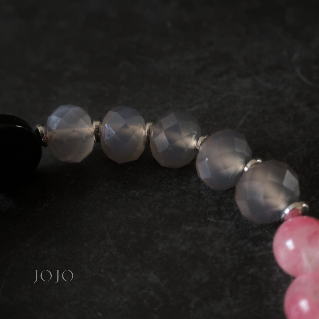 multicolor bracelet «オニキス × ロードナイトシリカ × グレーオニキス»