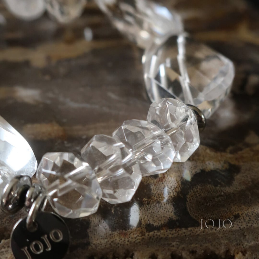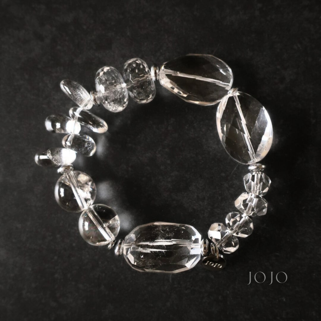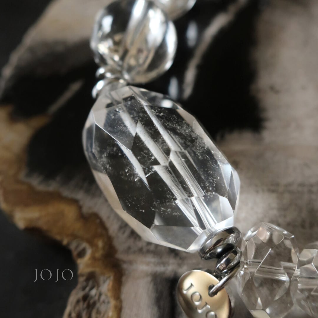 シンプルなコーディネートに合わせることで、クリスタルの質感やカットの違いがより際立ち、光のニュアンスを主役にしたスタイリングが楽しめます。