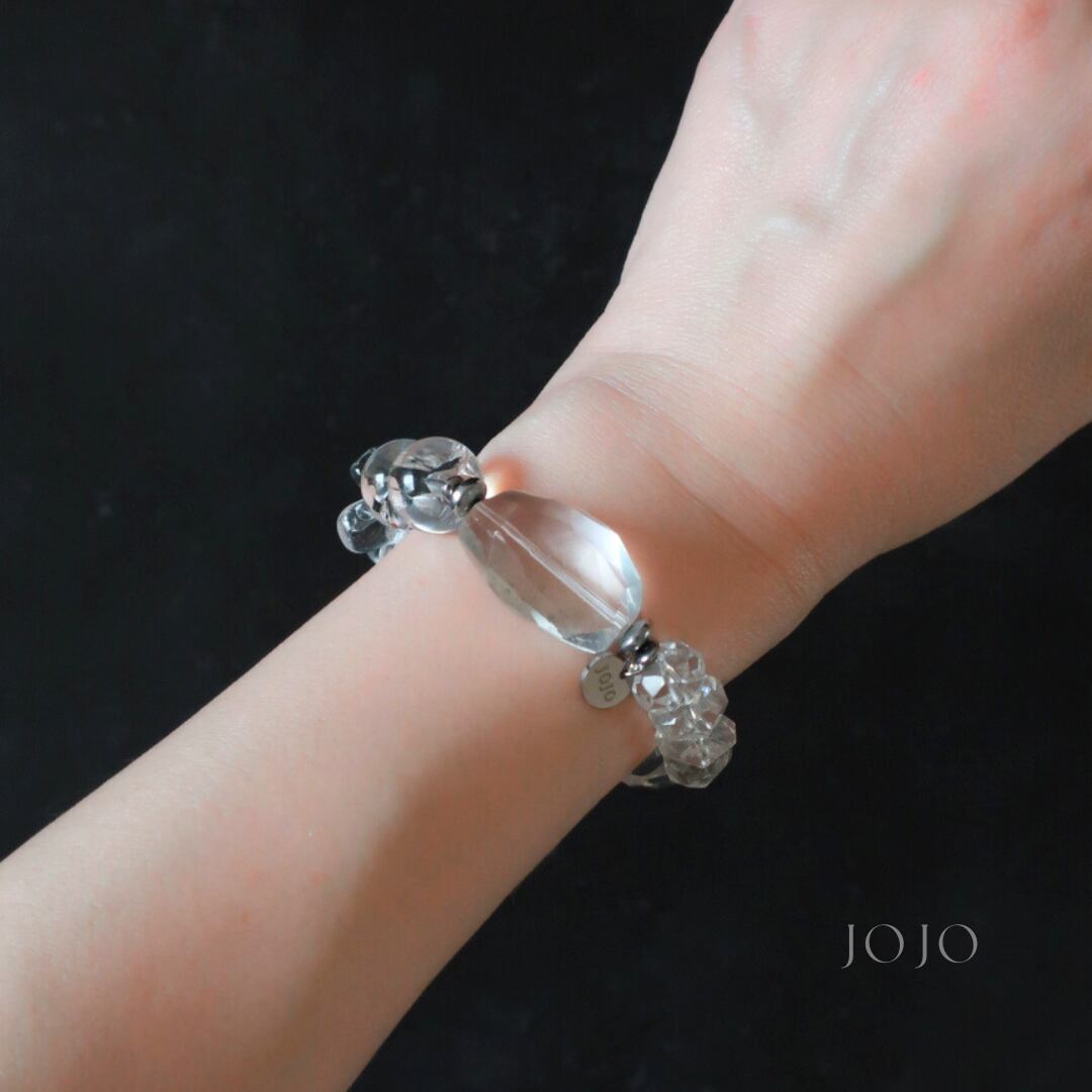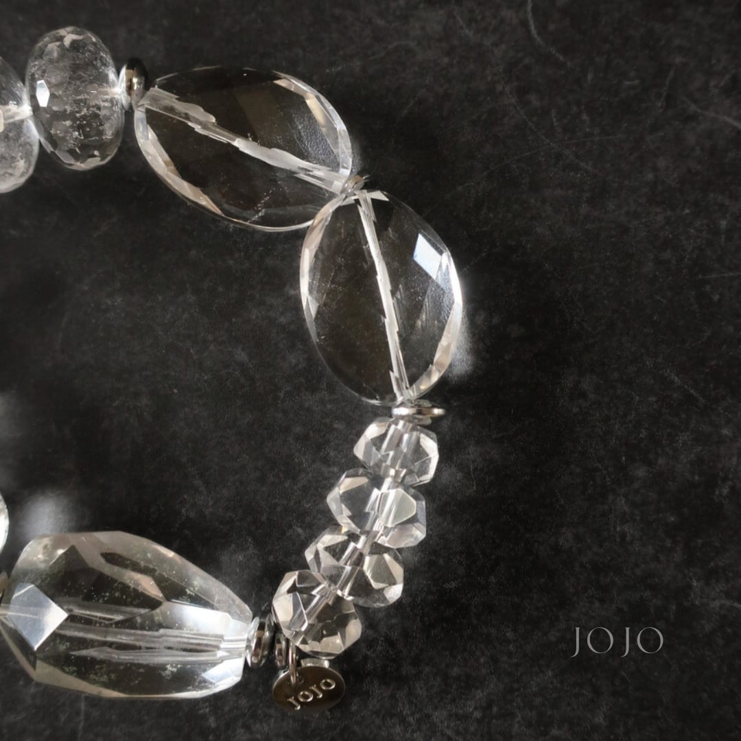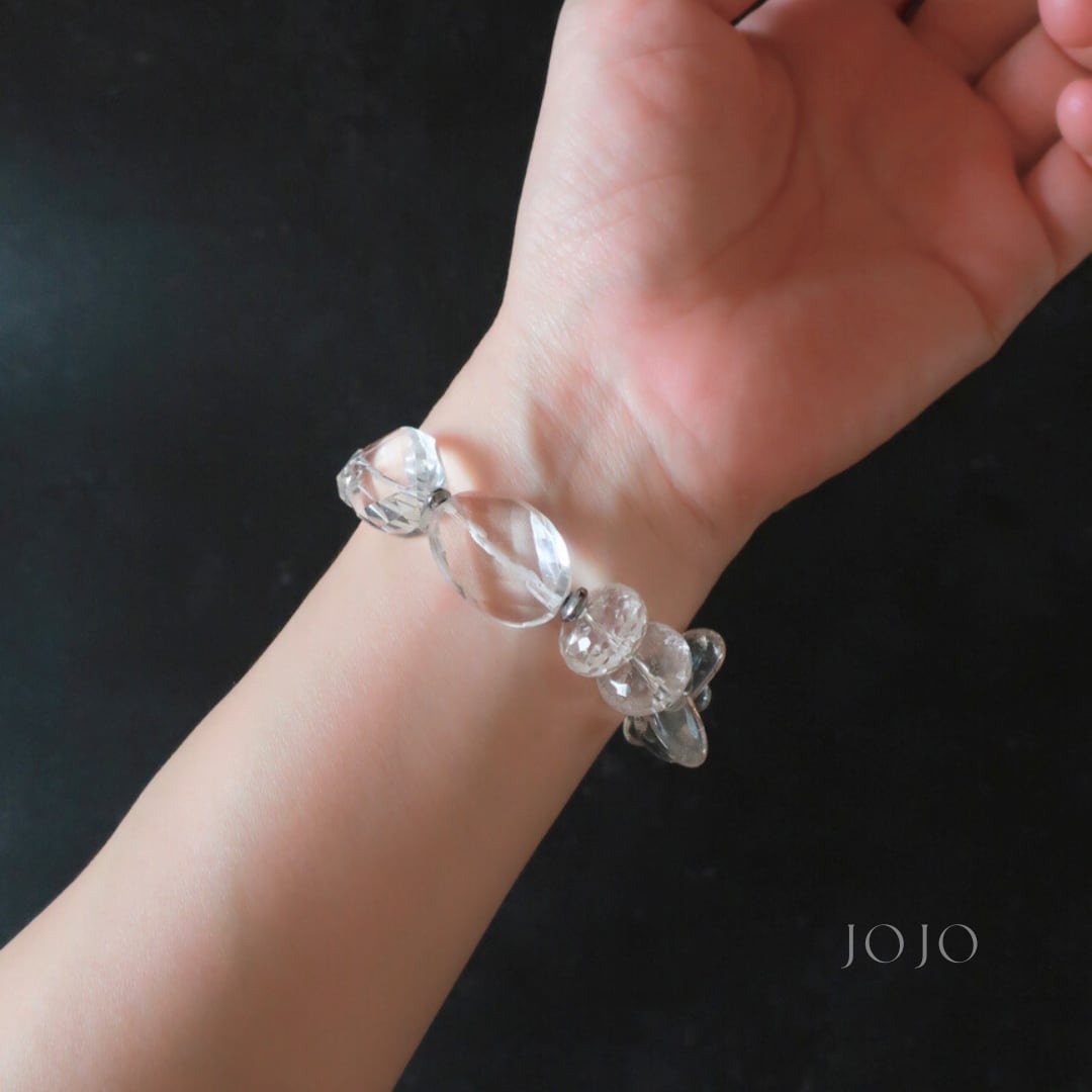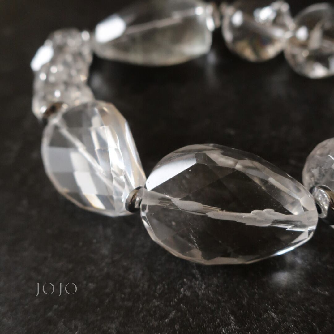 シンプルなコーディネートに合わせることで、クリスタルの質感やカットの違いがより際立ち、光のニュアンスを主役にしたスタイリングが楽しめます。