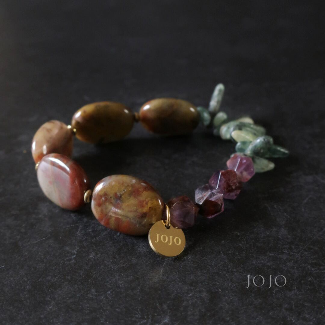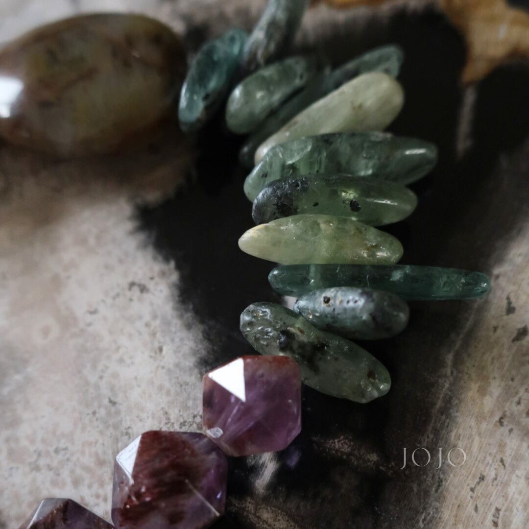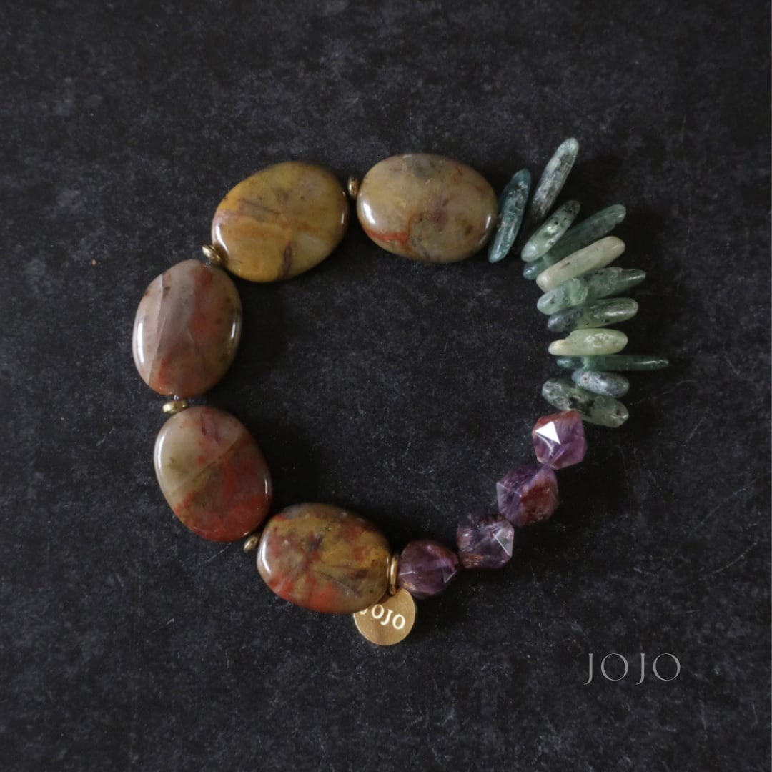multicolor bracelet «ピルバラジャスパー × カイヤナイト × カコクセナイトインアメジスト»