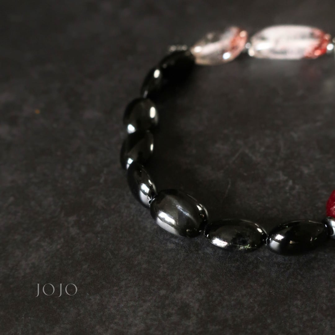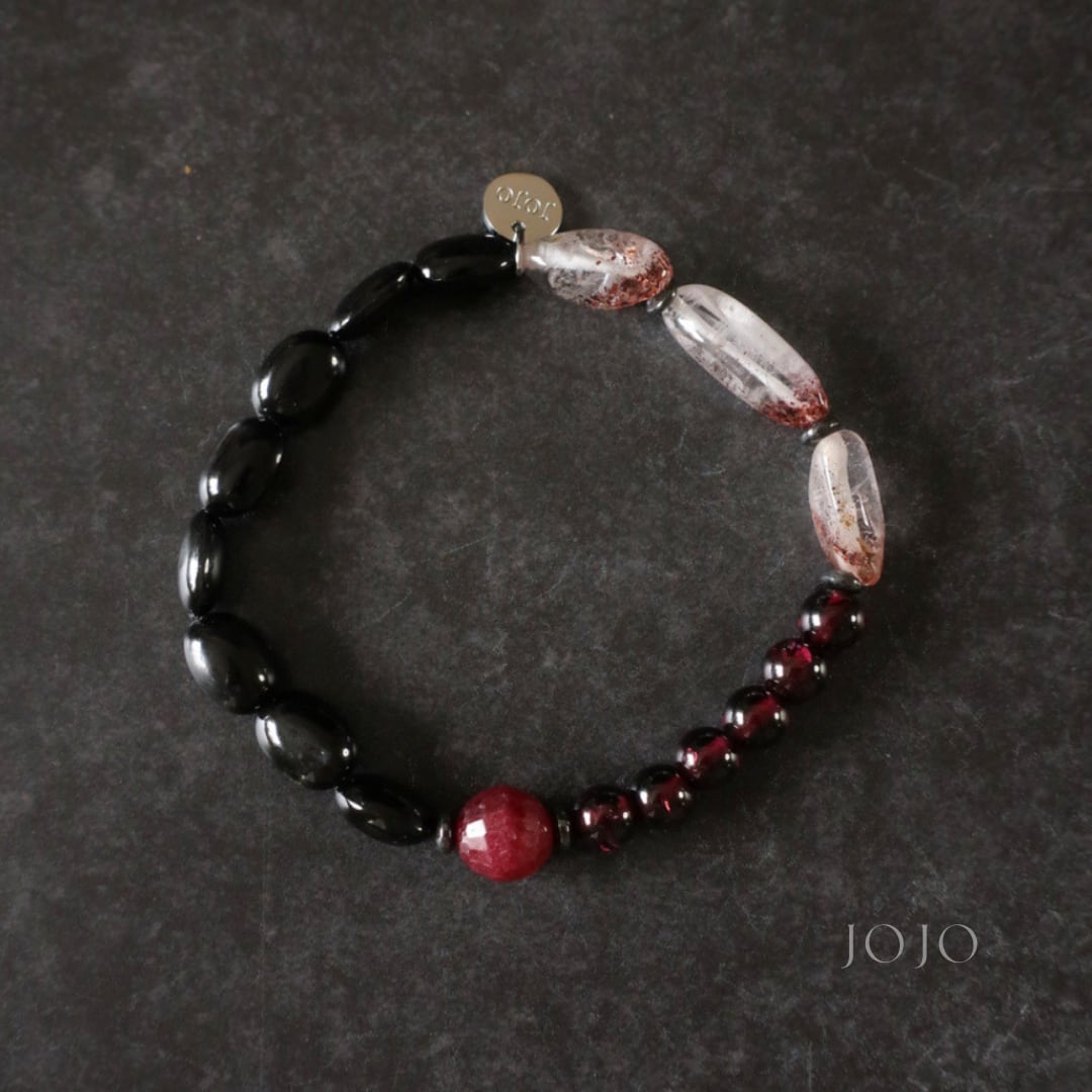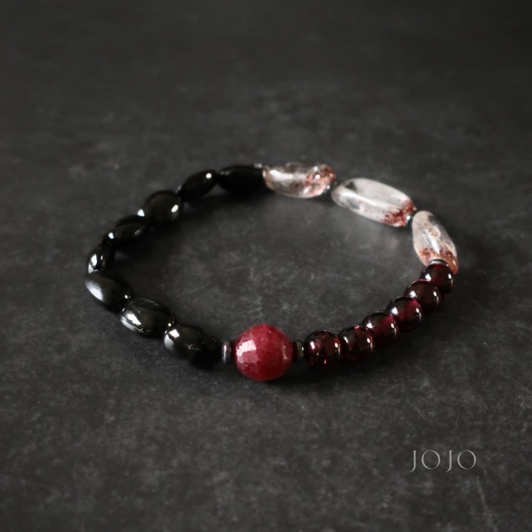 bicolor bracelet «スターダイオプサイト × レピドクロサイトインクォーツ × ガーネット × ブラッディルビー»