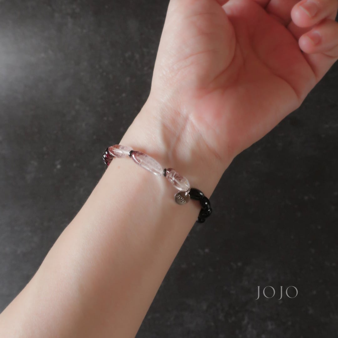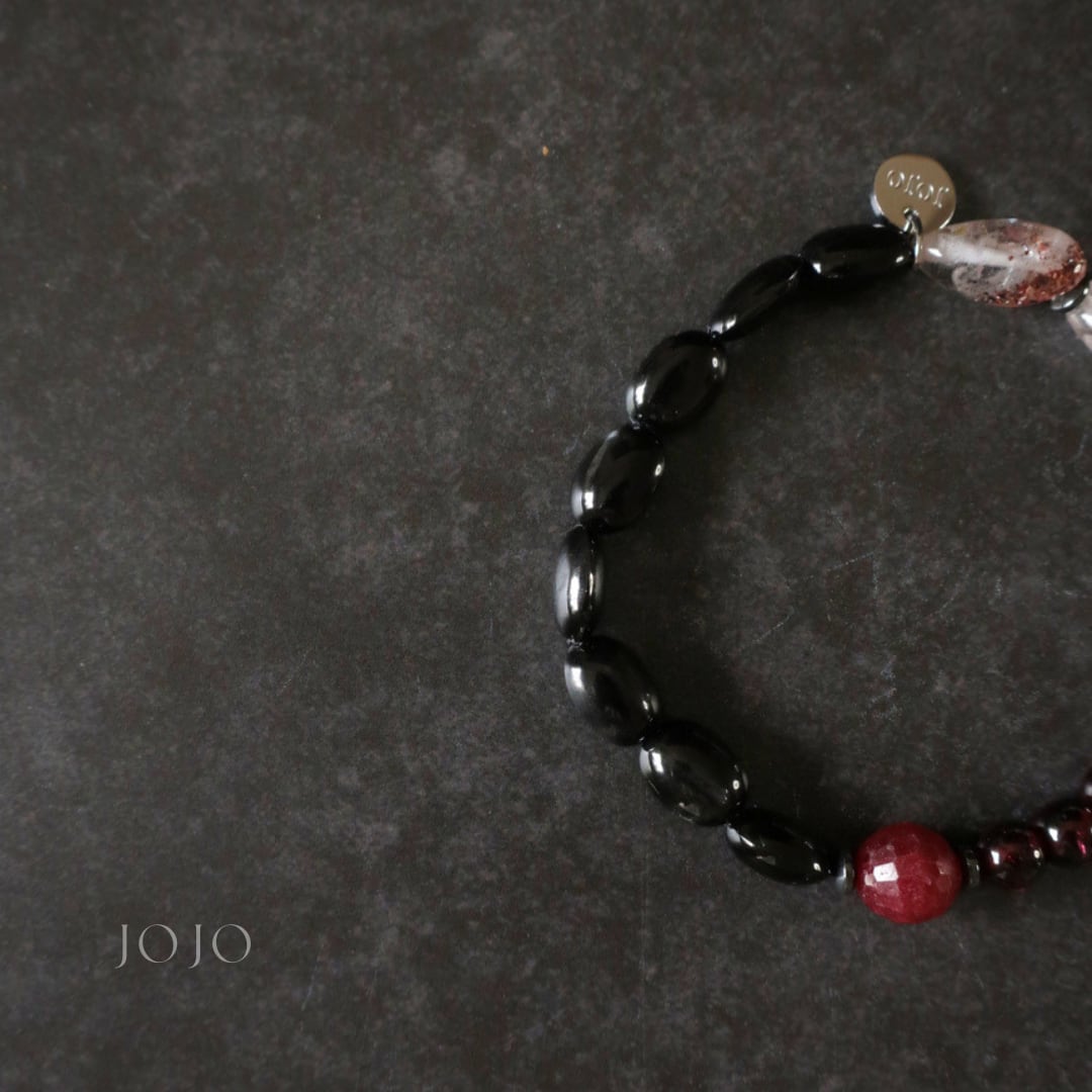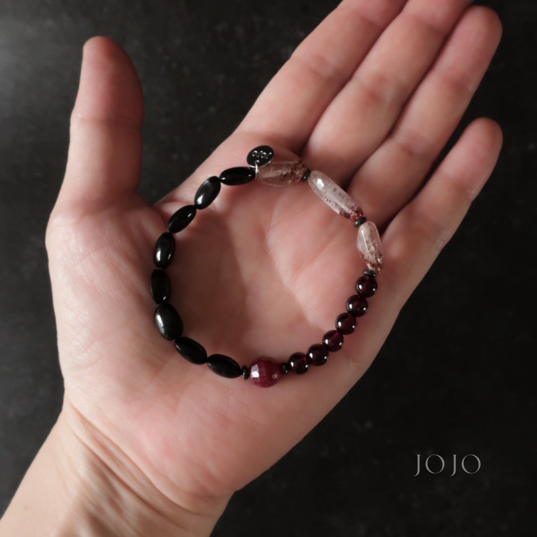 bicolor bracelet «スターダイオプサイト × レピドクロサイトインクォーツ × ガーネット × ブラッディルビー»