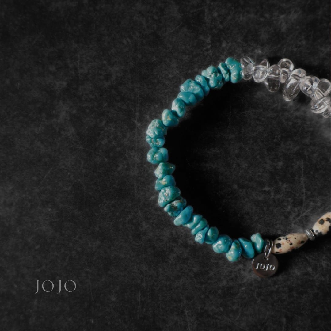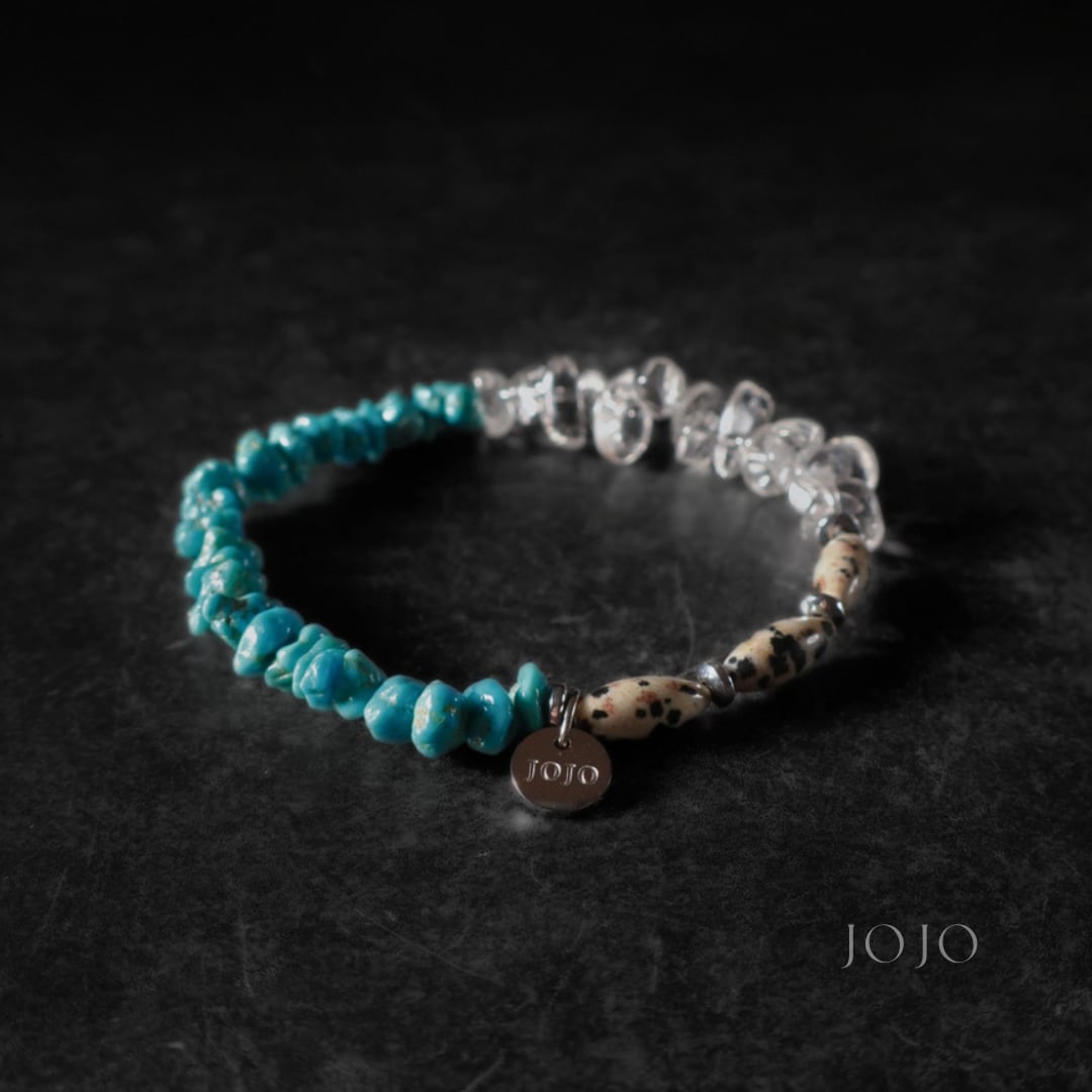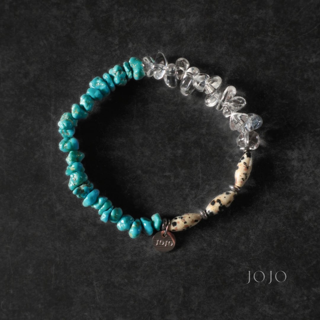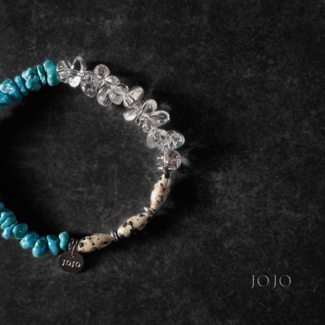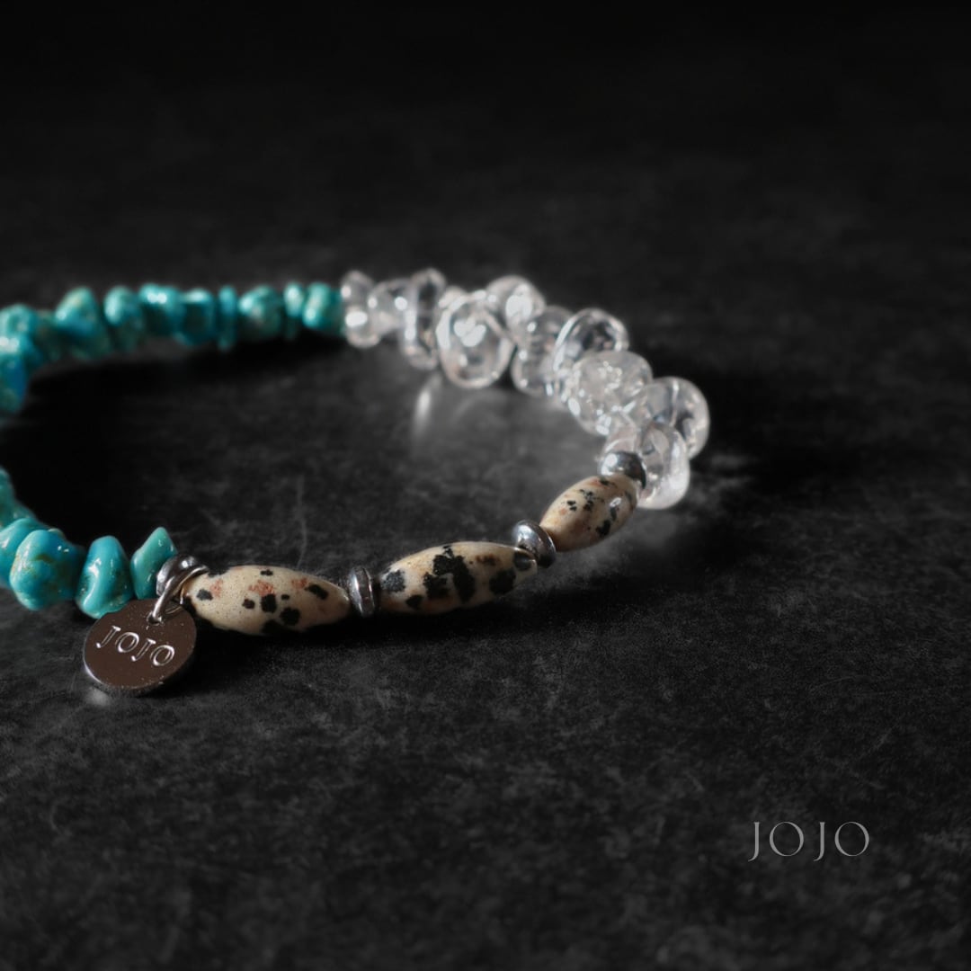 multicolor bracelet «ターコイズ × クリスタル × ダルメシアンジャスパー»