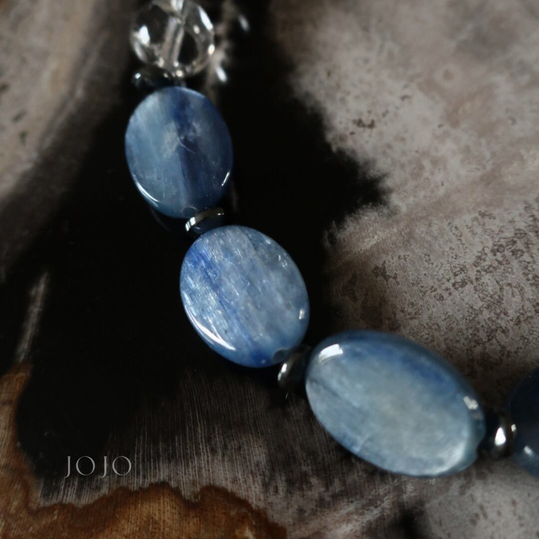 カイヤナイトの間にはロンデルを挟み、全体のバランスを整えています。