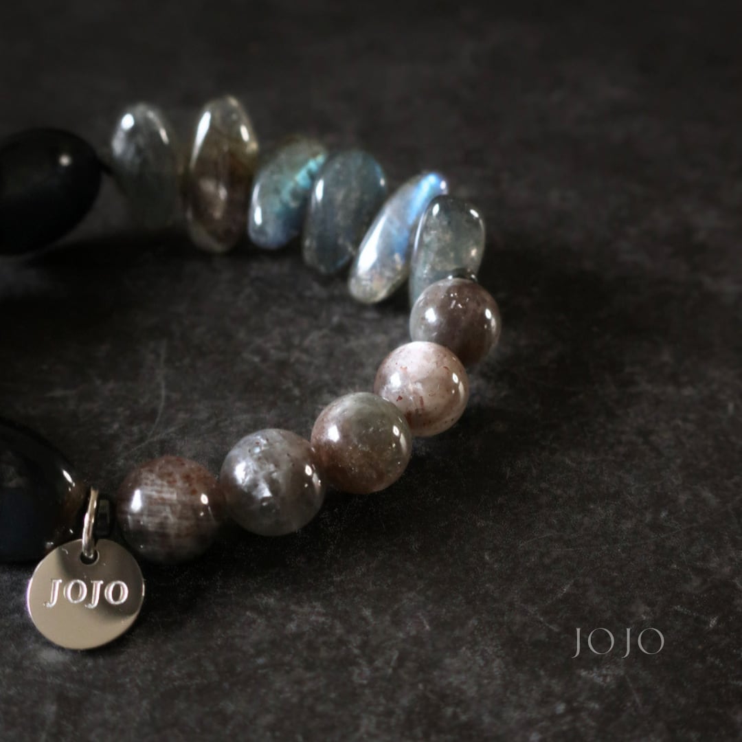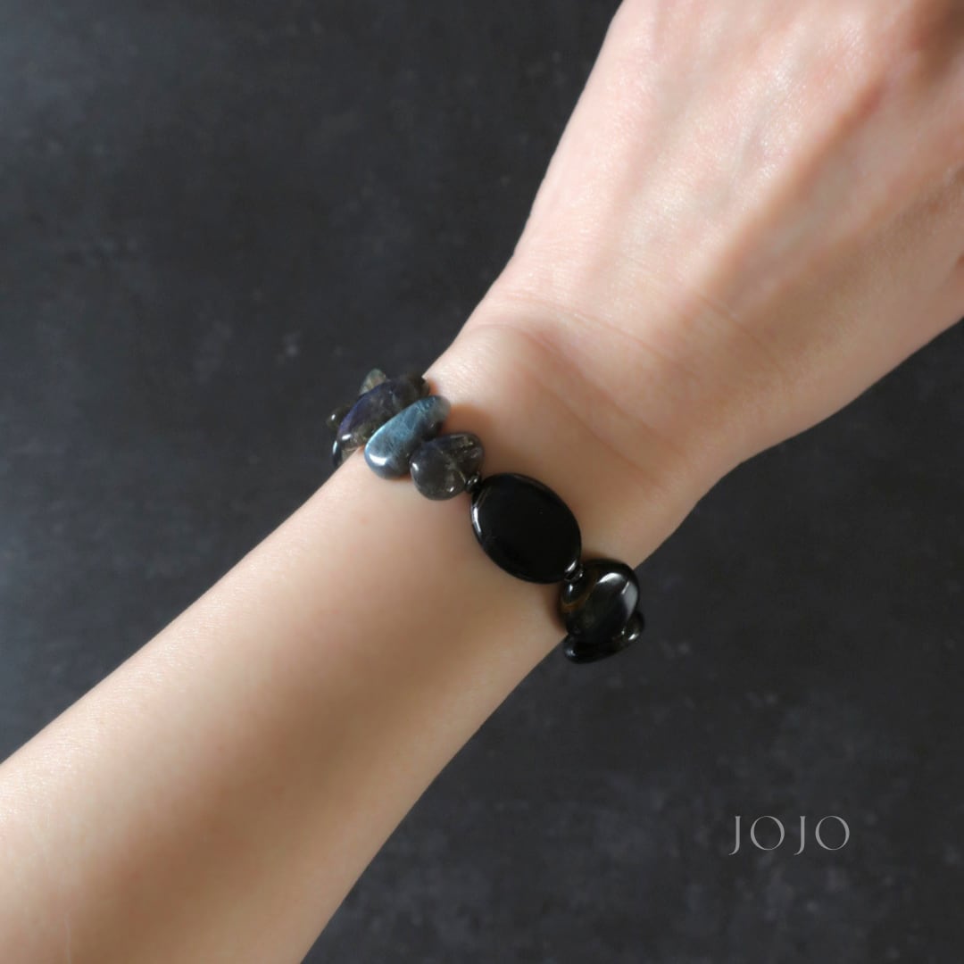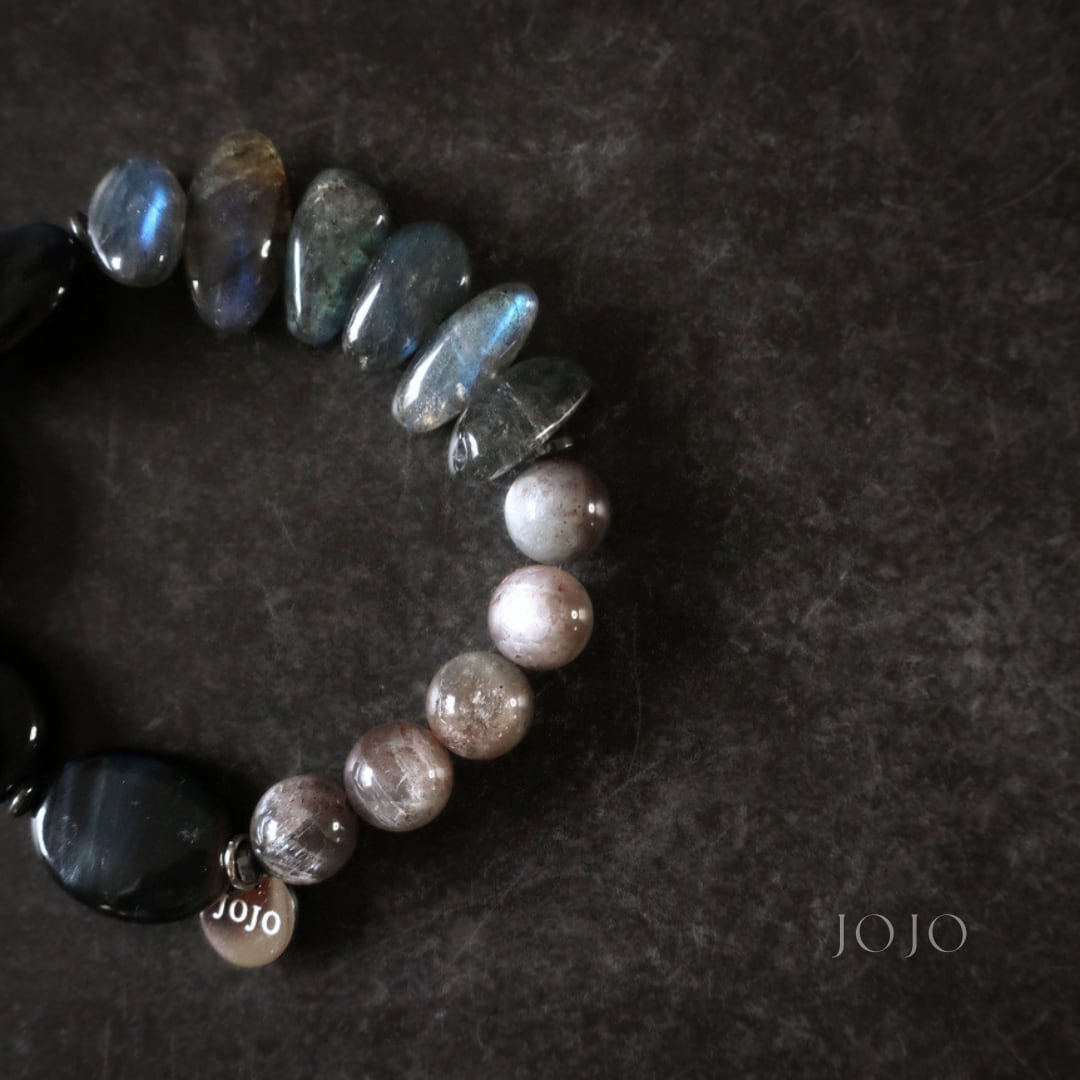 multicolor bracelet «ブルータイガーアイ × ラブラドライト × ブラックシルバーサンストーン»