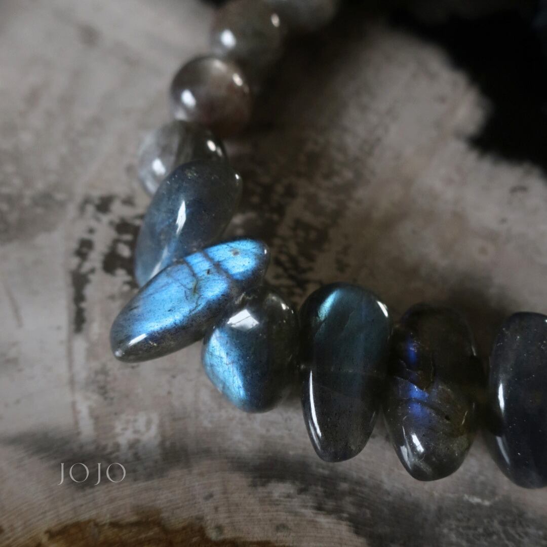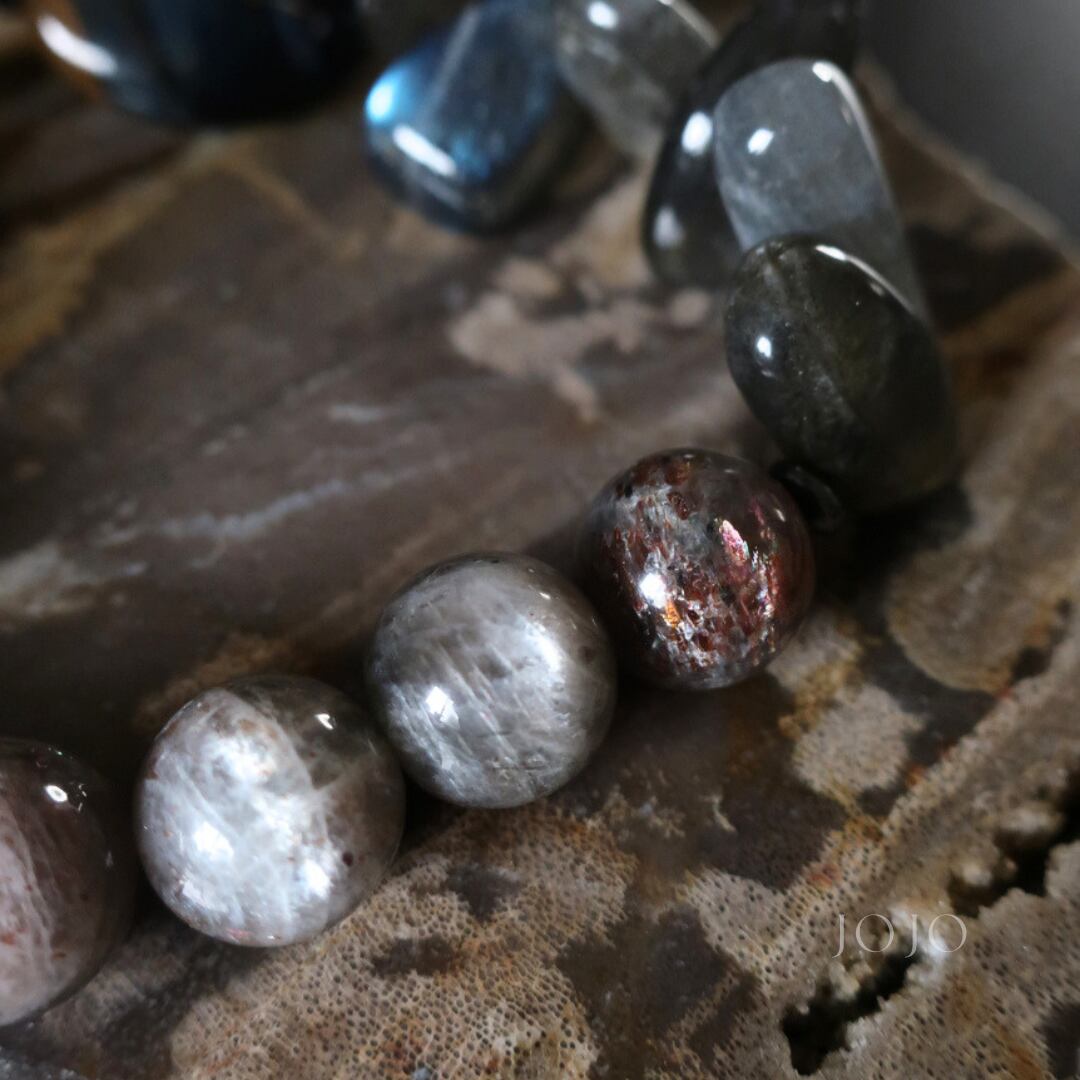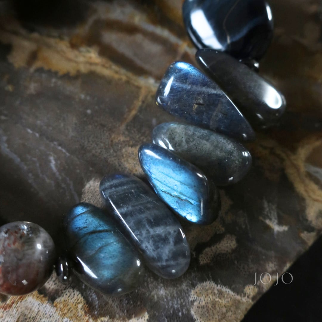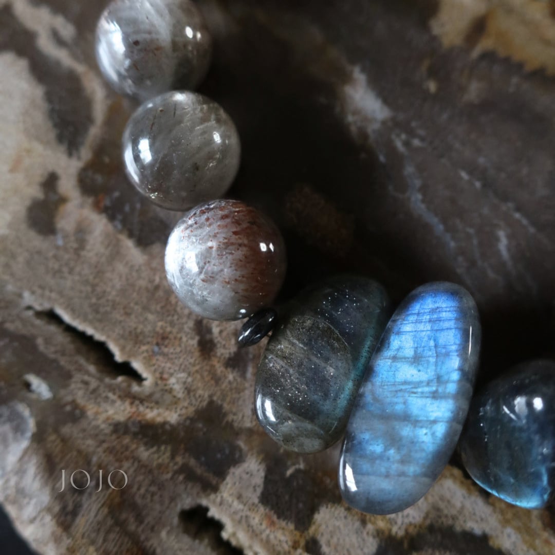 multicolor bracelet «ブルータイガーアイ × ラブラドライト × ブラックシルバーサンストーン»