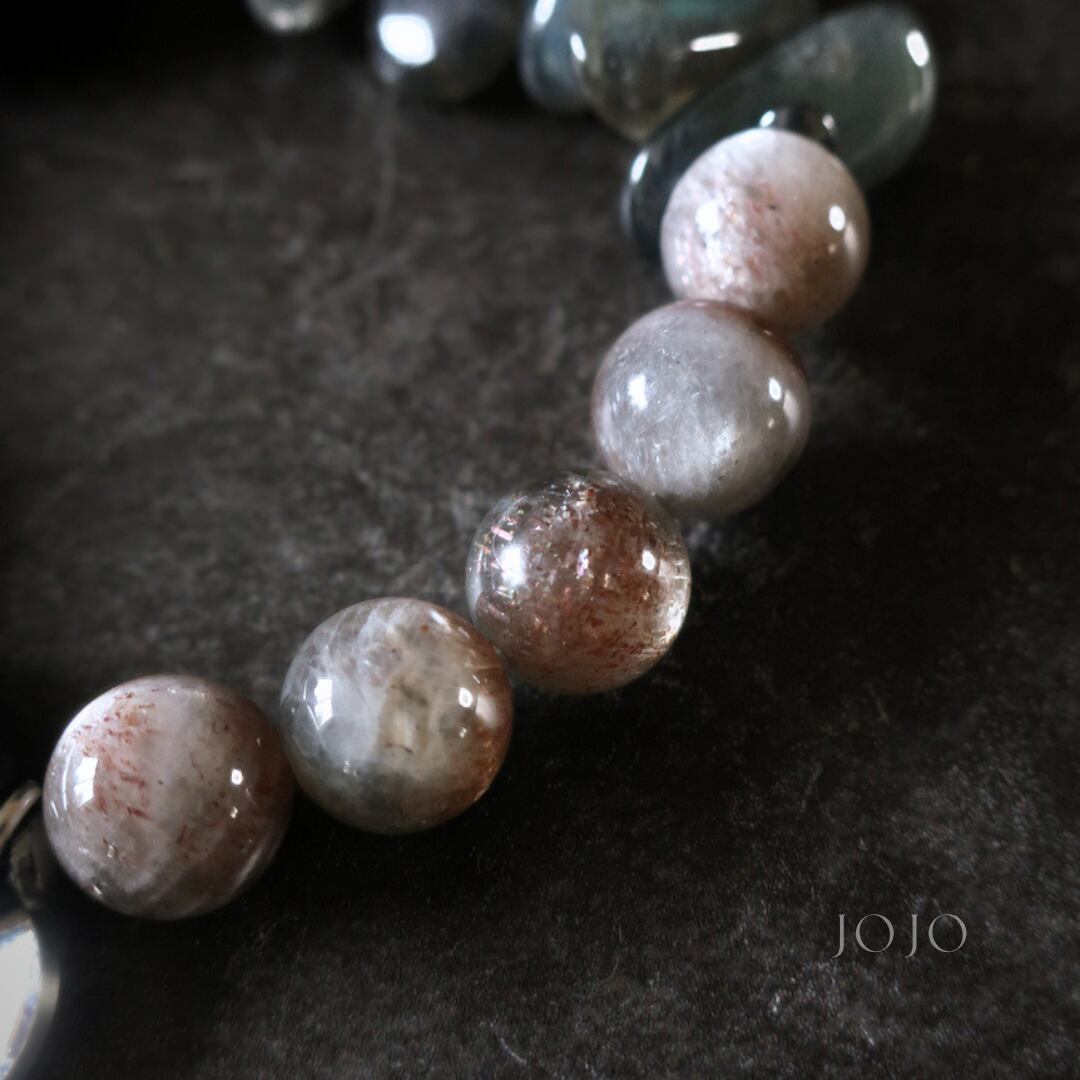 グレーがかった地色に、ブルーのシラーが浮かび上がり、粒ごとに異なる光の入り方を楽しめます。