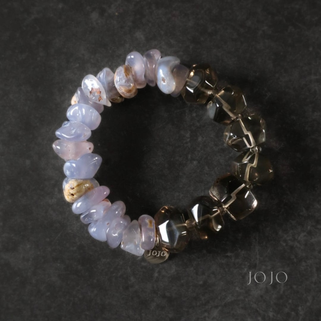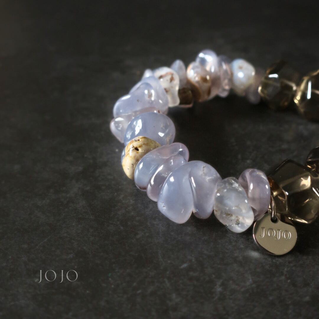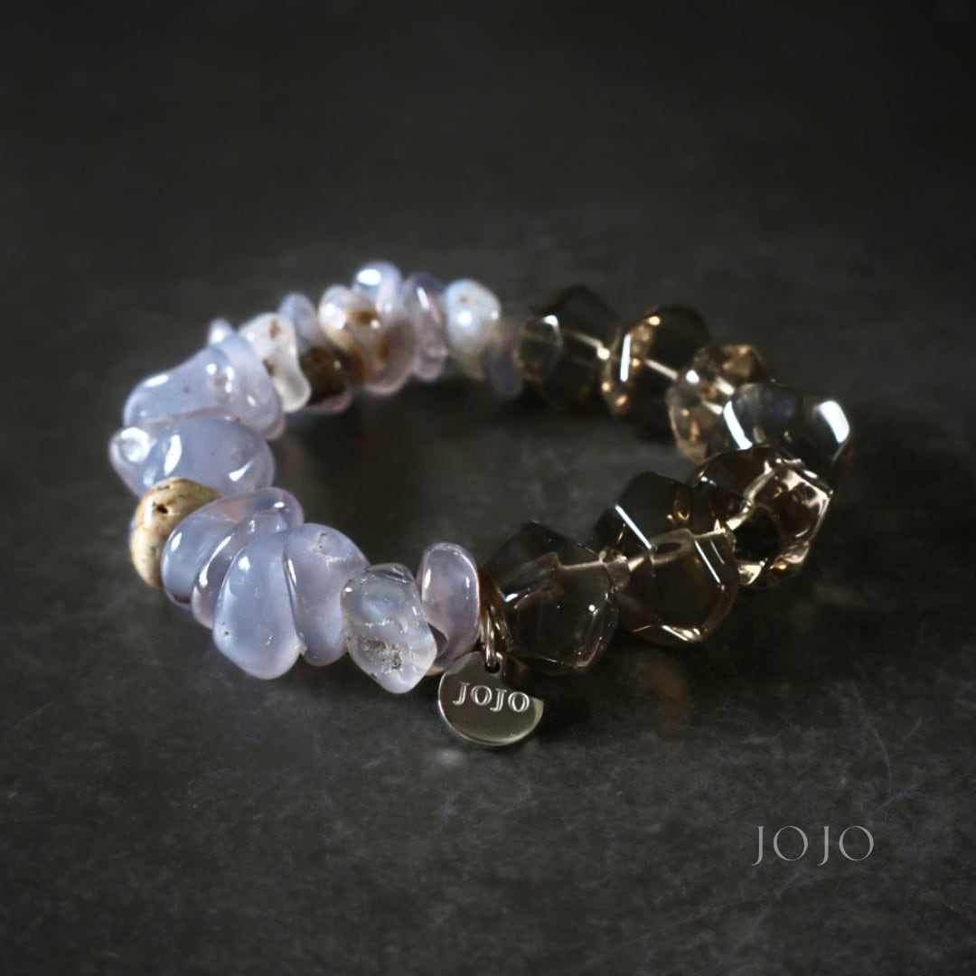bicolor bracelet «ブルーカルセドニー × スモーキークォーツ»
